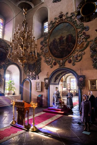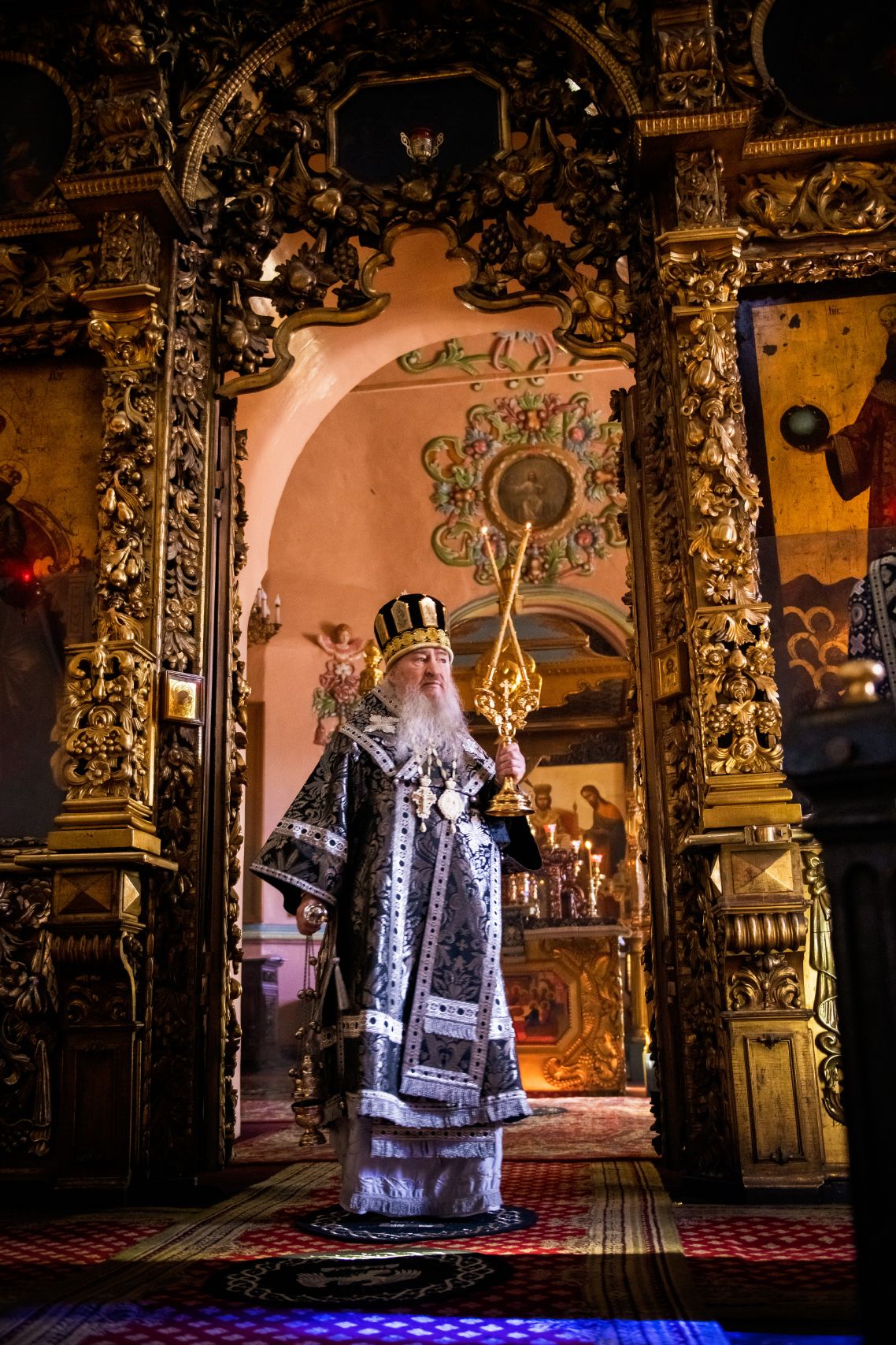 Его Высокопреосвященству сослужили настоятель протоиерей Сергий Титов и клирики собора протоиерей Олег Расыпнинский и иерей Антоний Ермошин. Песнопения исполнялись смешанным приходским хором под управлением Ларисы Берниковой.