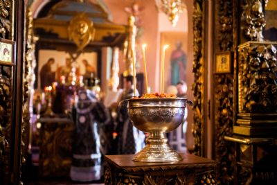 По окончании Литургии владыка Феофан совершил молебное пение великомученику Феодору Тирону и чин благословения колива.