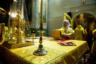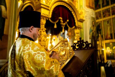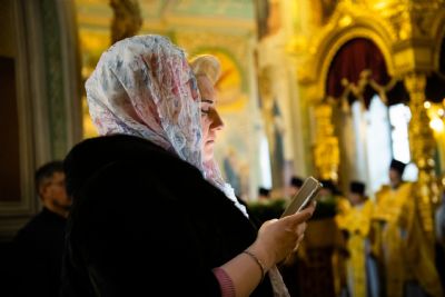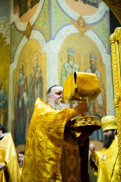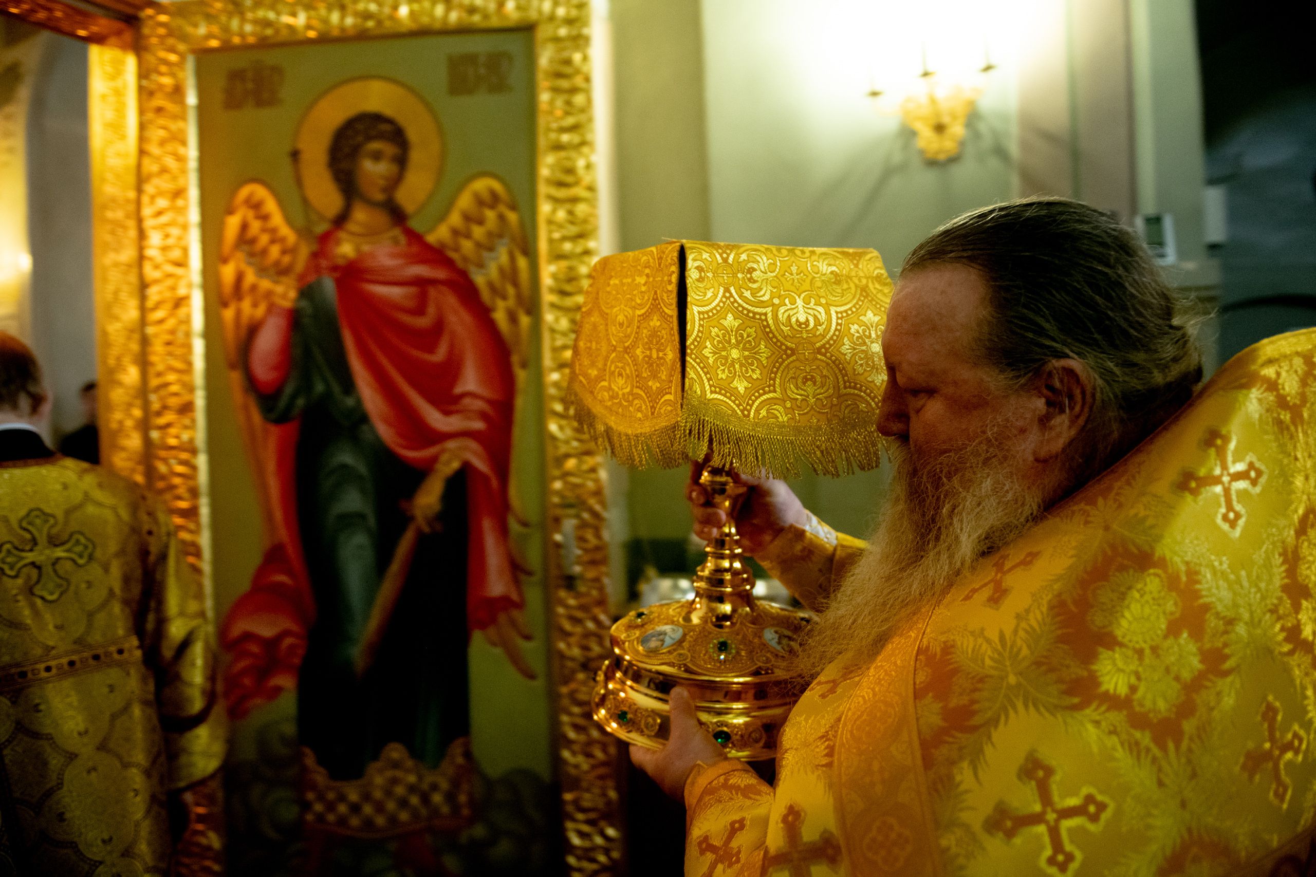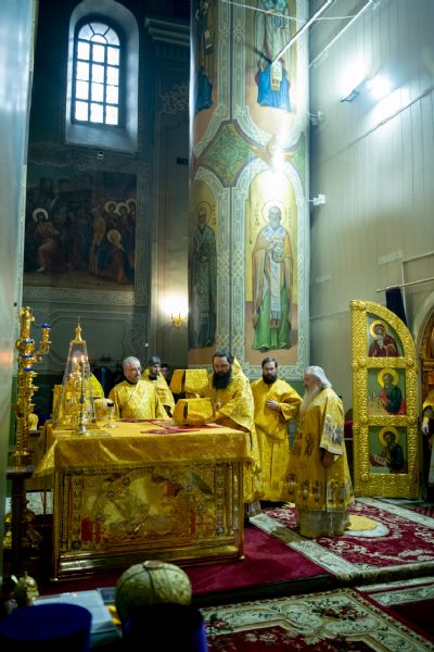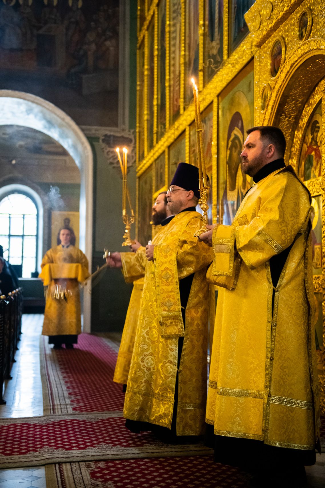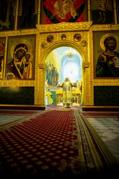Песнопения исполнялись архиерейским мужским хором под управлением Дениса Рогова.