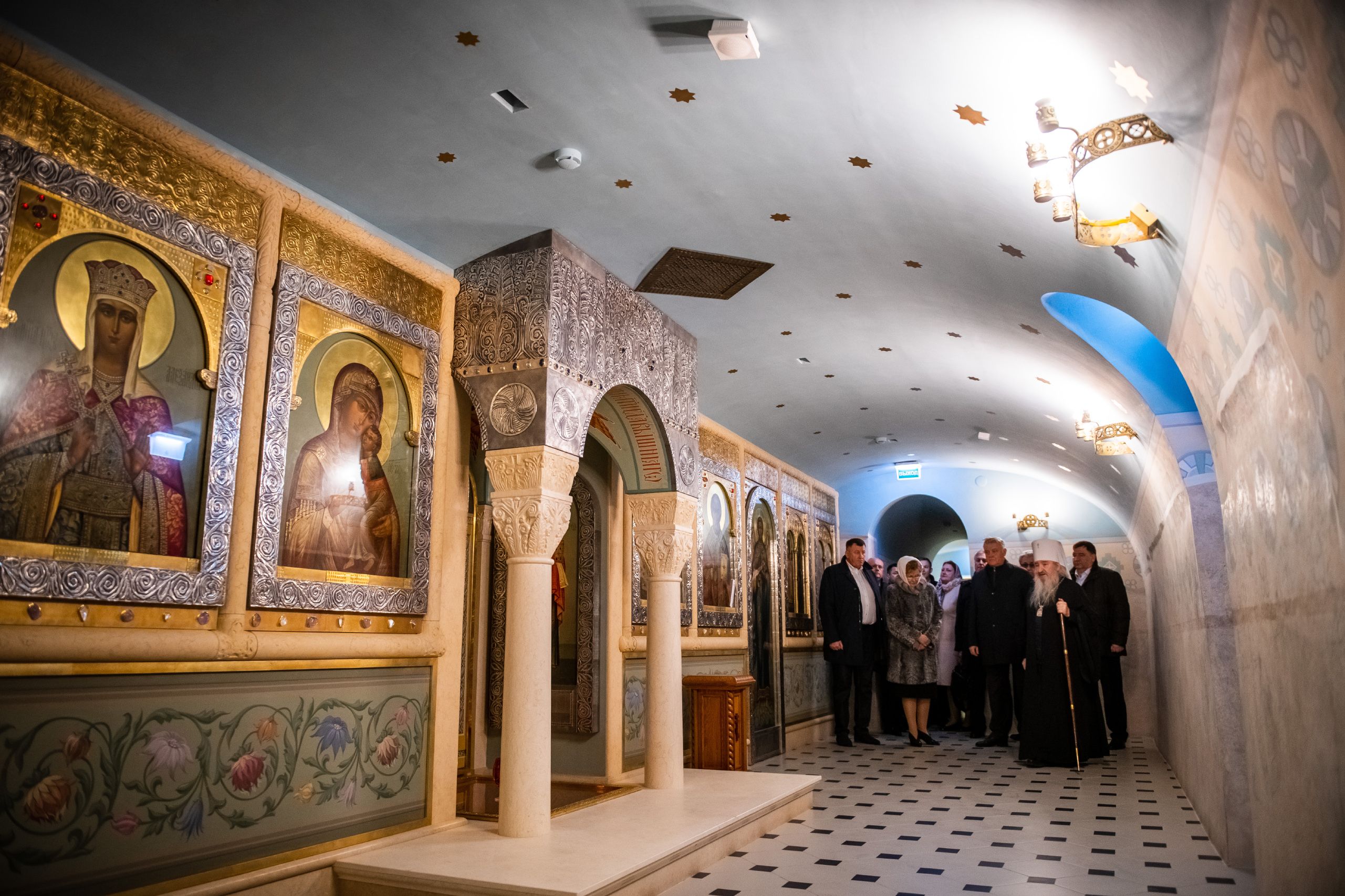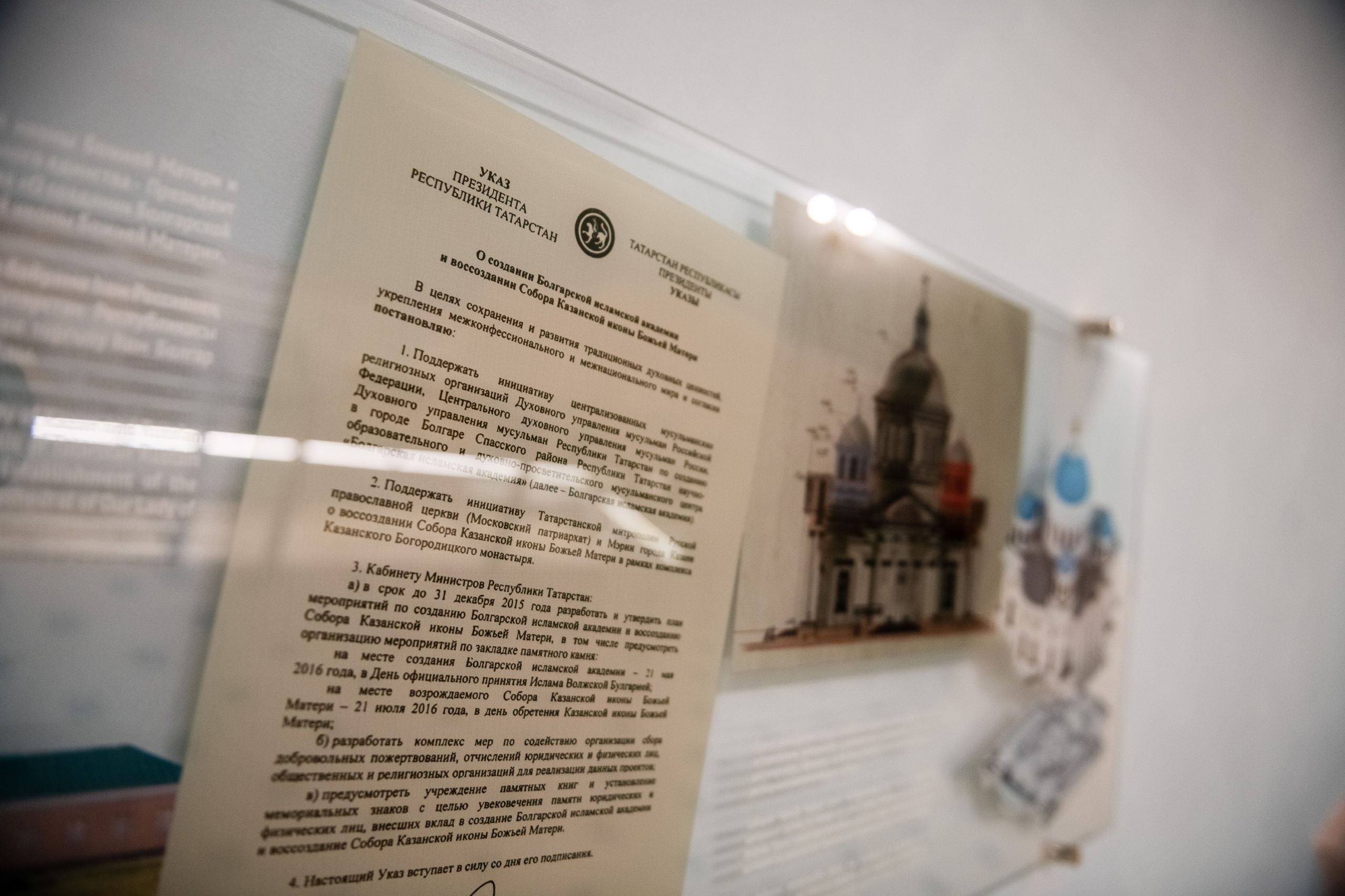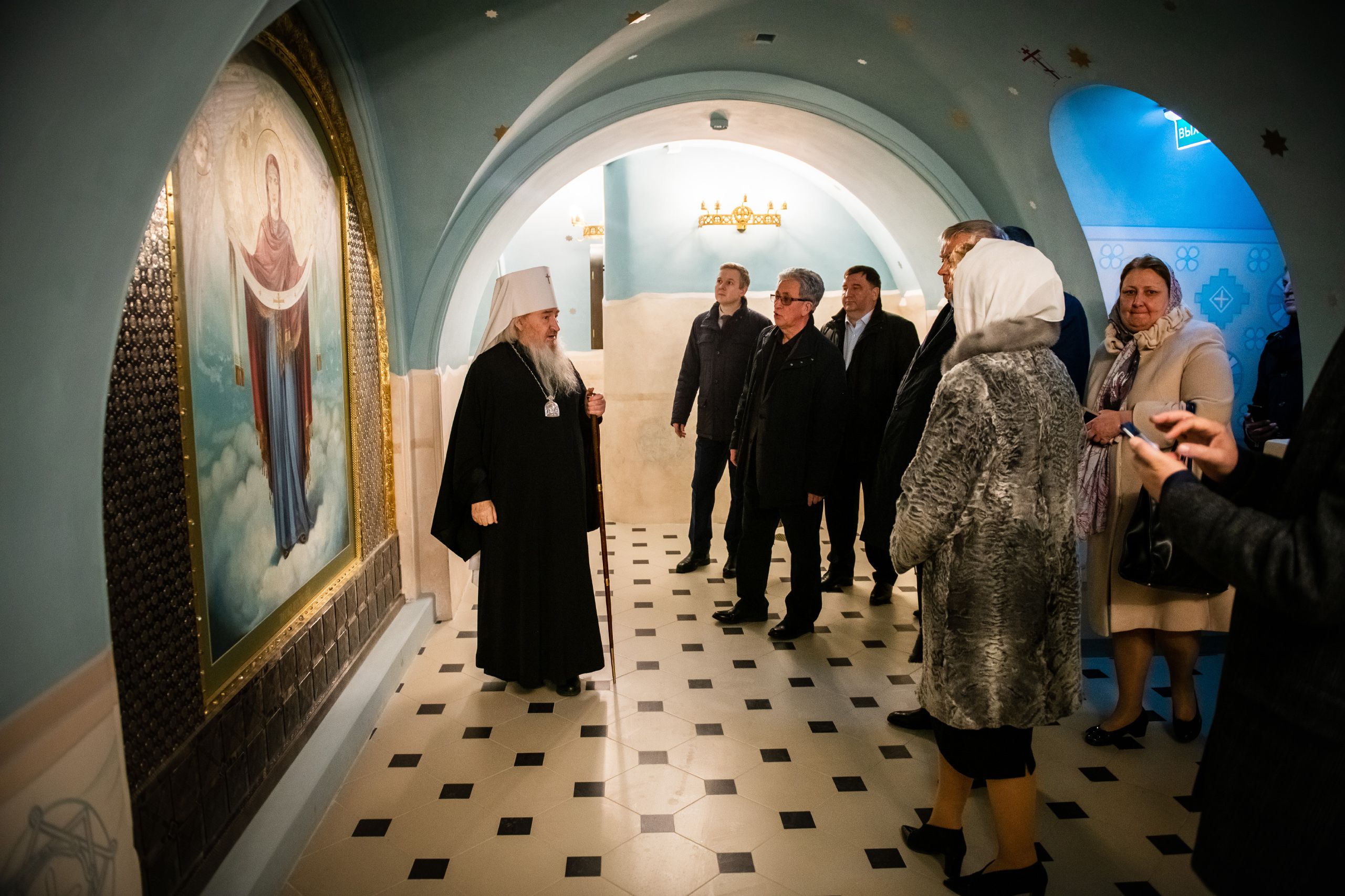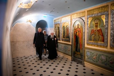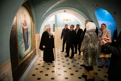 Важным пунктом посещения высоким гостем столицы Татарстана стал Казанско-Богородицкий мужской монастырь. Здесь Владимира Якунина и сопровождающих его лиц встретил митрополит Казанский и Татарстанский Феофан и исполнительный директор Республиканского фонда «Возрождение» Татьяна Ларионова. Глава Татарстанской митрополии ознакомил посетителей с историей Казанской иконы Богородицы и рассказал им о воссоздании собора на месте обретения ее образа.