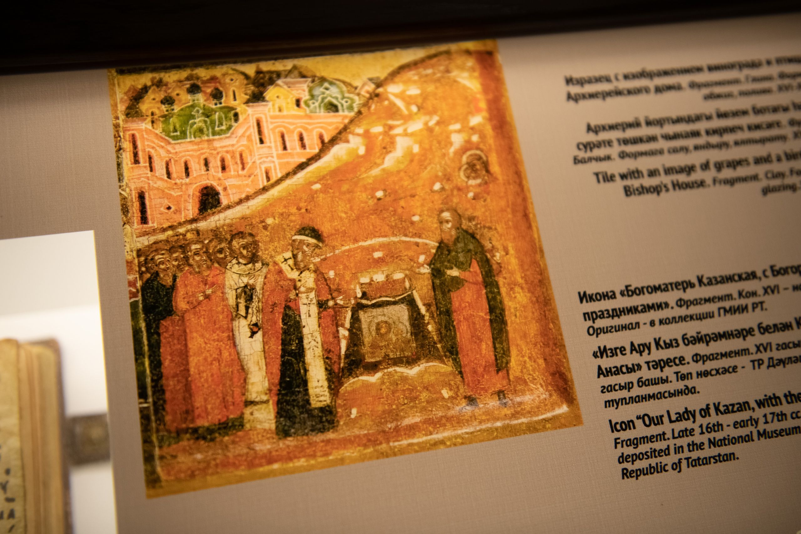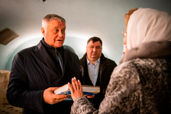 Затем Владимир Якунин посетил музей Казанской иконы Божией Матери, расположенный напротив Казанско-Богородицкого монастыря. Основатель музея, председатель Совета директоров ПАО «Ак Барс Банк» Валерий Сорокин провел обширную экскурсию по экспозиции и познакомил посетителей с коллекцией икон, написанных в разные годы в мастерской Богородицкой обители.