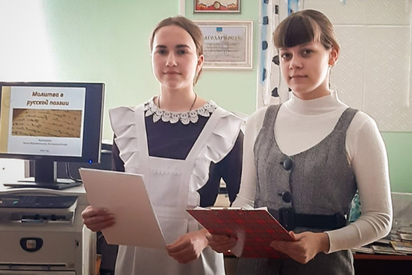 Затем учащиеся зачитали доклады, посвященные истории Дня православной книги, древнерусской книжности, молитве в русской поэзии и православным интернет-сайтам.