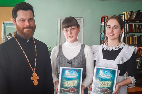 Настоятель поблагодарил ребят за участие в мероприятии и вручил докладчикам Святое Евангелие и книгу «Библейские истории».