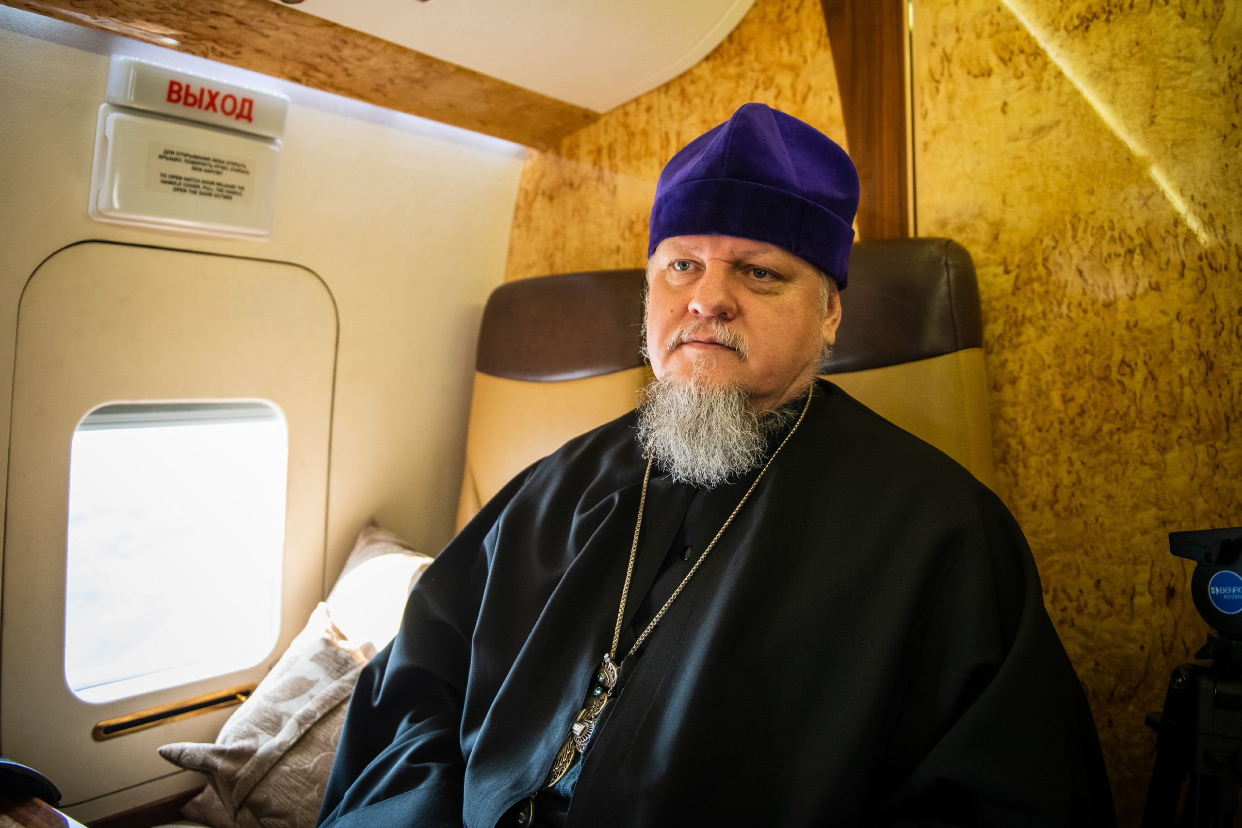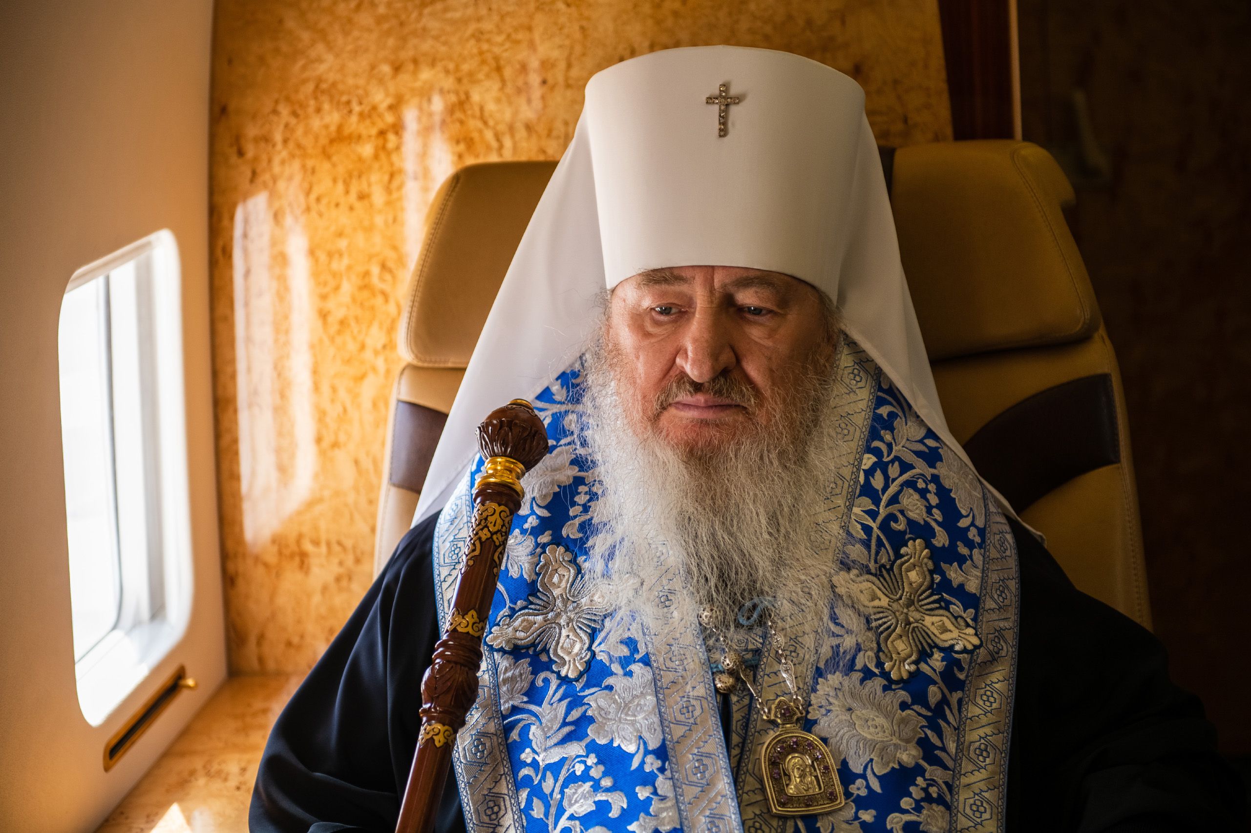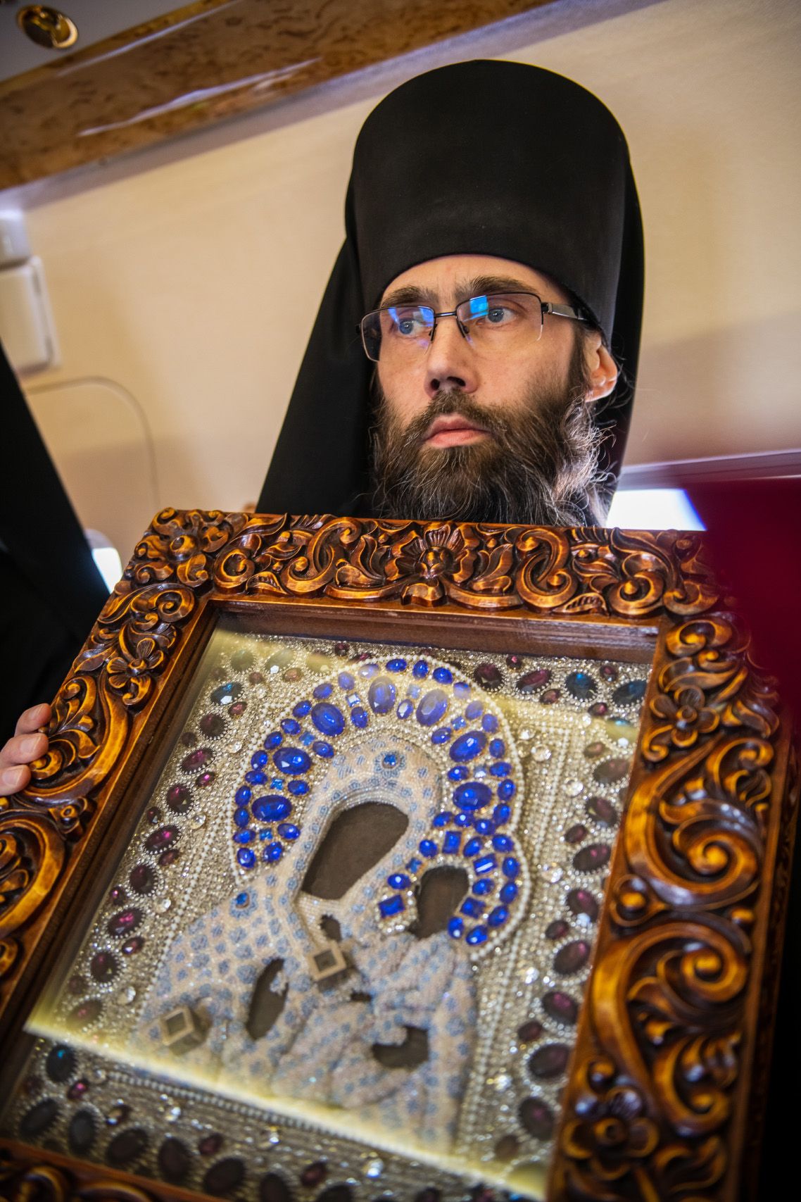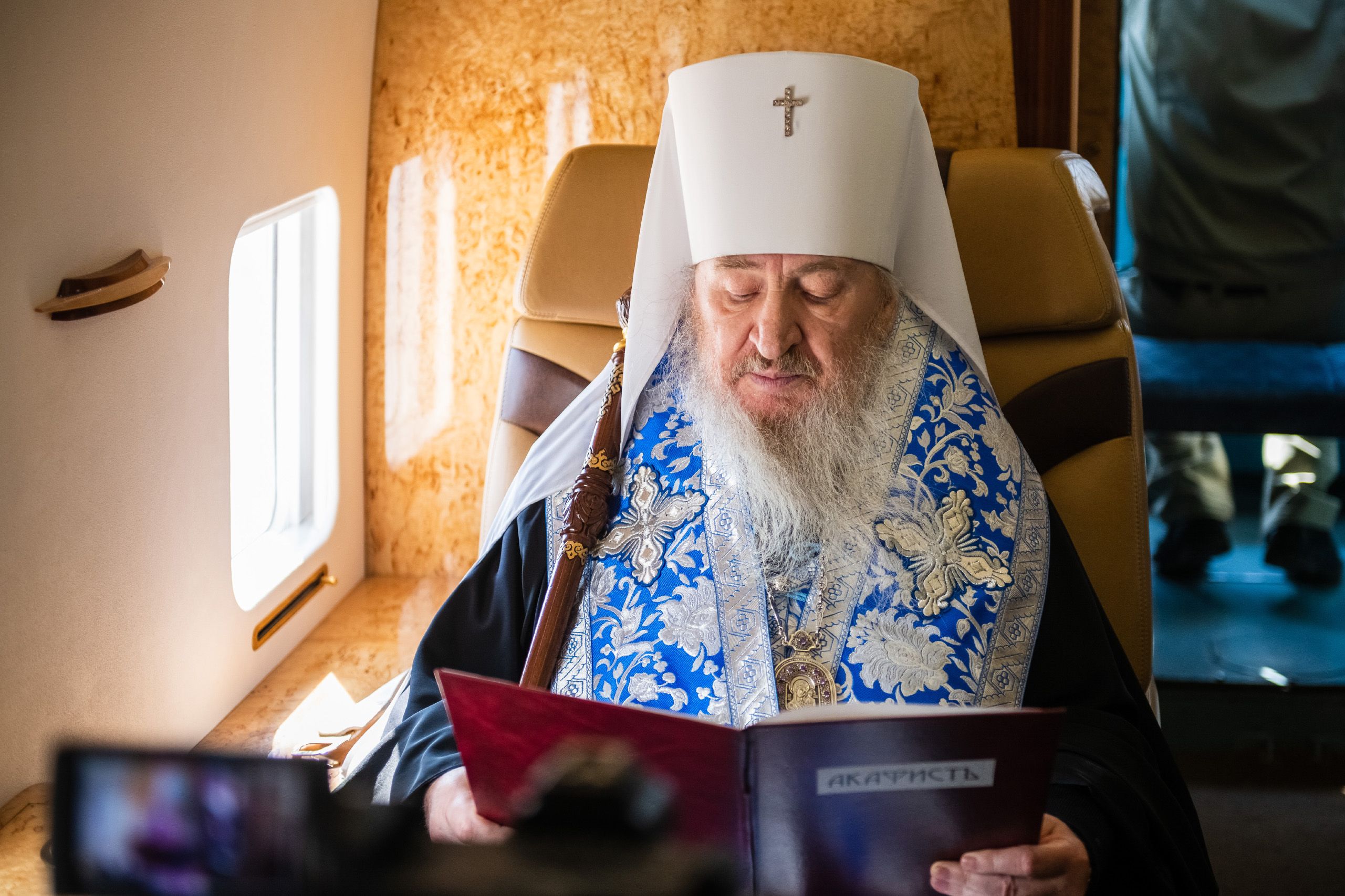В воздухе святыни сопровождали секретарь Казанского епархиального управления протоиерей Владимир Самойленко, наместник Казанско-Богородицкого мужского монастыря игумен Марк (Виленский), благочинный I Казанского округа протоиерей Алексий Чубаков, наместник Введенского Кизического мужского монастыря игумен Пимен (Ивентьев).