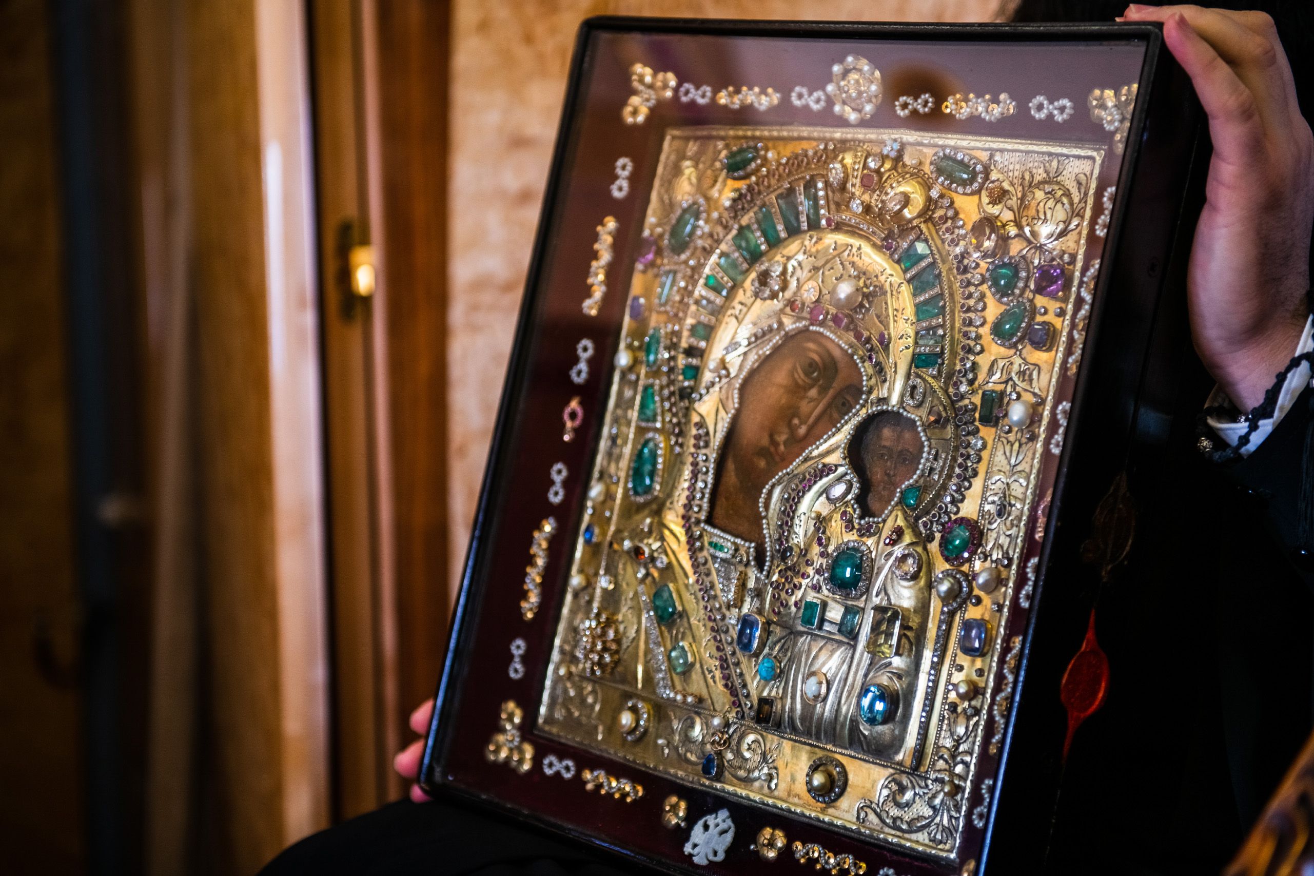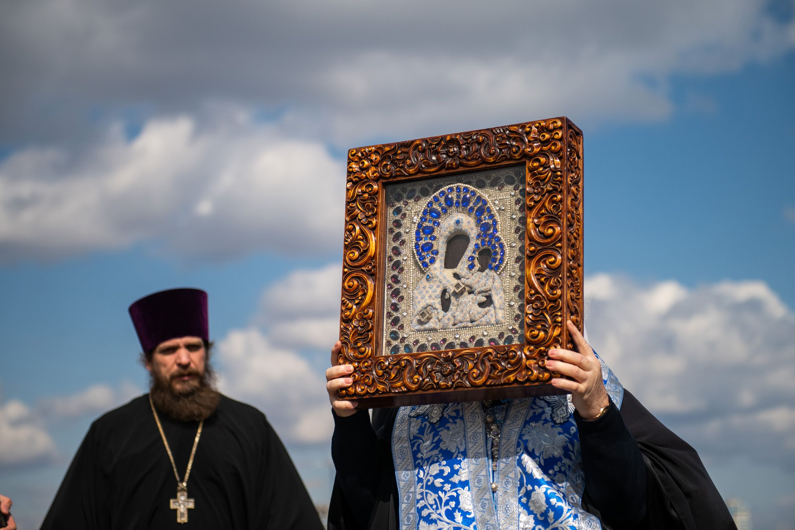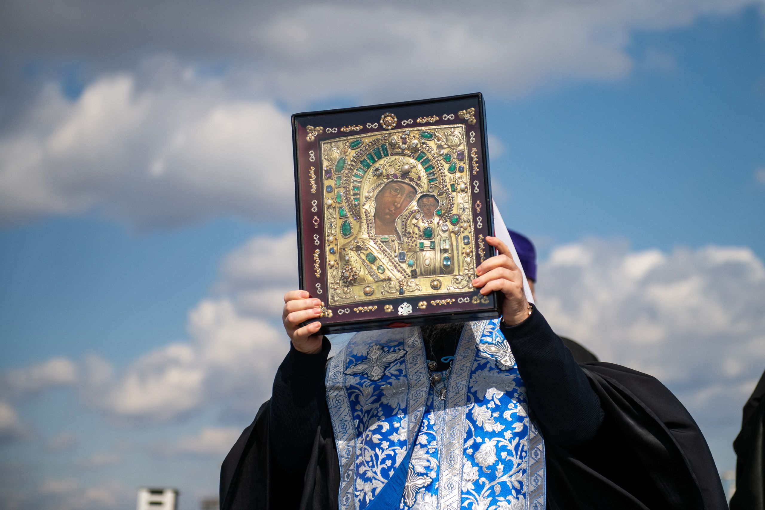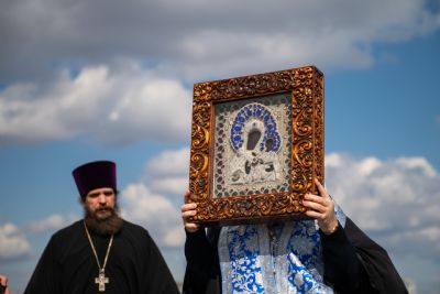 Святые образа были доставлены на вертолётную площадку из Казанско-Богородицкого мужского монастыря и Петропавловского собора Казани.