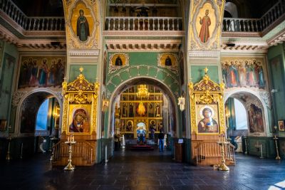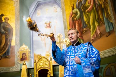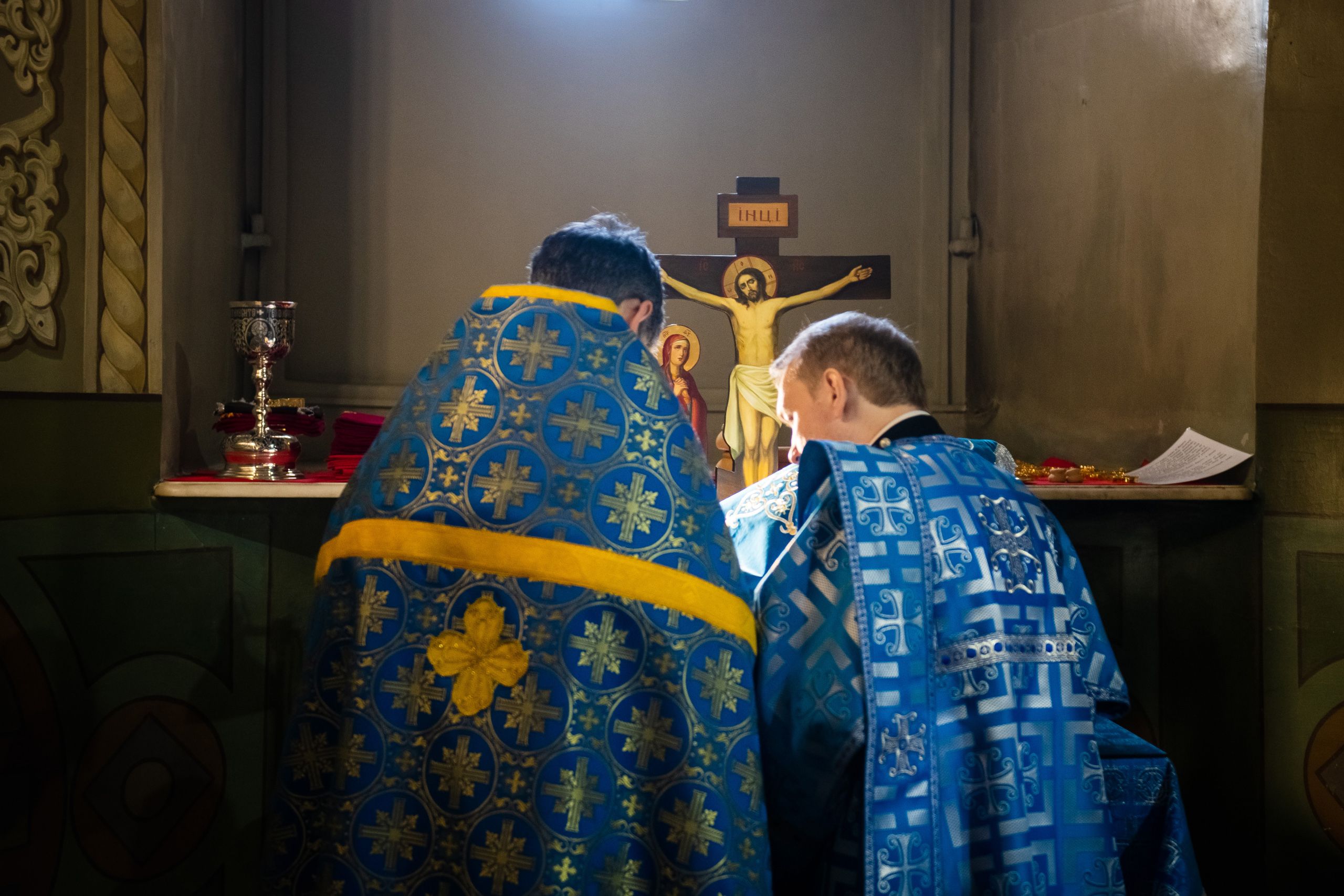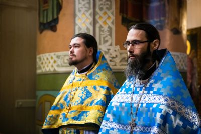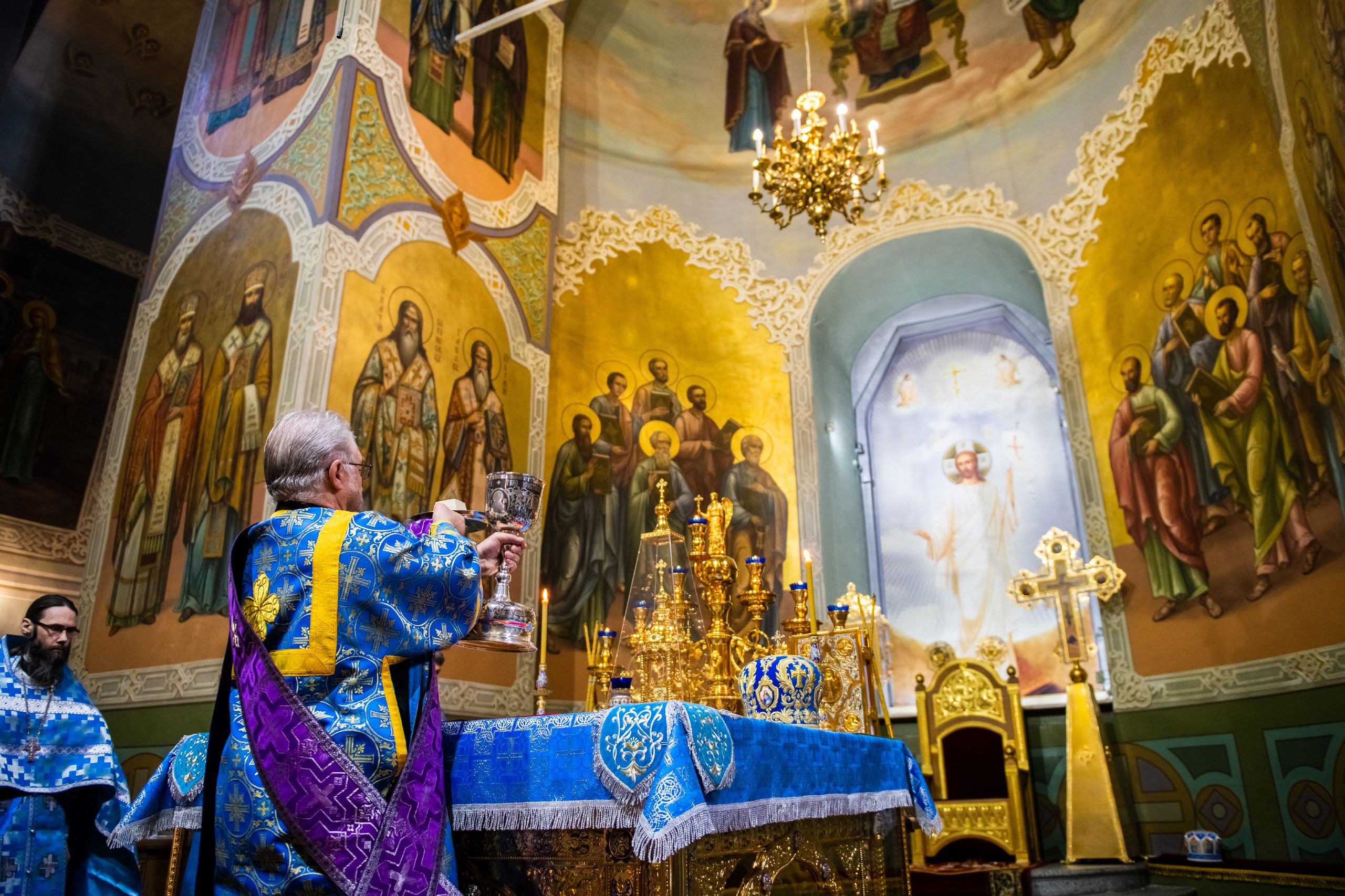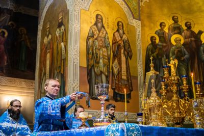 Песнопения исполнялись смешанным хором собора под управлением регента Екатерины Костыловой.
