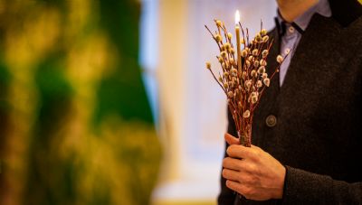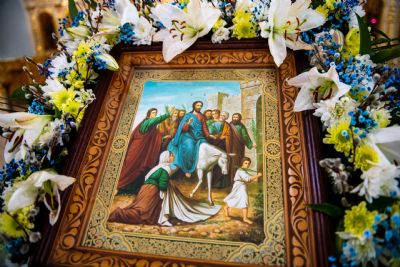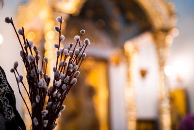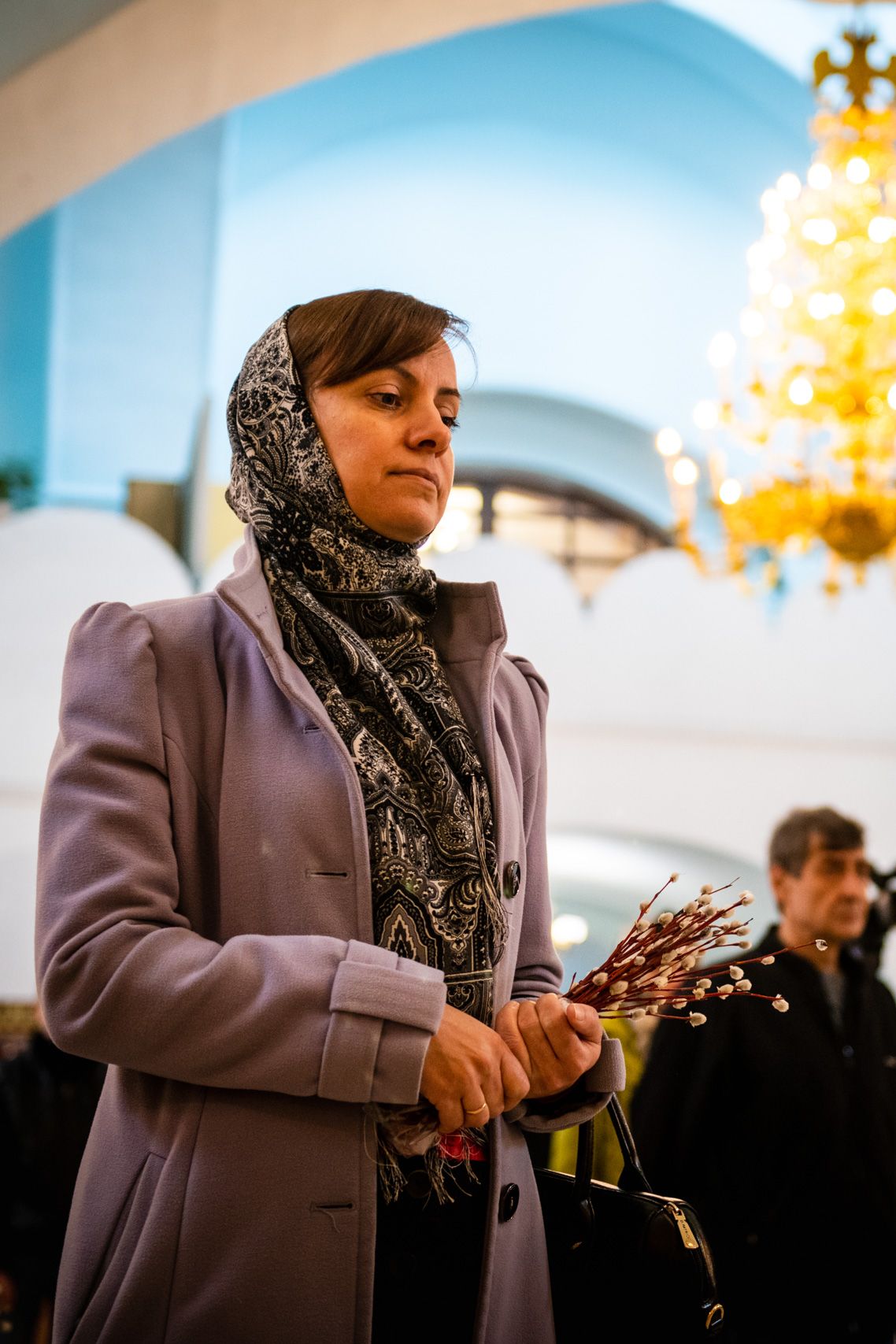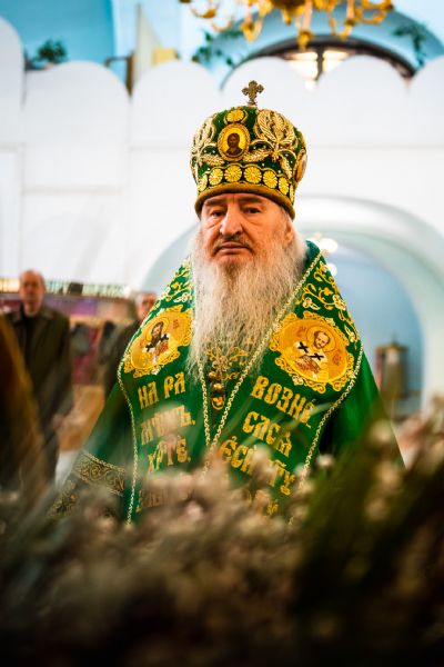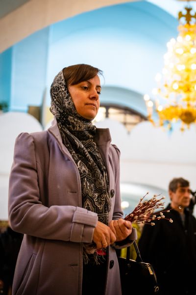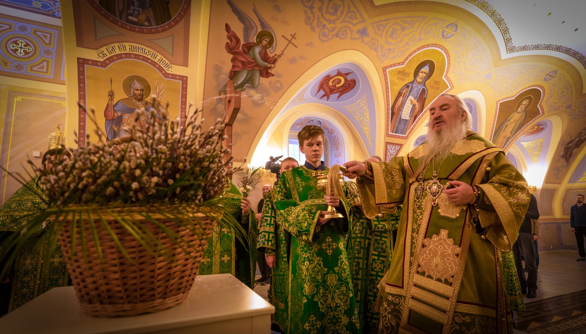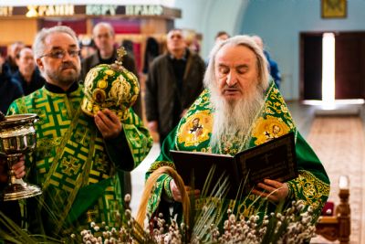 После прочтения заамвонной молитвы митрополит Феофан прочитал молитву на освящение ваий и окропил вербы святой водой. Духовенство пропело тропарь, кондак и величание праздника.