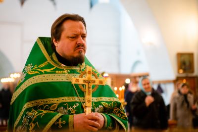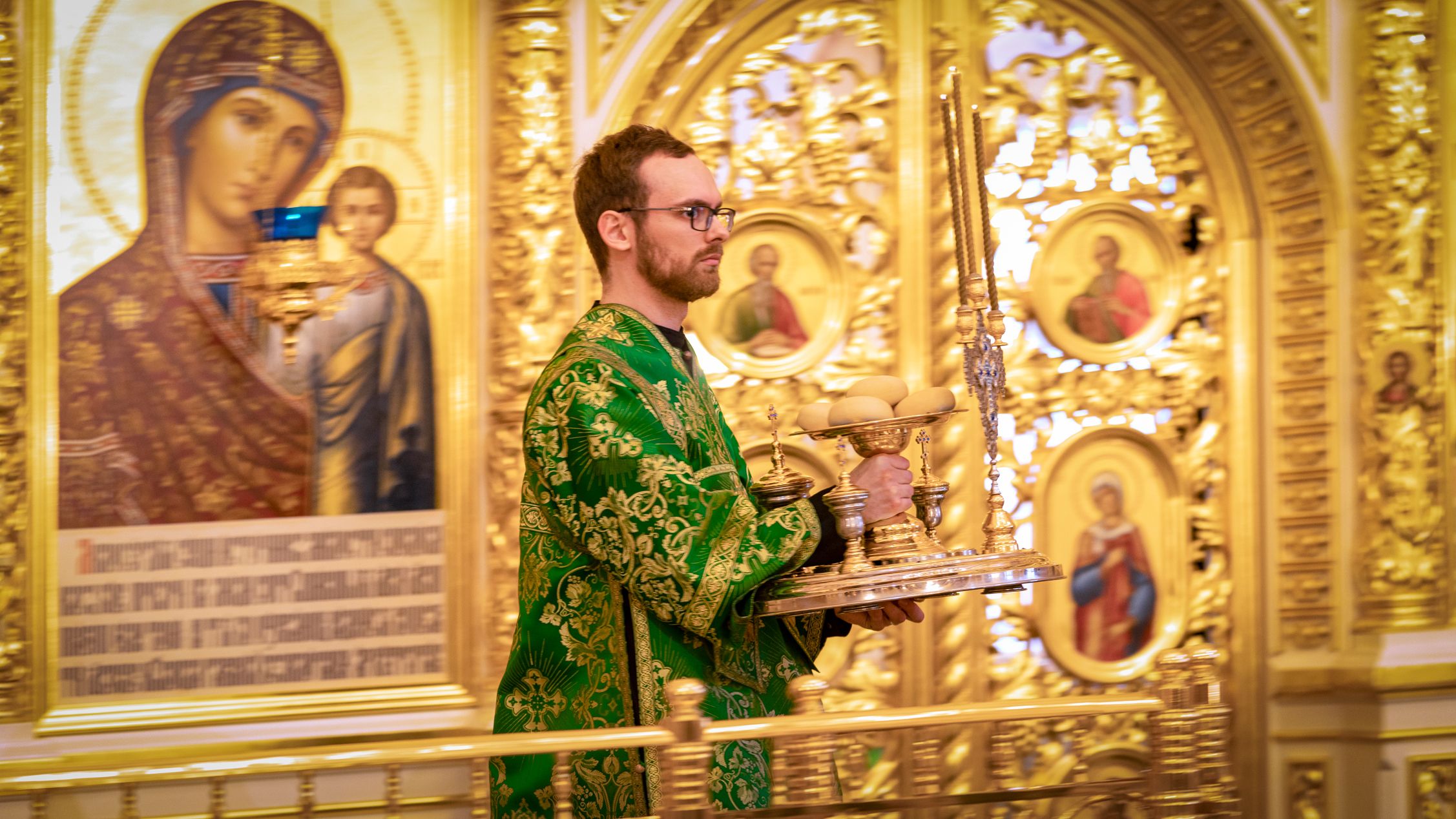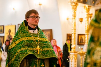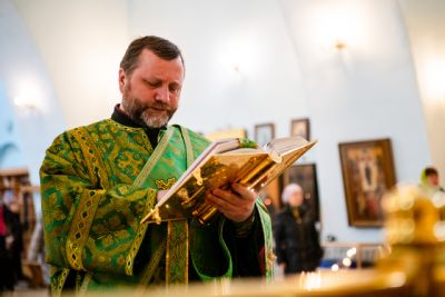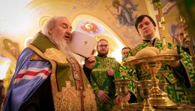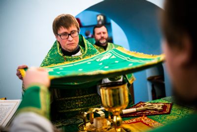 За Литургией главе Татарстанской митрополии сослужили настоятель протоиерей Алексий Державин и клирик Богоявленского собора иерей Александр Махов.
