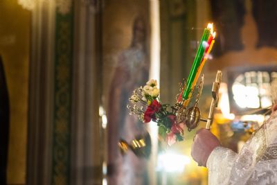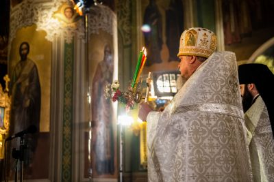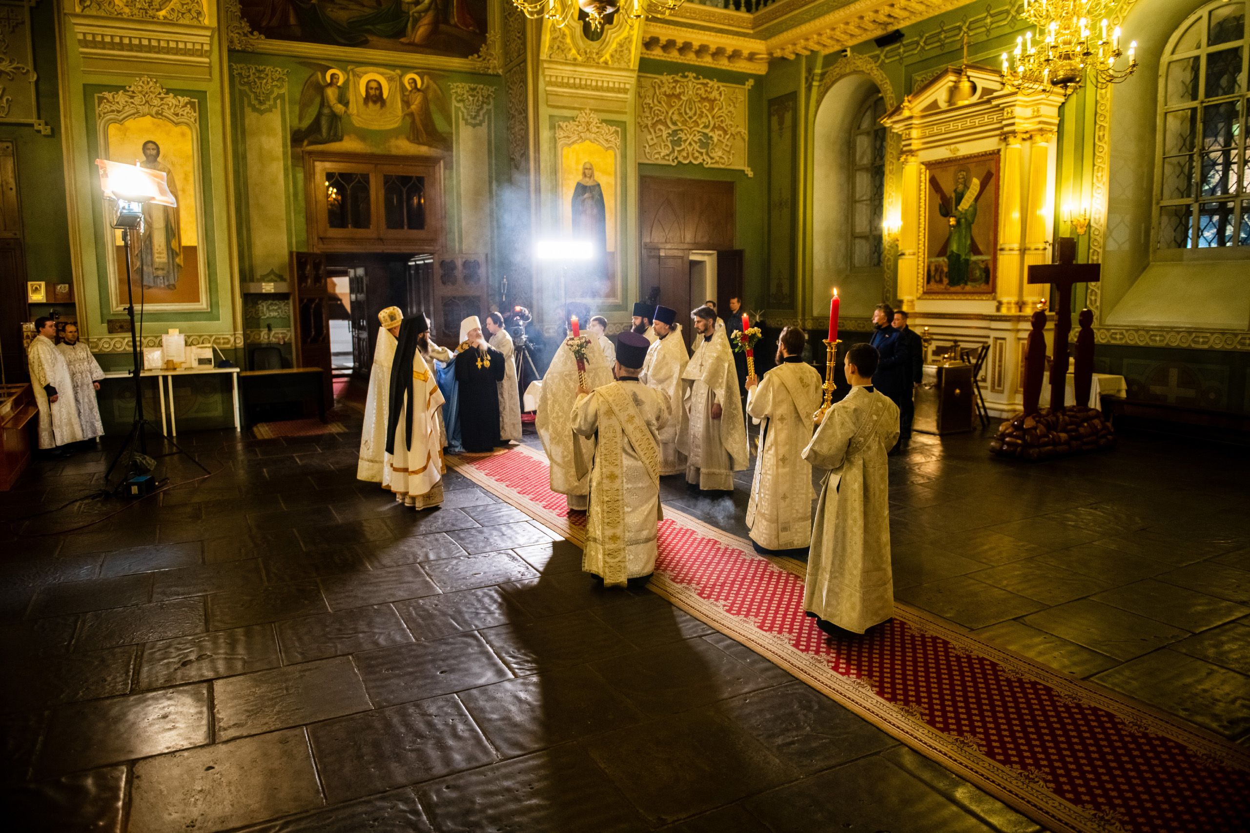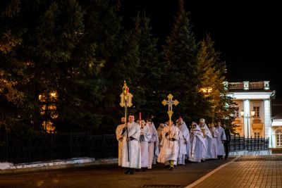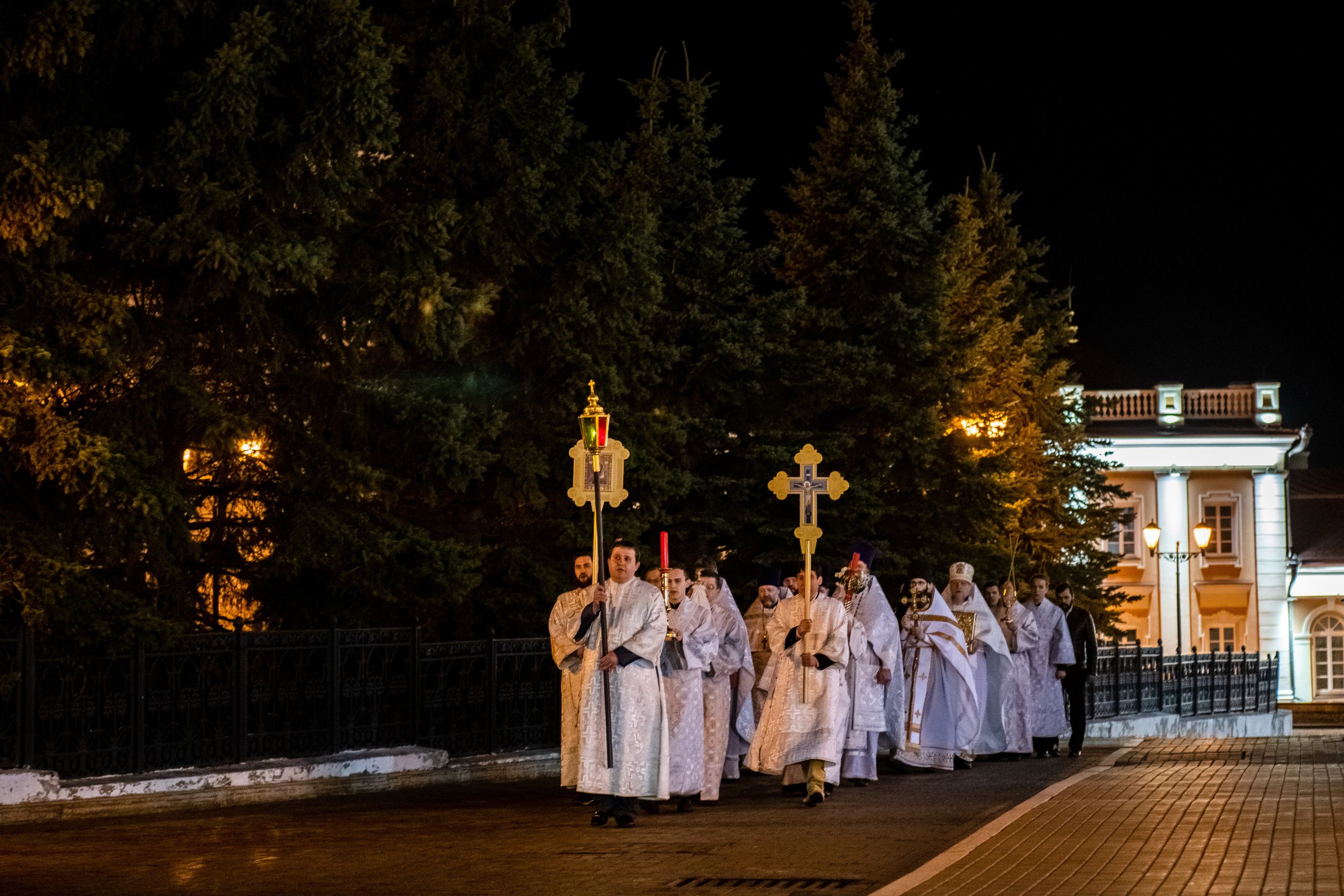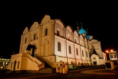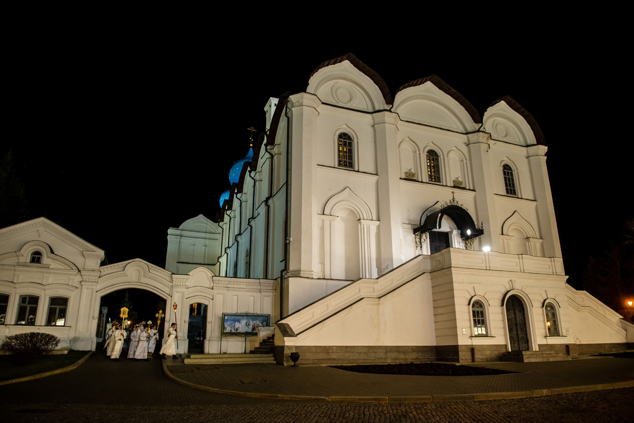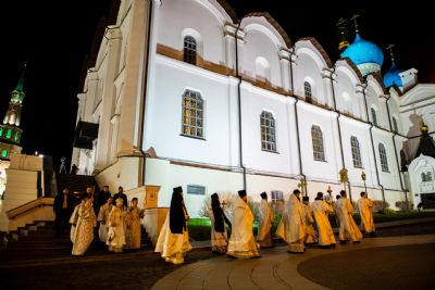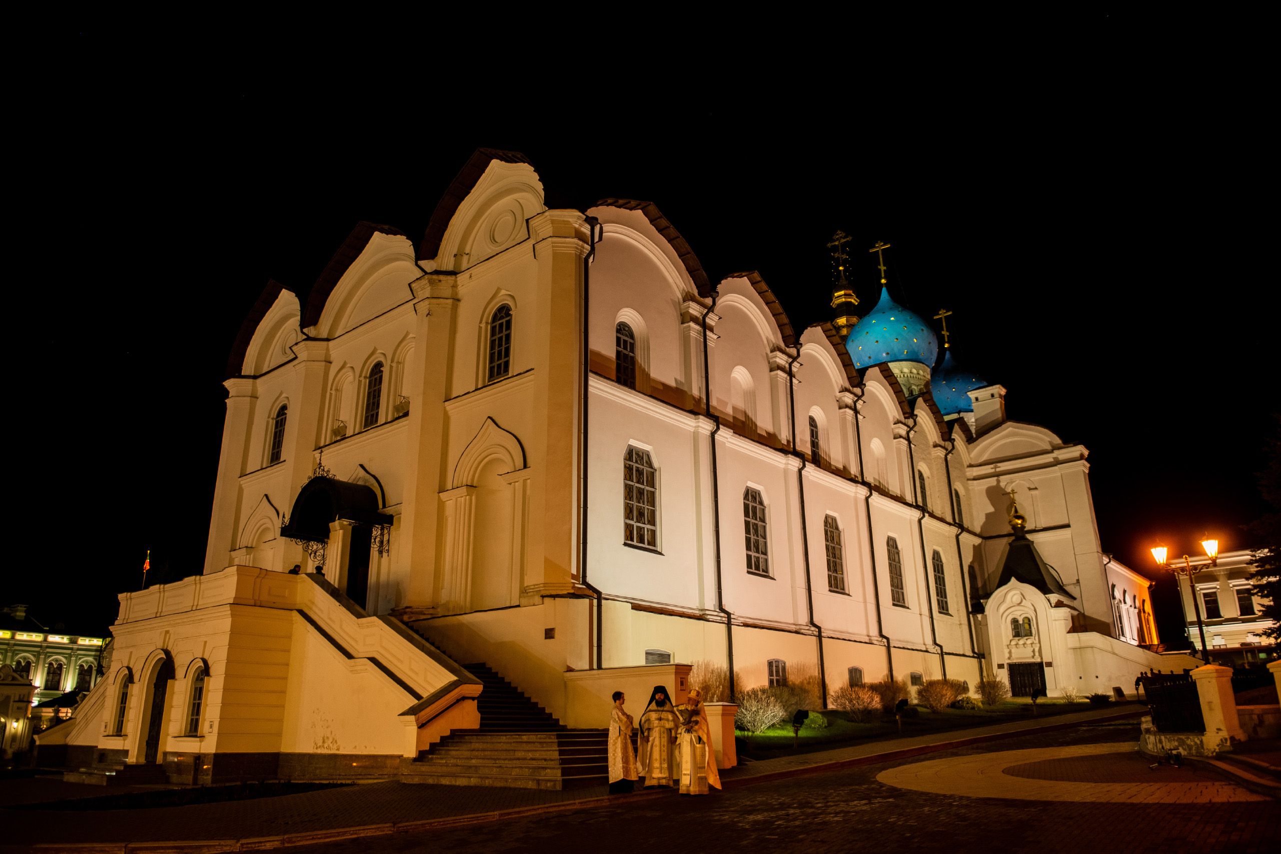 Последние минуты — и мы с вами начнём Пасхальную заутреню. Поздравляю вас с наступлением праздника Пасхи Христовой. Я вместе с вами здесь, в сердце нашего града Казани, в главном соборе Казанской епархии — древней святыне, которая на протяжении многих веков была символом для православных верующих людей.