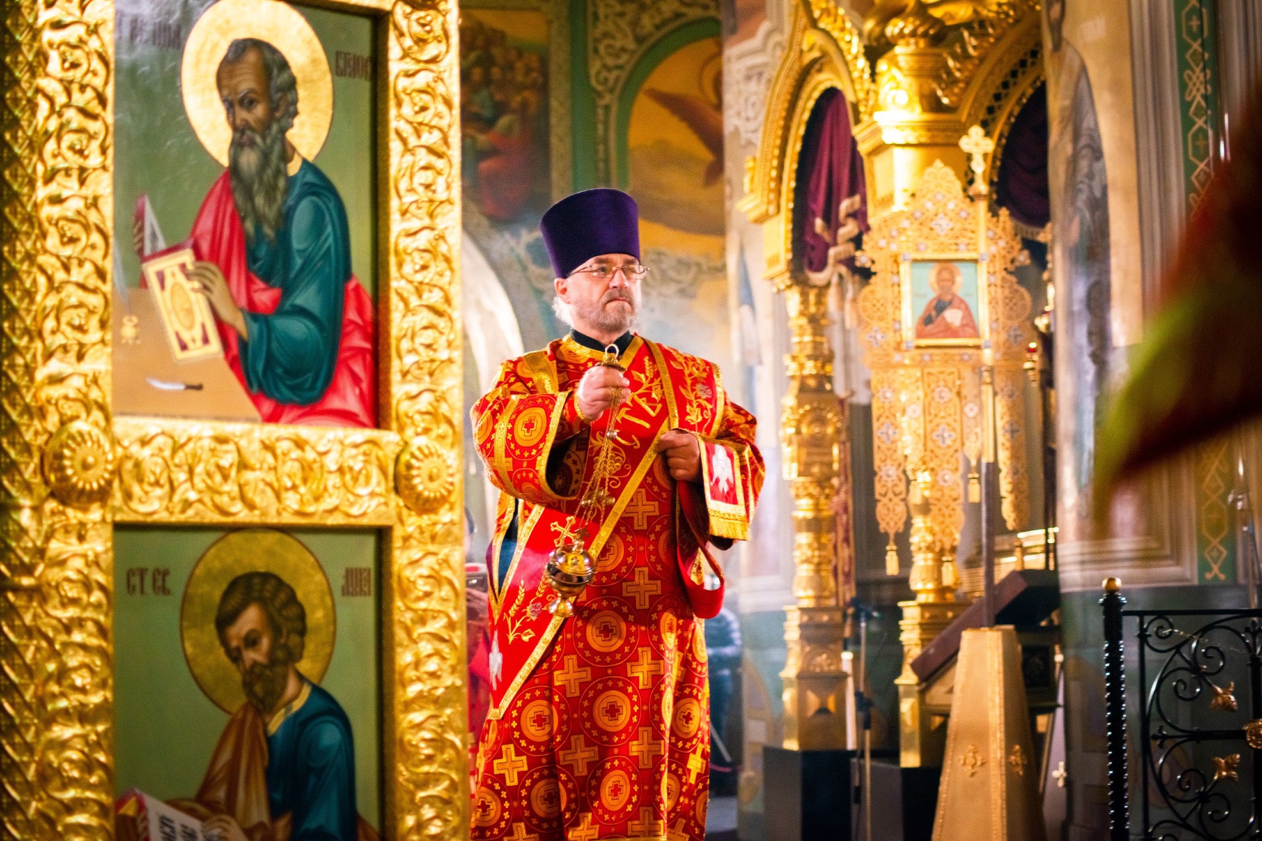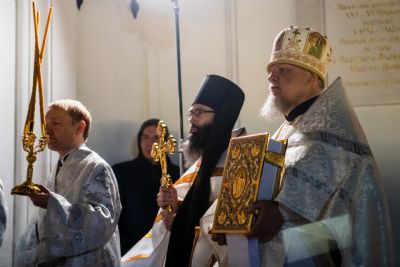 На малом входе протоиерей Алексий Краевский, благочинный Высокогорского округа Казанской епархии и настоятель храма Успения Пресвятой Богородицы города Казани, был удостоен права ношения креста с украшениями.