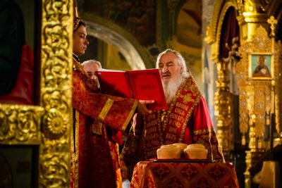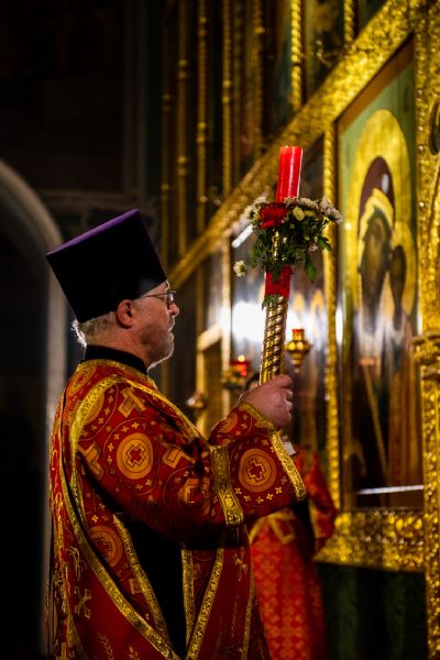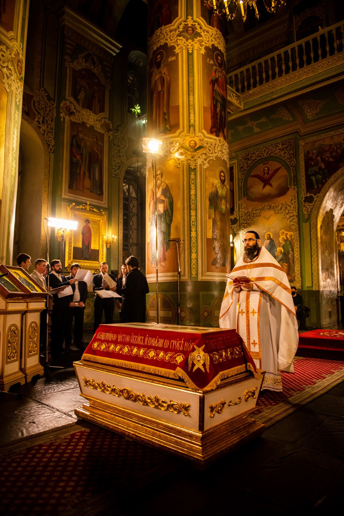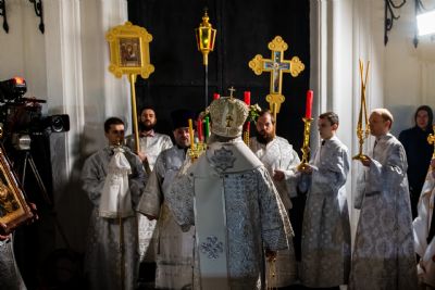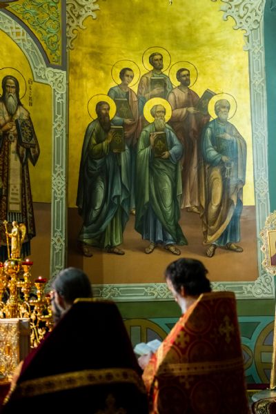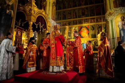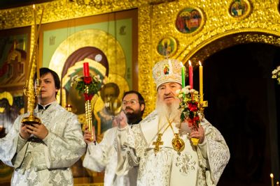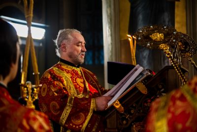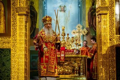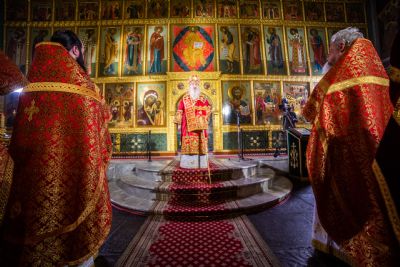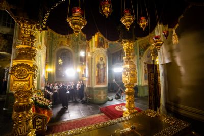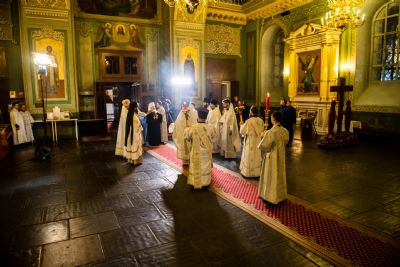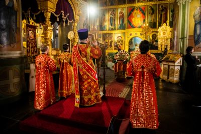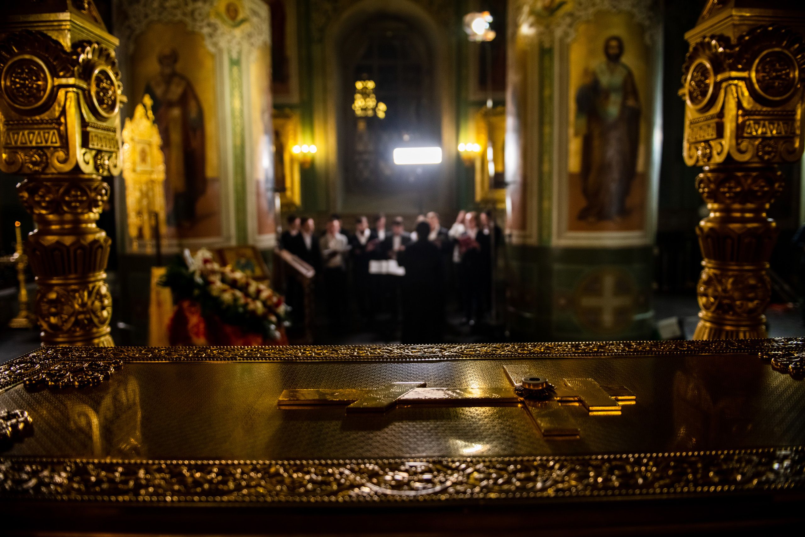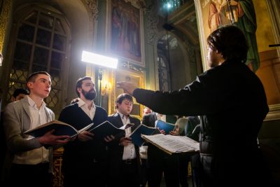 Песнопения исполнялись архиерейским мужским хором под управлением Дениса Рогова.