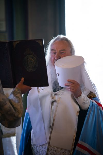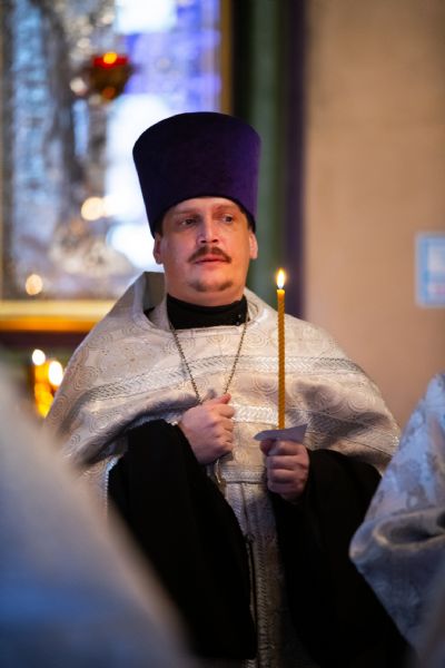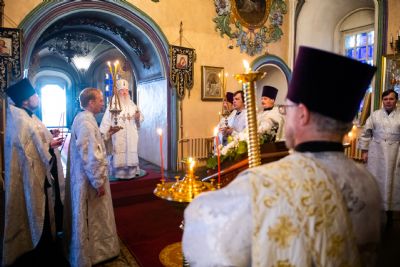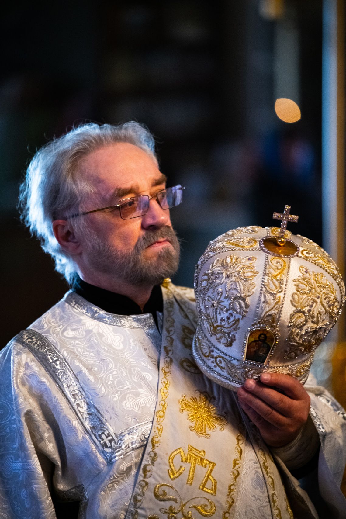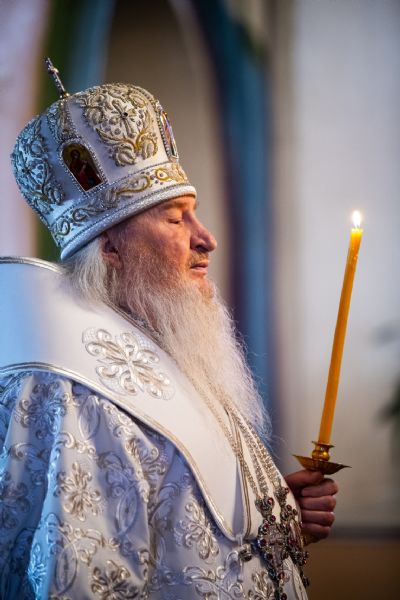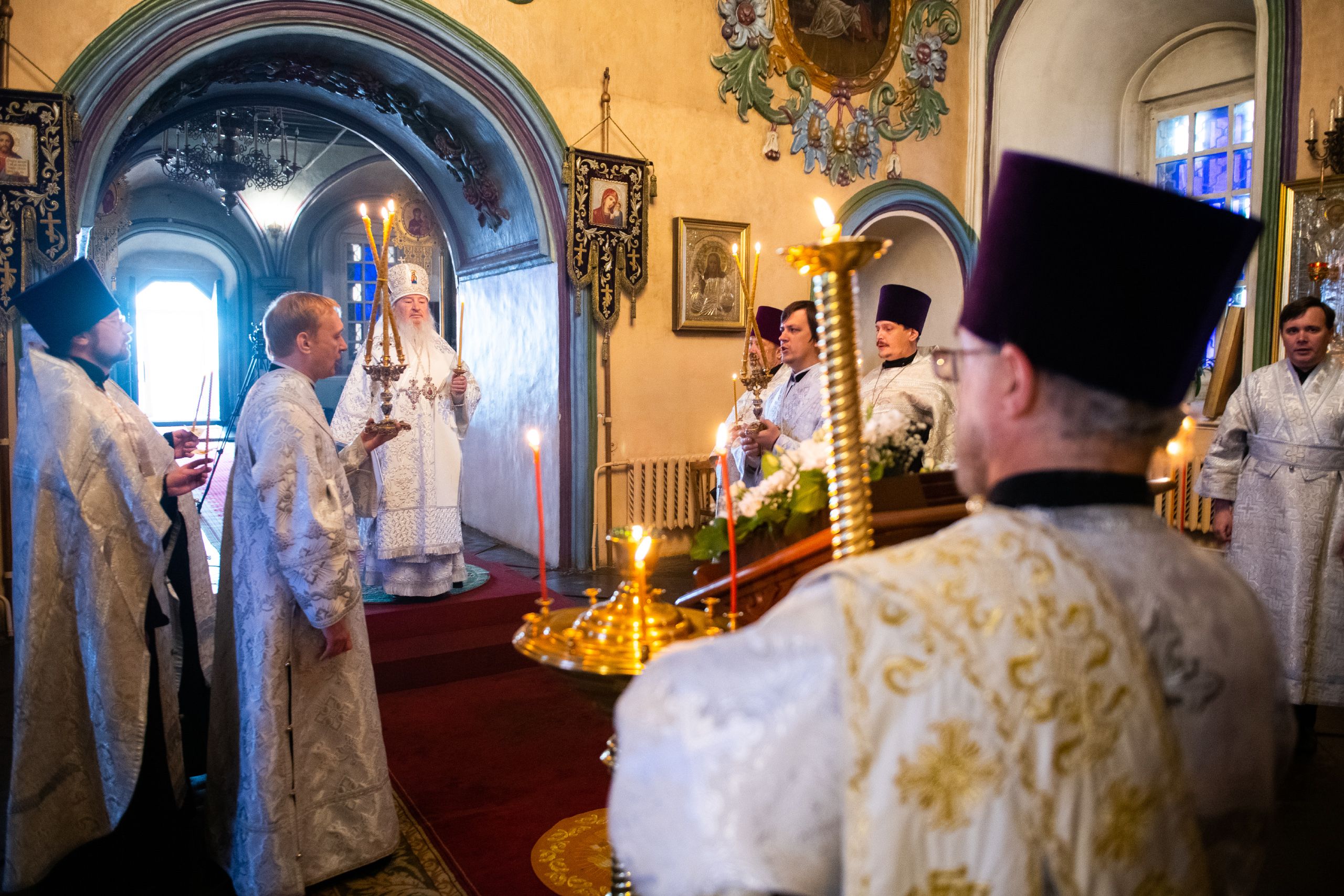 За вечерним богослужением Его Высокопреосвященству сослужили протоиерей Сергий Титов и клирики собора — протоиерей Олег Рассыпнинский, иерей Антоний Ермошин, иерей Алексий Каст.