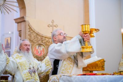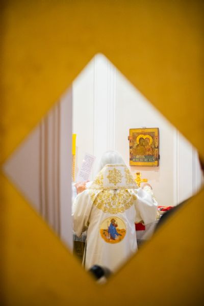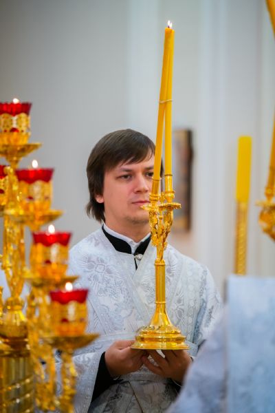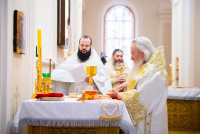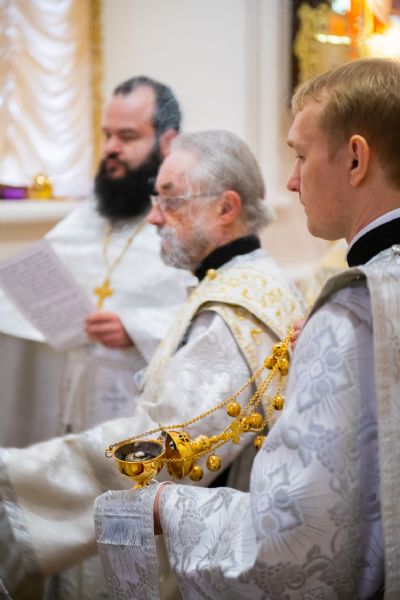 Богослужебные песнопения исполнялись архиерейским мужским хором под управлением Дениса Рогова.