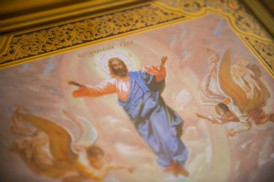 По заамвонной молитве духовенство пропело тропарь, кондак и величание праздника Вознесения Господня.