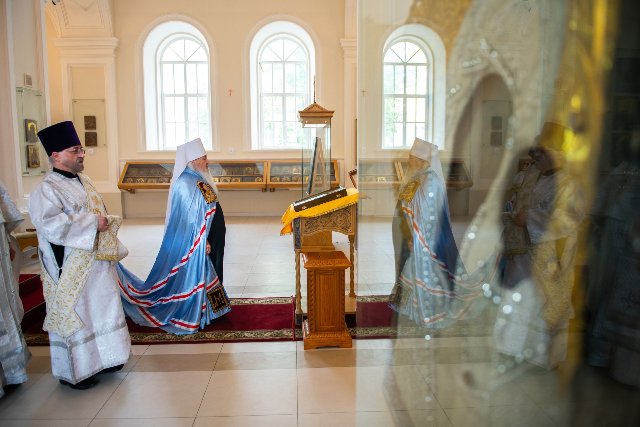 Главе Татарстанской митрополии сослужили наместник Казанско-Богородицкого мужского монастыря игумен Марк (Виленский) и благочинный этой обители иеромонах Андрей (Сироткин).