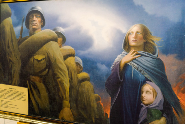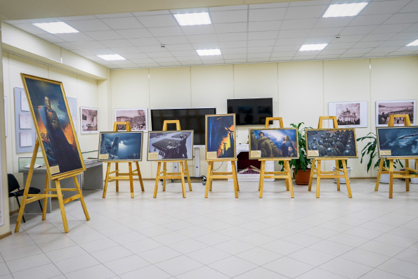 В эти дни картины, посвященные войне, представлены вниманию учащихся и работников духовной школы.