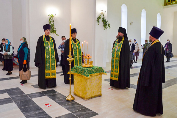 Божественную литургию и вечерню с чтением коленопреклоненных молитв возглавил настоятель прихода Рождества Христова игумен Василий (Сардаев).