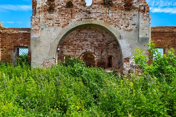 На прилегающей к церкви территории добровольцы скосили траву и вырубили деревья. В будущем они планируют укрыть стены храма для предотвращения его дальнейшего разрушения.