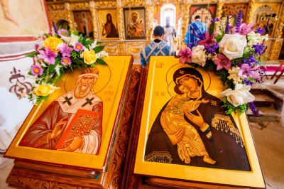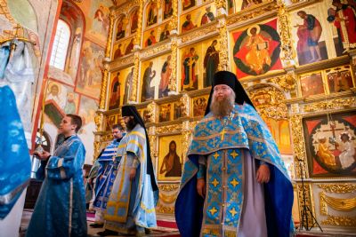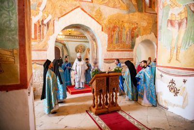 Богослужебные песнопения исполнялись архиерейским мужским хором Казанской епархии под управлением Дениса Рогова. За Литургией молились прихожане и прибывшие на праздник в обитель паломники.