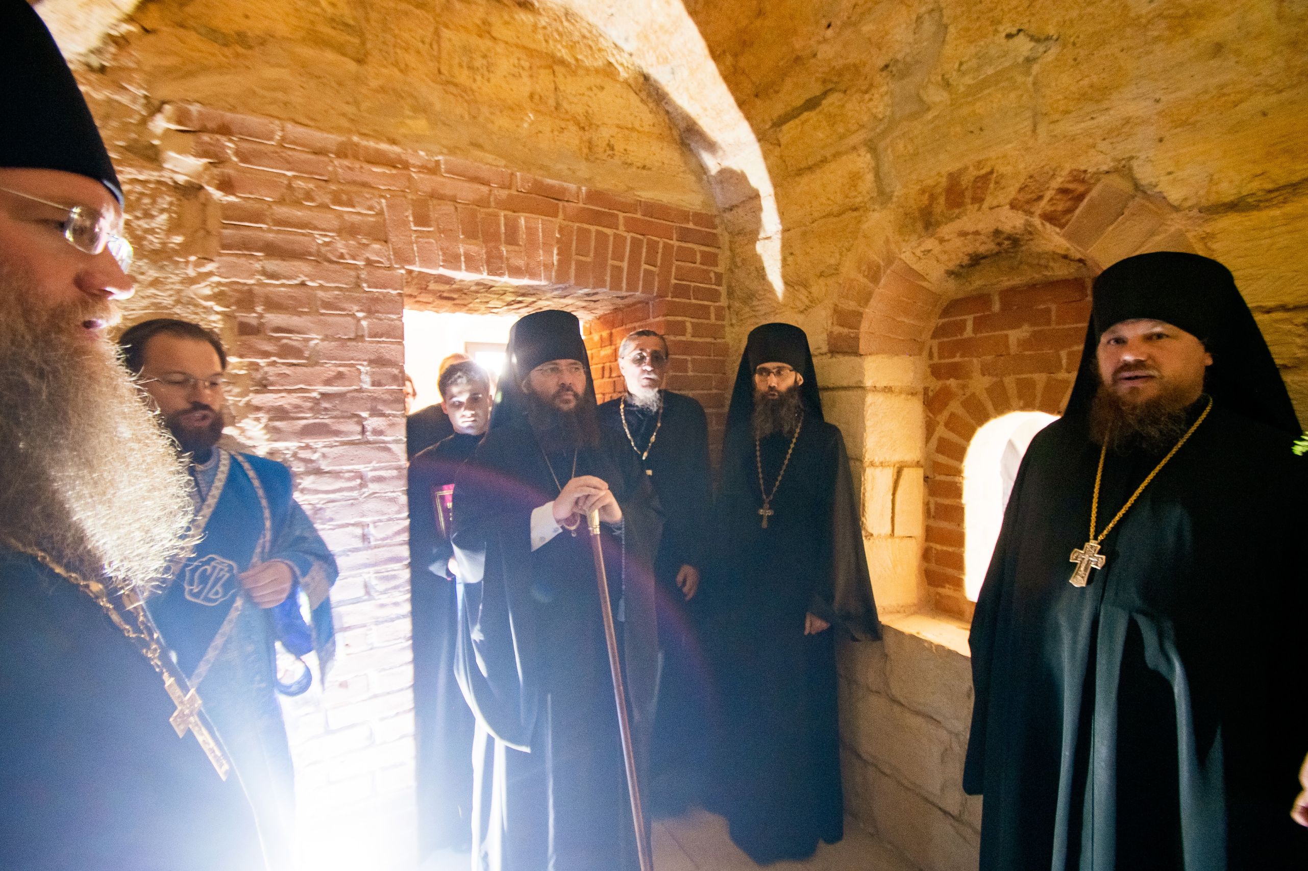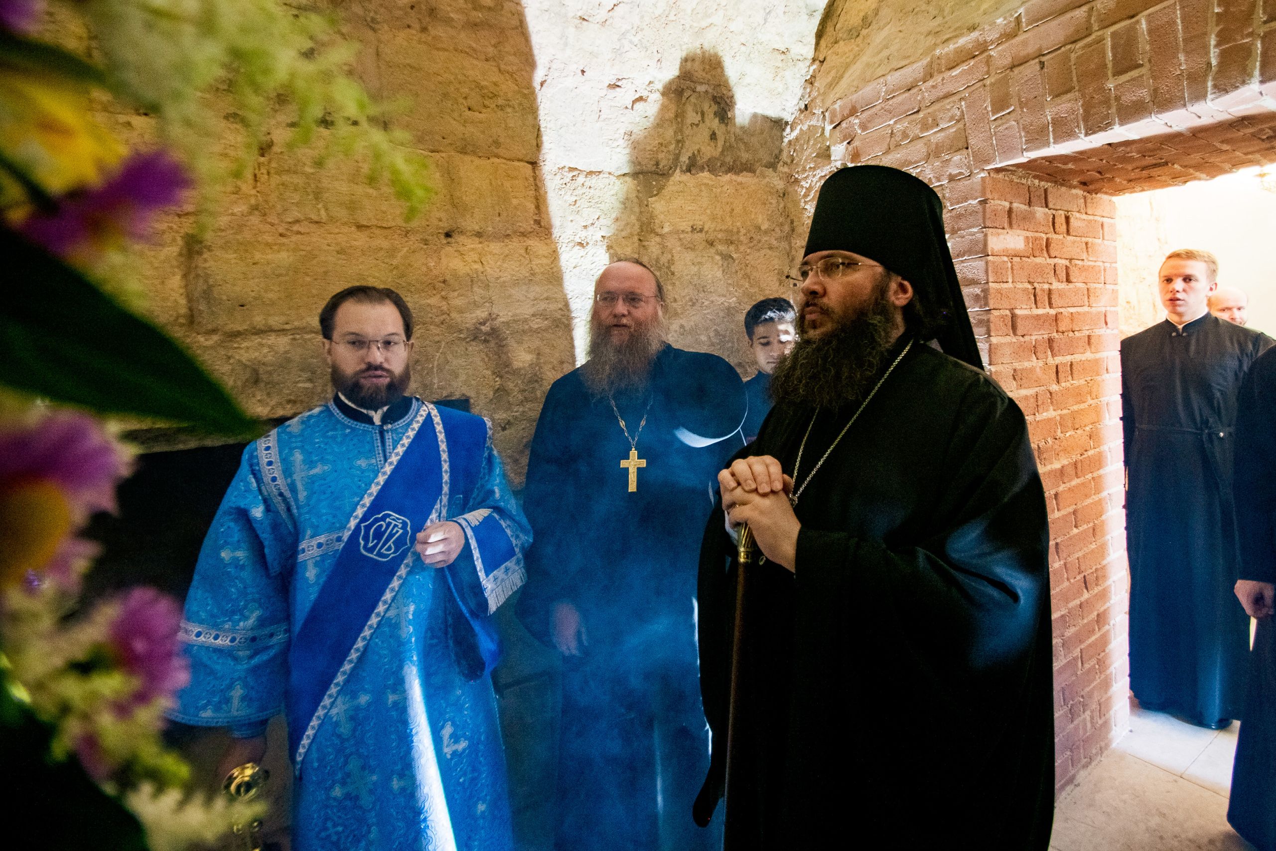 Затем викарный архиерей и духовенство проследовали крестным ходом в древнюю келью святителя Германа Казанского, расположенную в цокольном этаже Никольской церкви. Здесь священнослужители пропели тропарь, кондак и величание святому покровителю монастыря. Преосвященный владыка прочитал молитву святителю Герману.