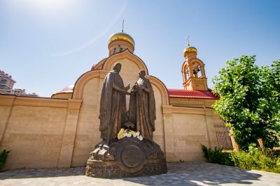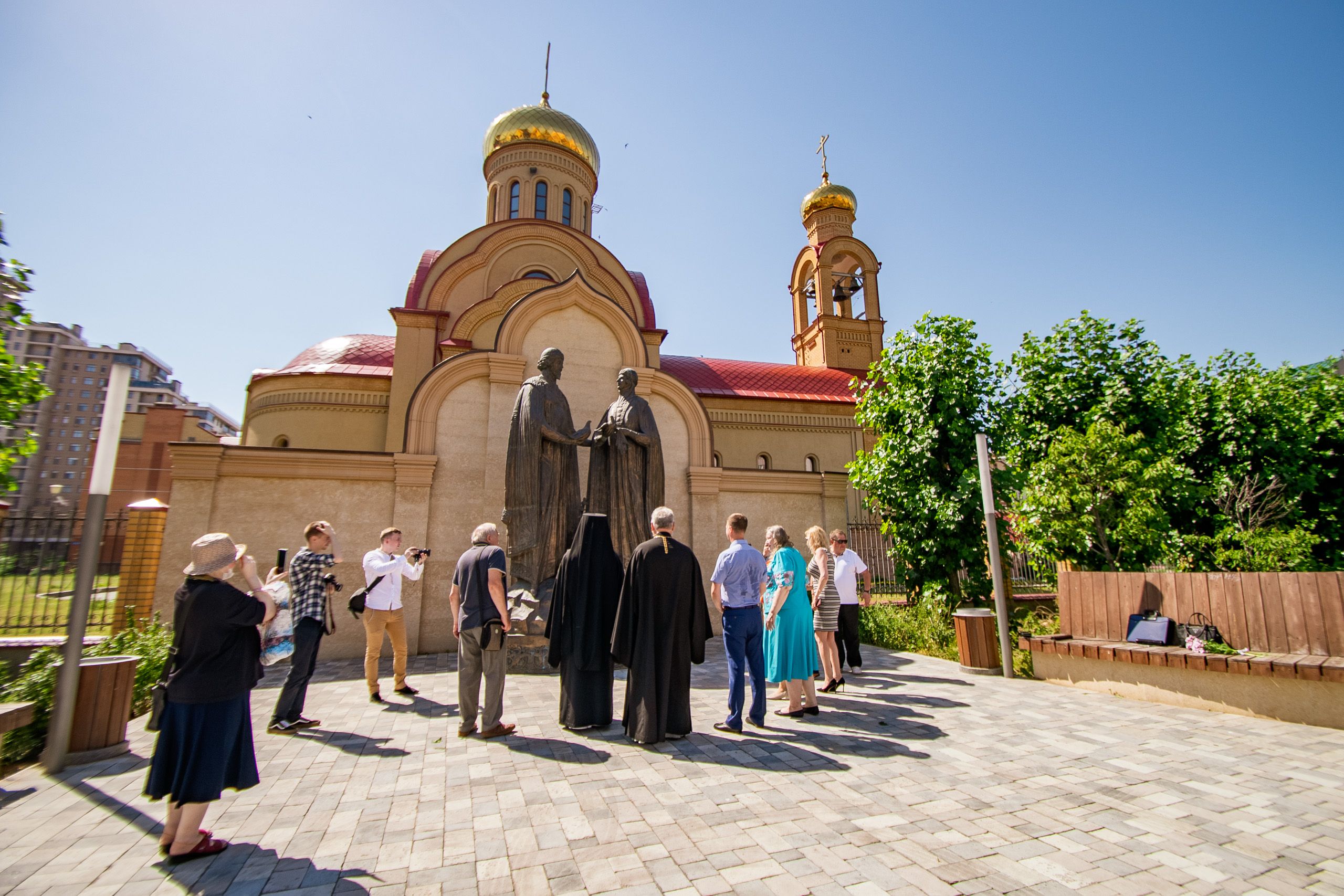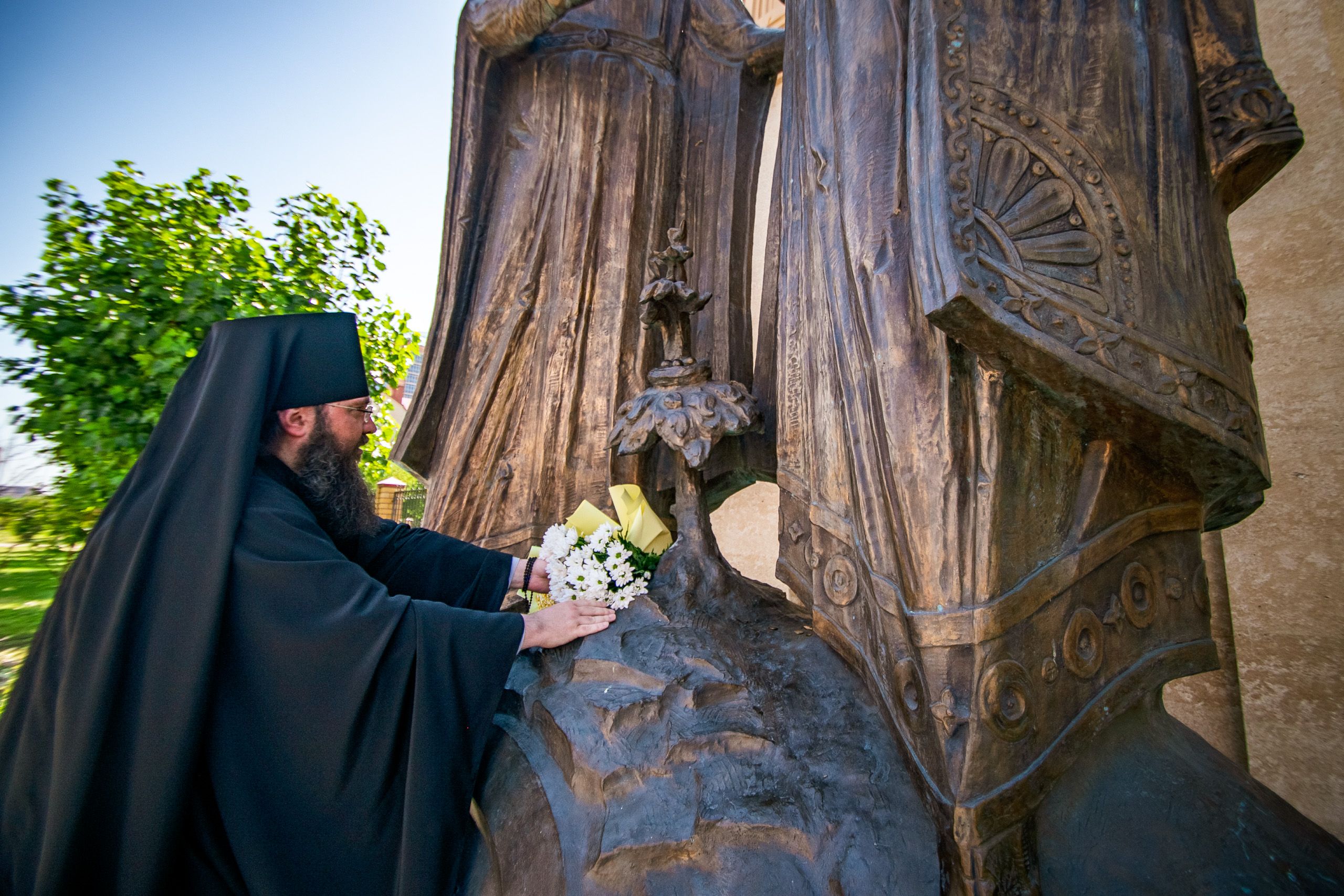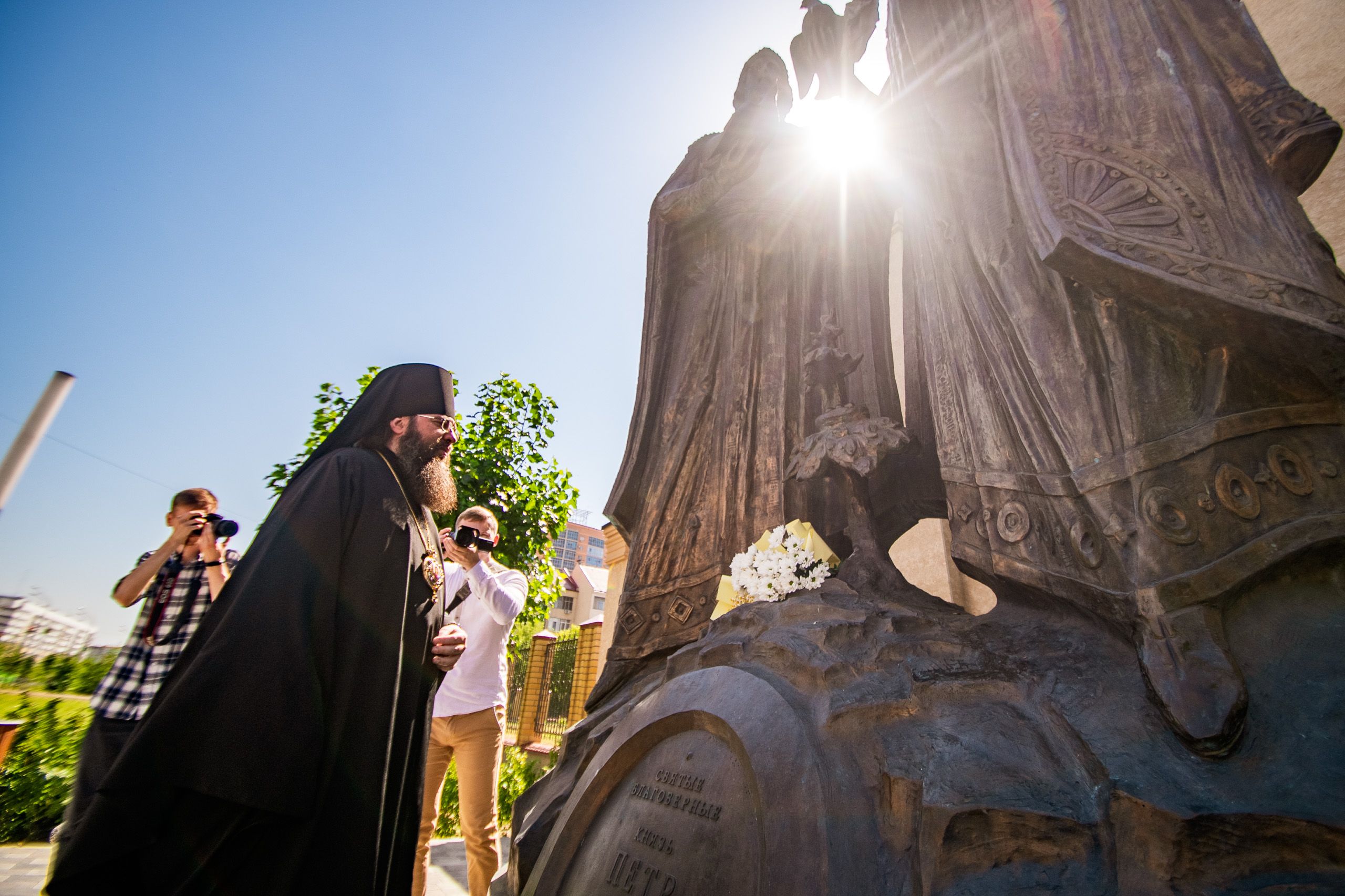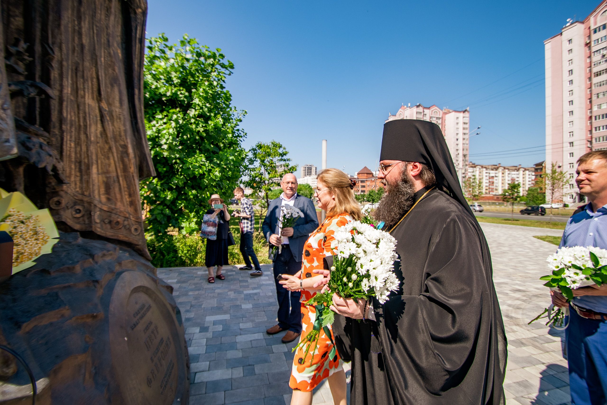 8 июля, в День семьи, любви и верности, в Казани состоялась церемония возложения цветов к памятнику благоверным князьям Петру и Февронии, Муромских чудотворцам, находящемуся около храма священномученика Кирилла Казанского.