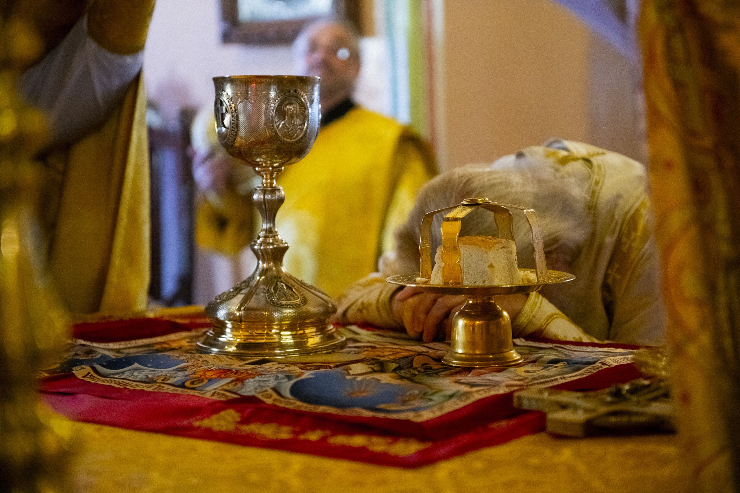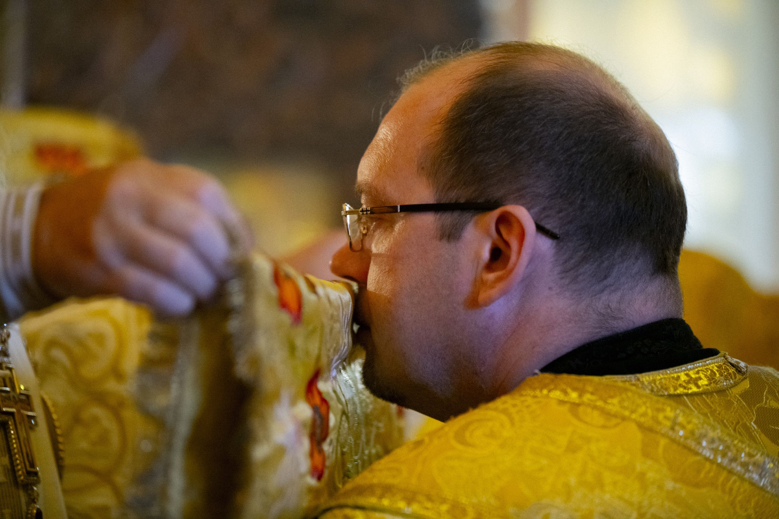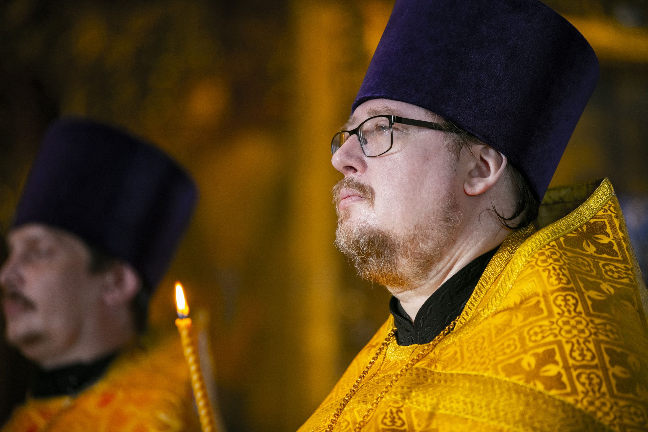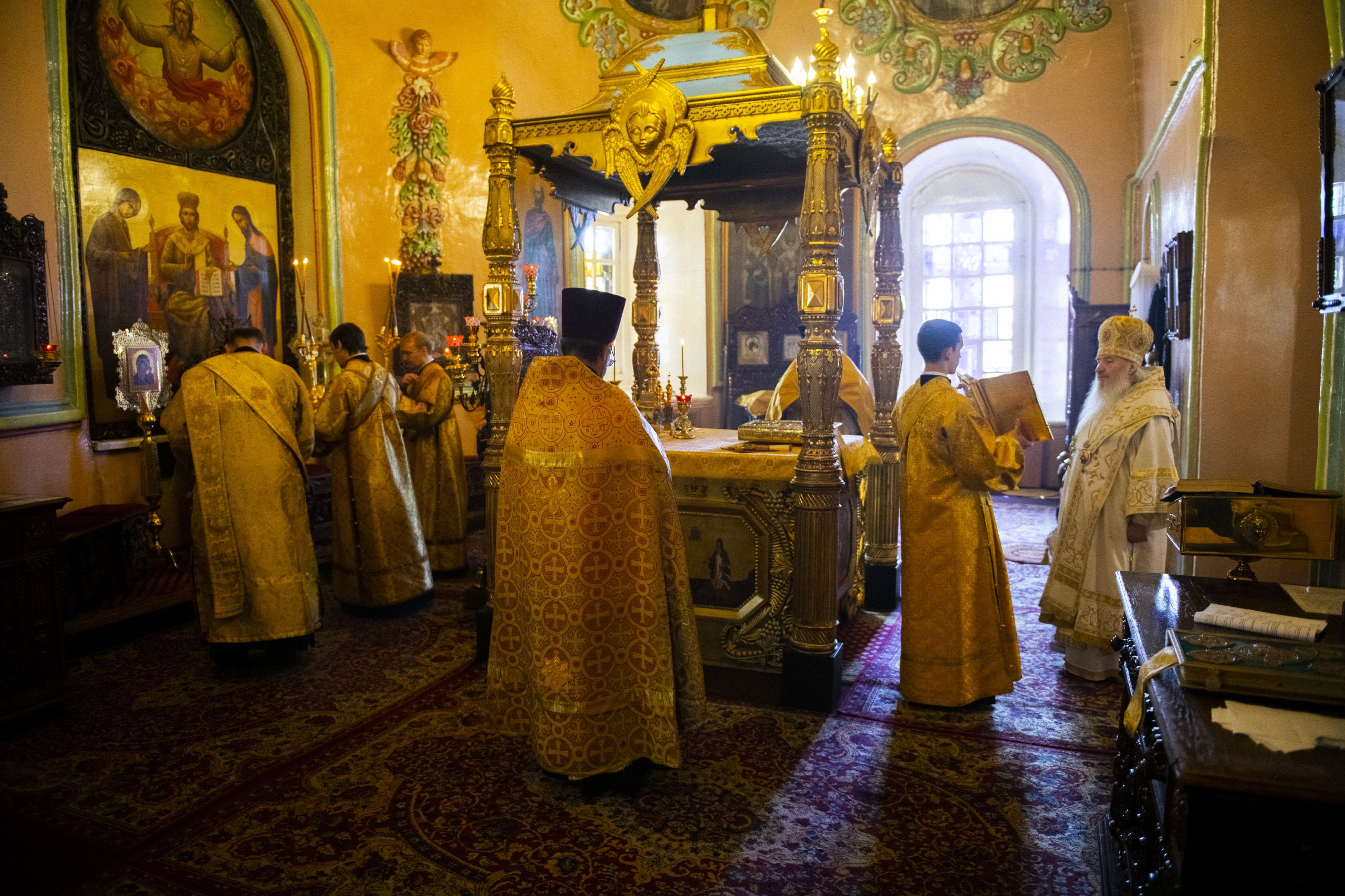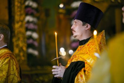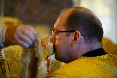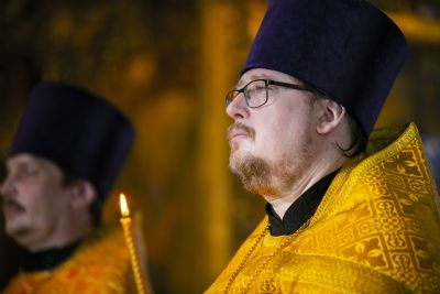 За Литургией главе Татарстанской митрополии сослужили настоятель протоиерей Сергий Титов и клирик собора протоиерей Олег Рассыпнинский.
