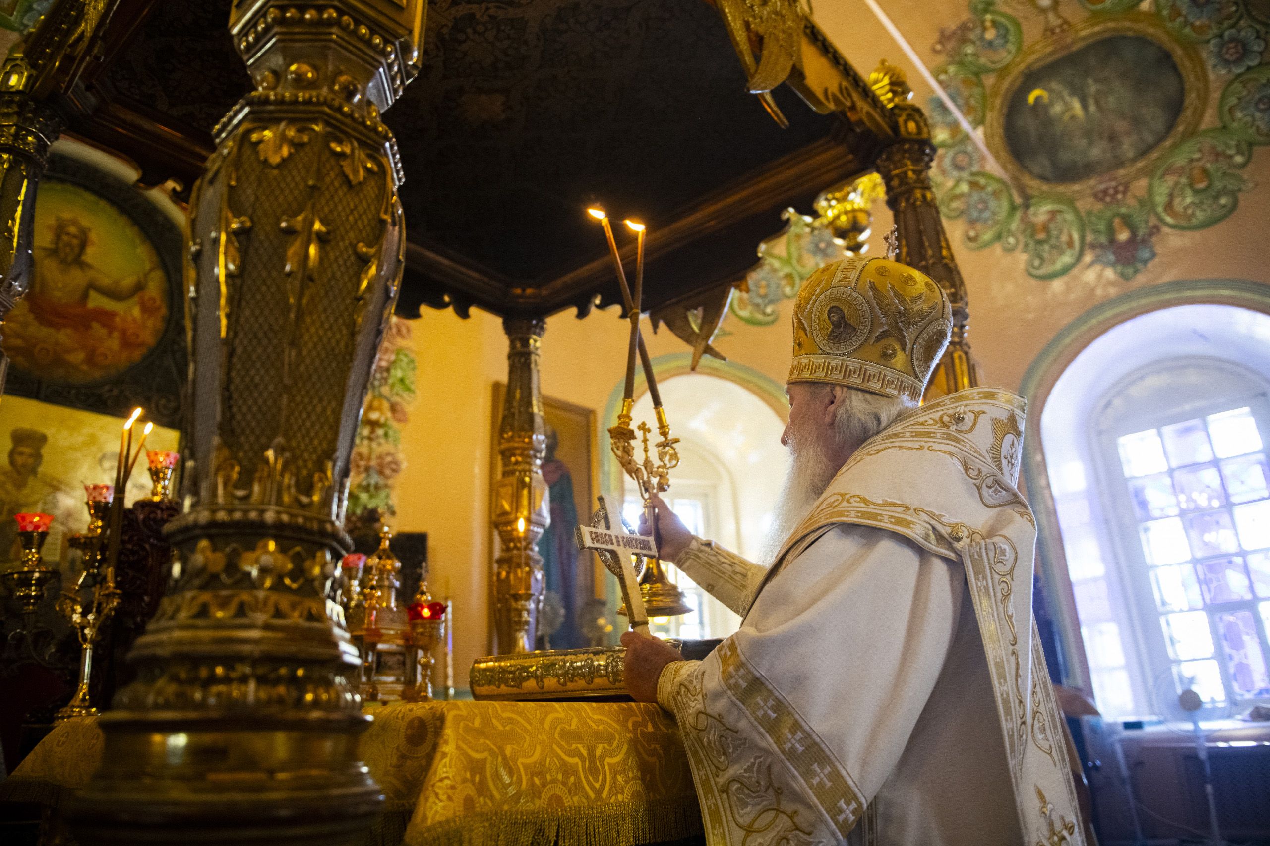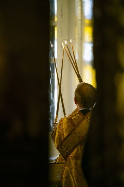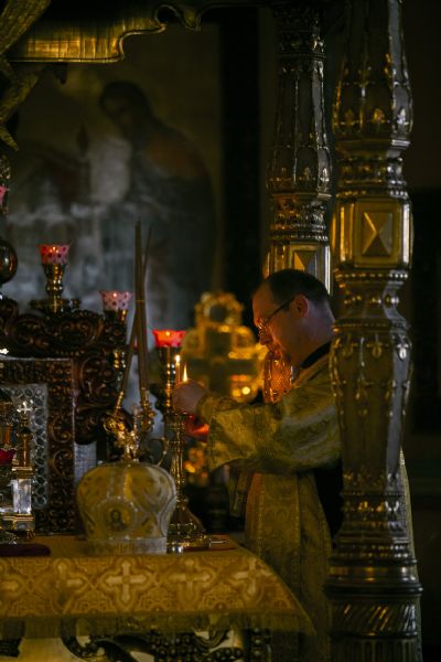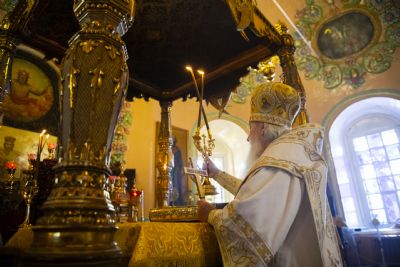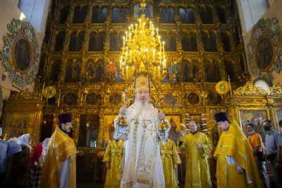 Накануне Высокопреосвященный владыка возглавил в соборе всенощное бдение.