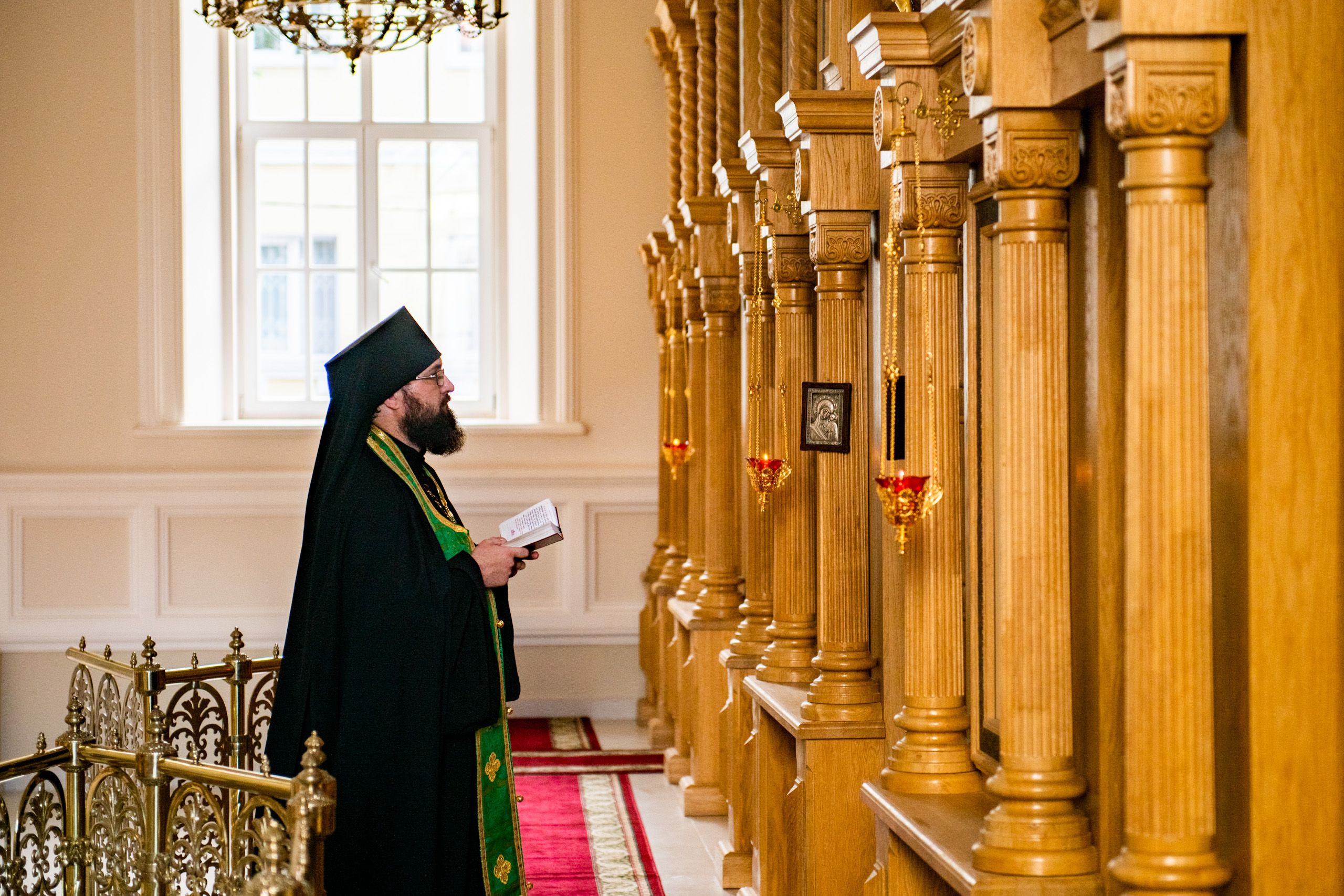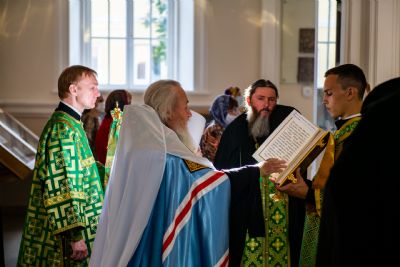 Главе Татарстанской митрополии сослужили наместник Казанско-Богородицкого мужского монастыря игумен Марк (Виленский) с братией обители.