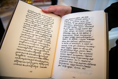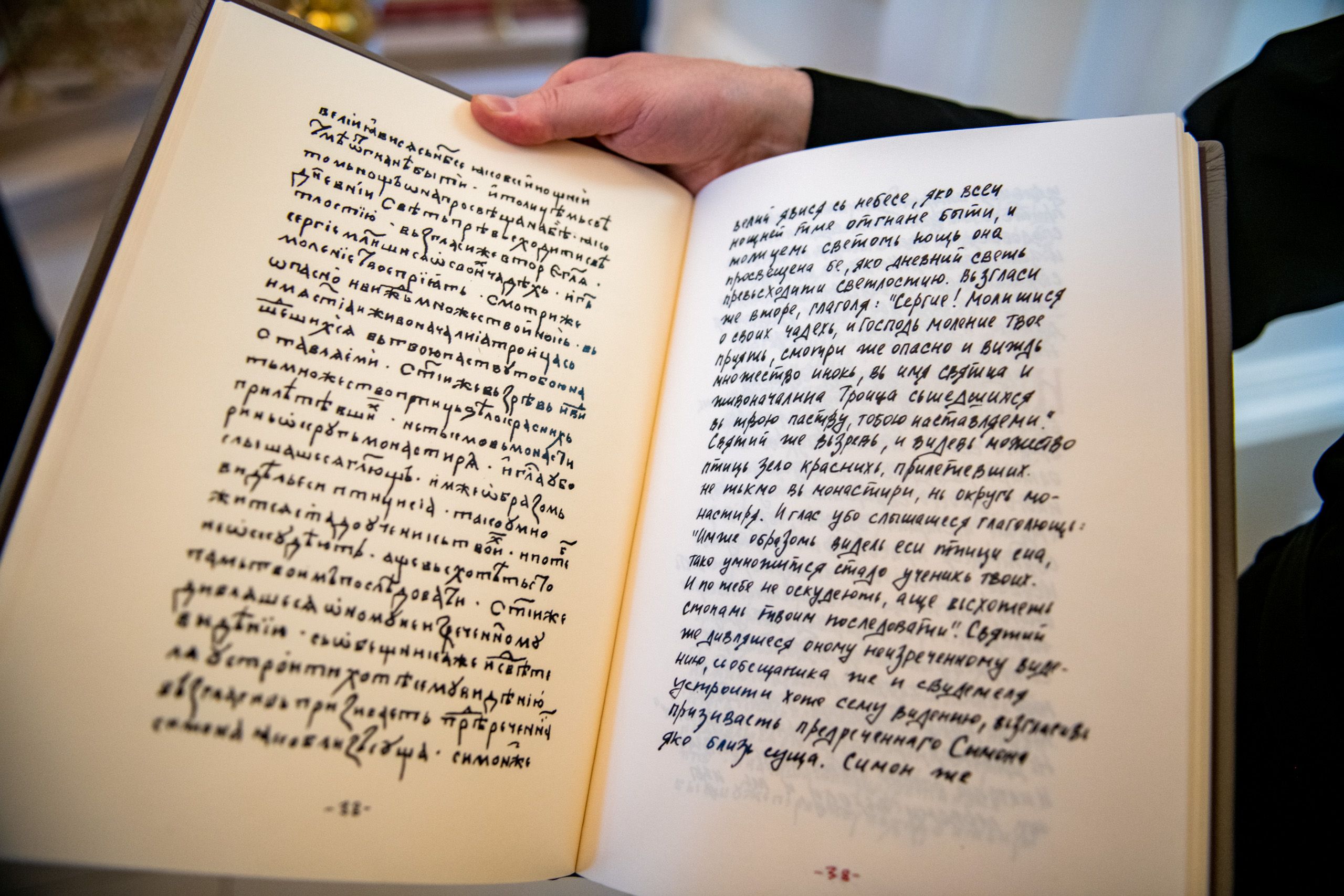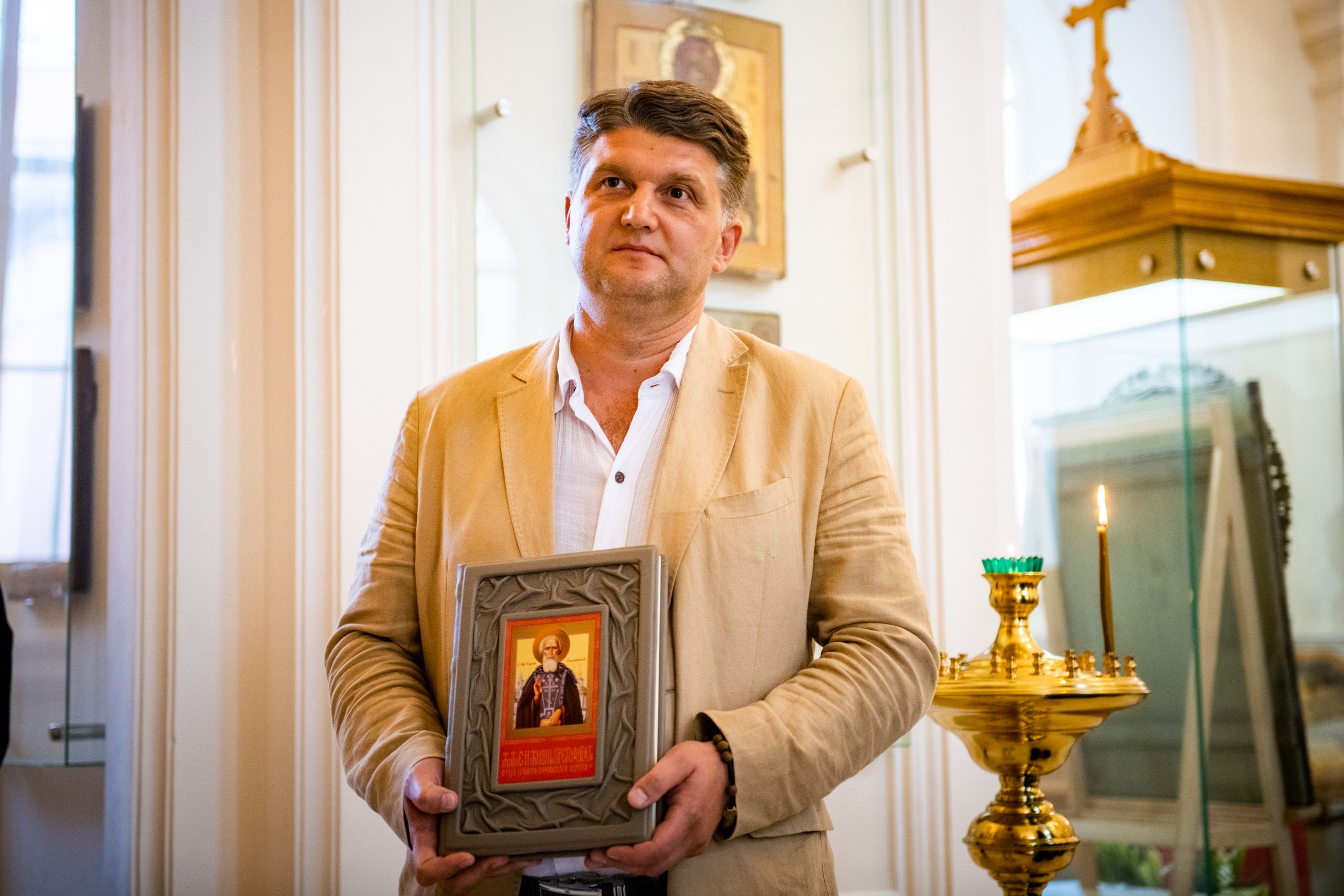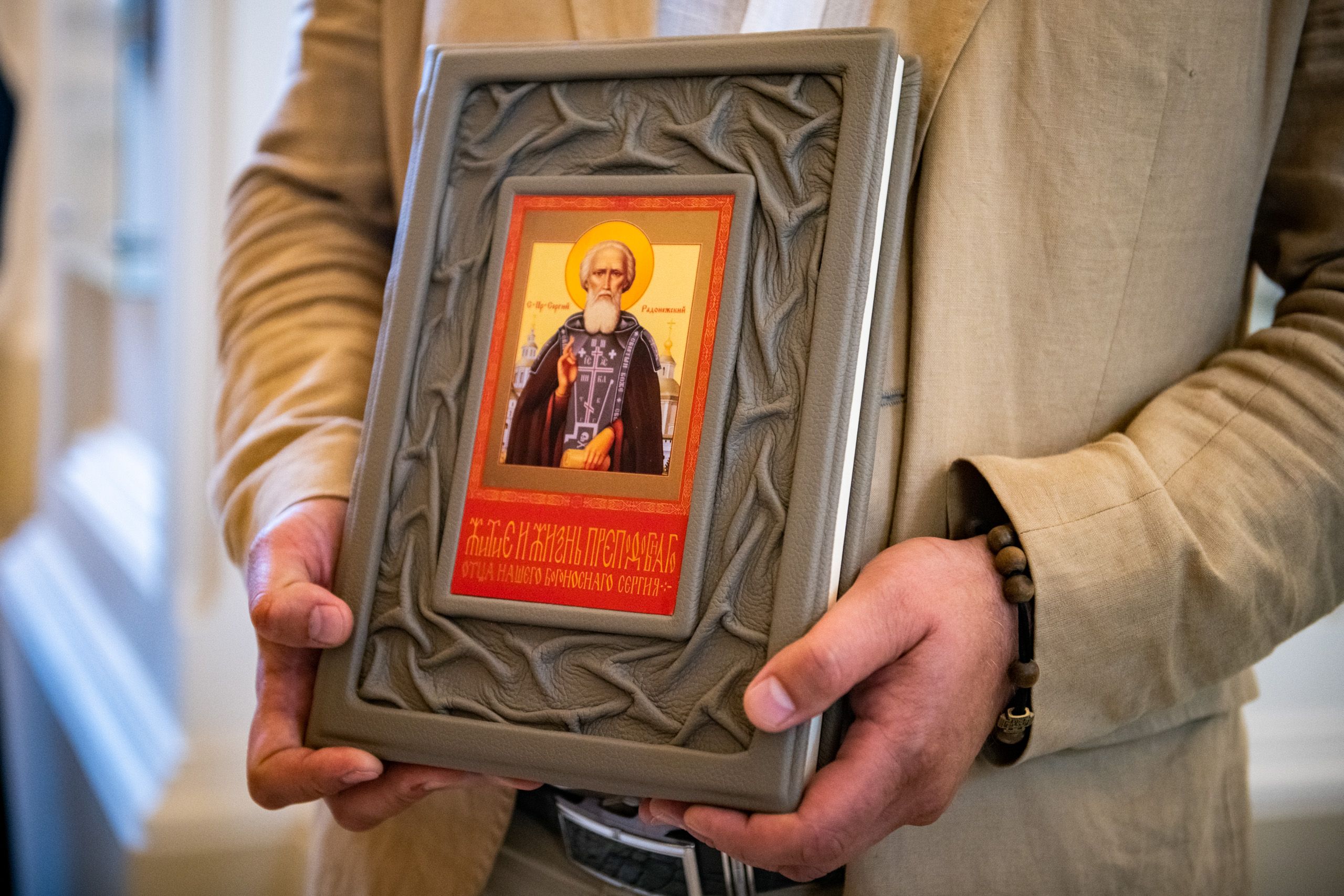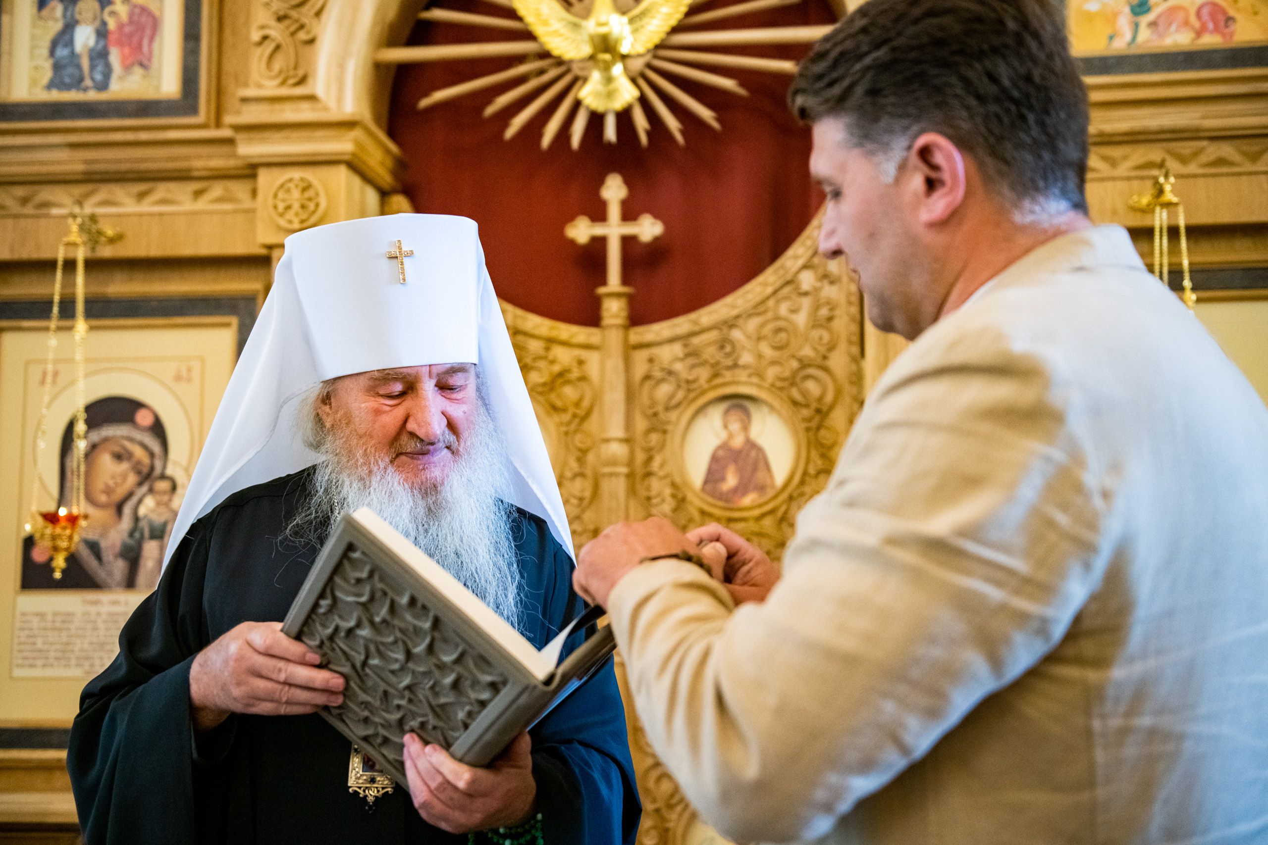 В ответном слове М.В. Андреев также поздравил главу Татарстанской митрополии с праздником. Он преподнёс Его Высокопреосвященству книгу составителя жития преподобного Сергия иеромонаха Пахомия Логофета, переписанную своими руками с подлинника 1441 года. Оригинал книги хранится в Сергиевском храме Казани.