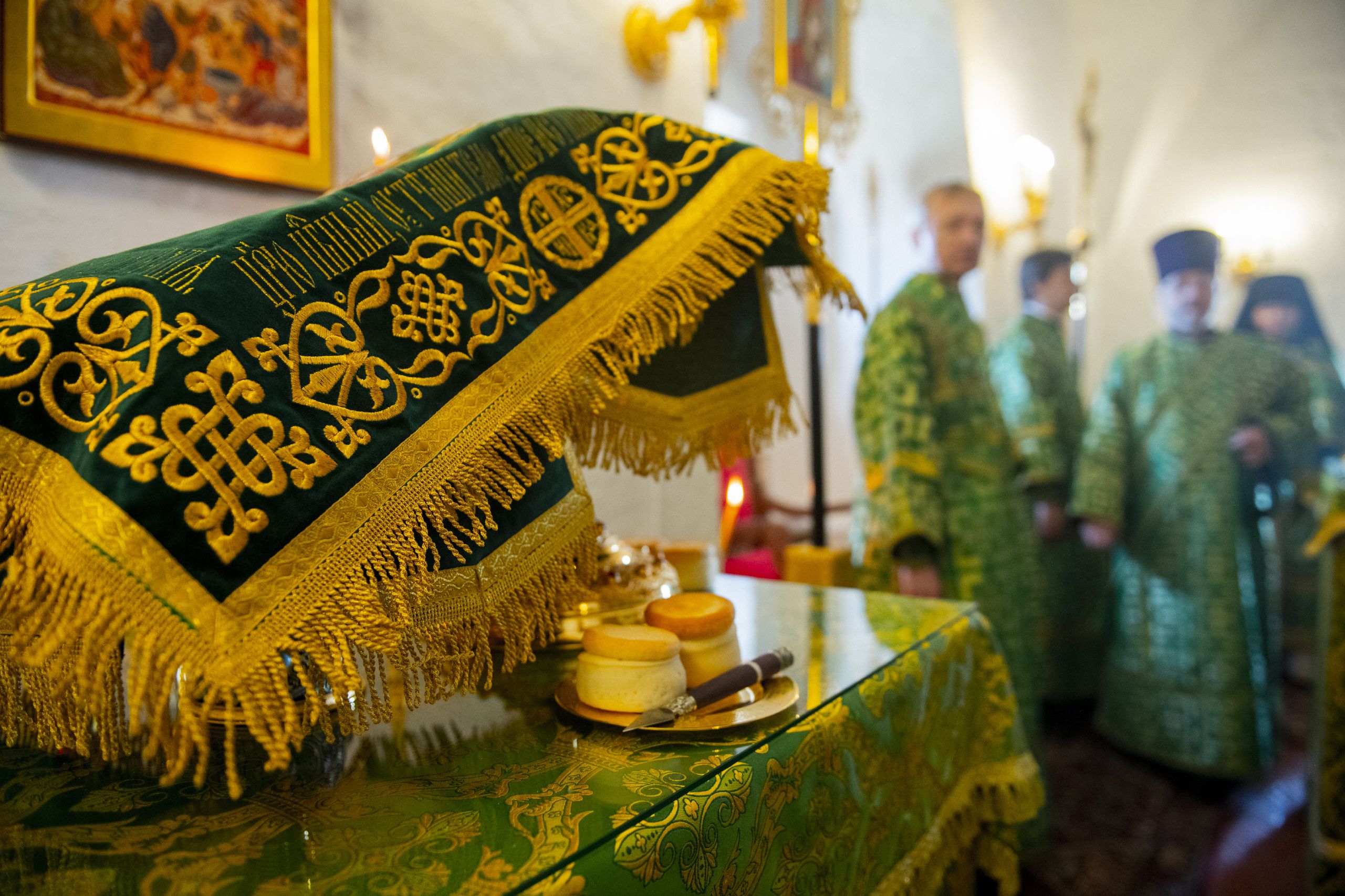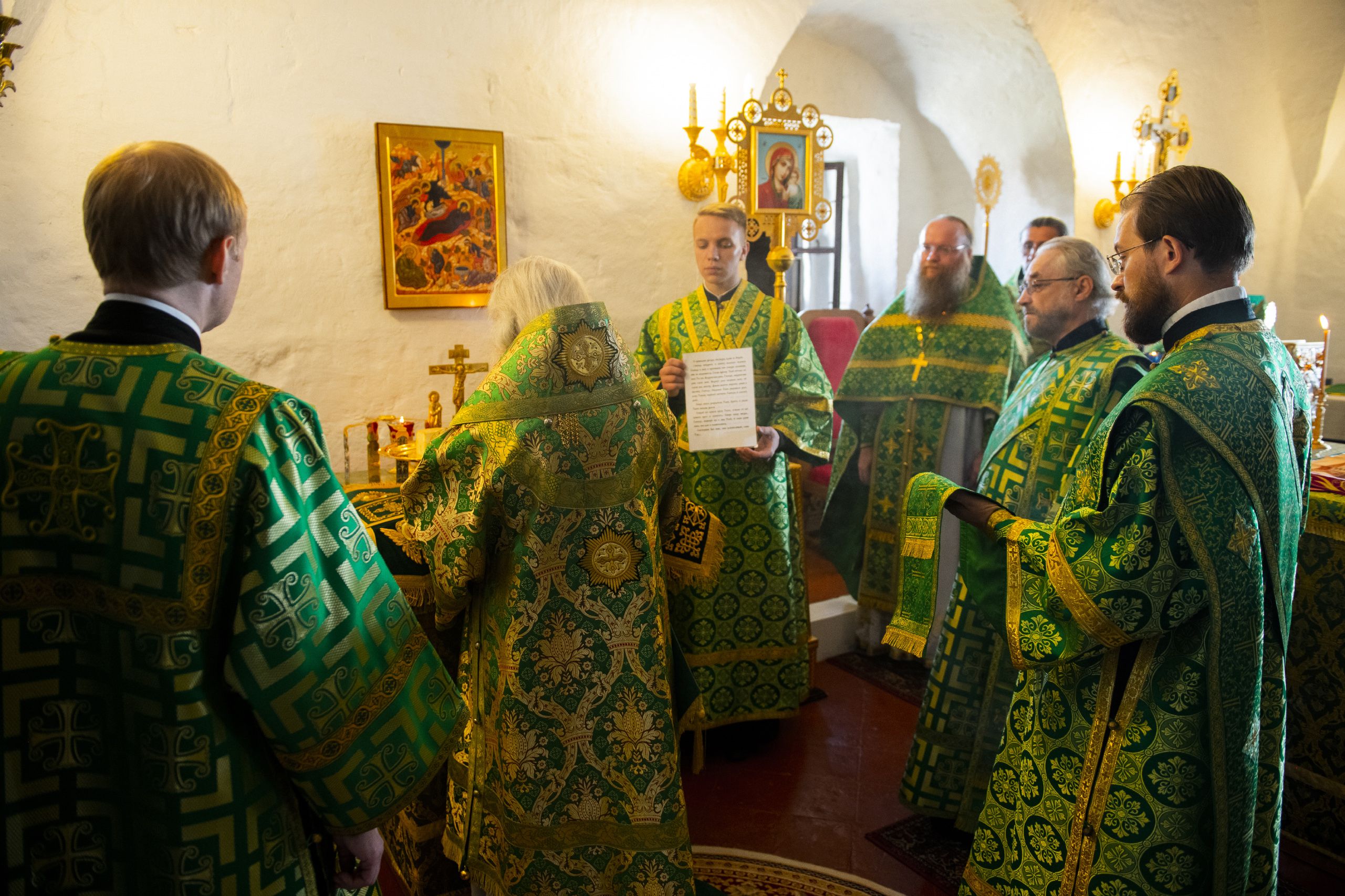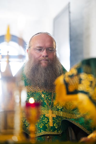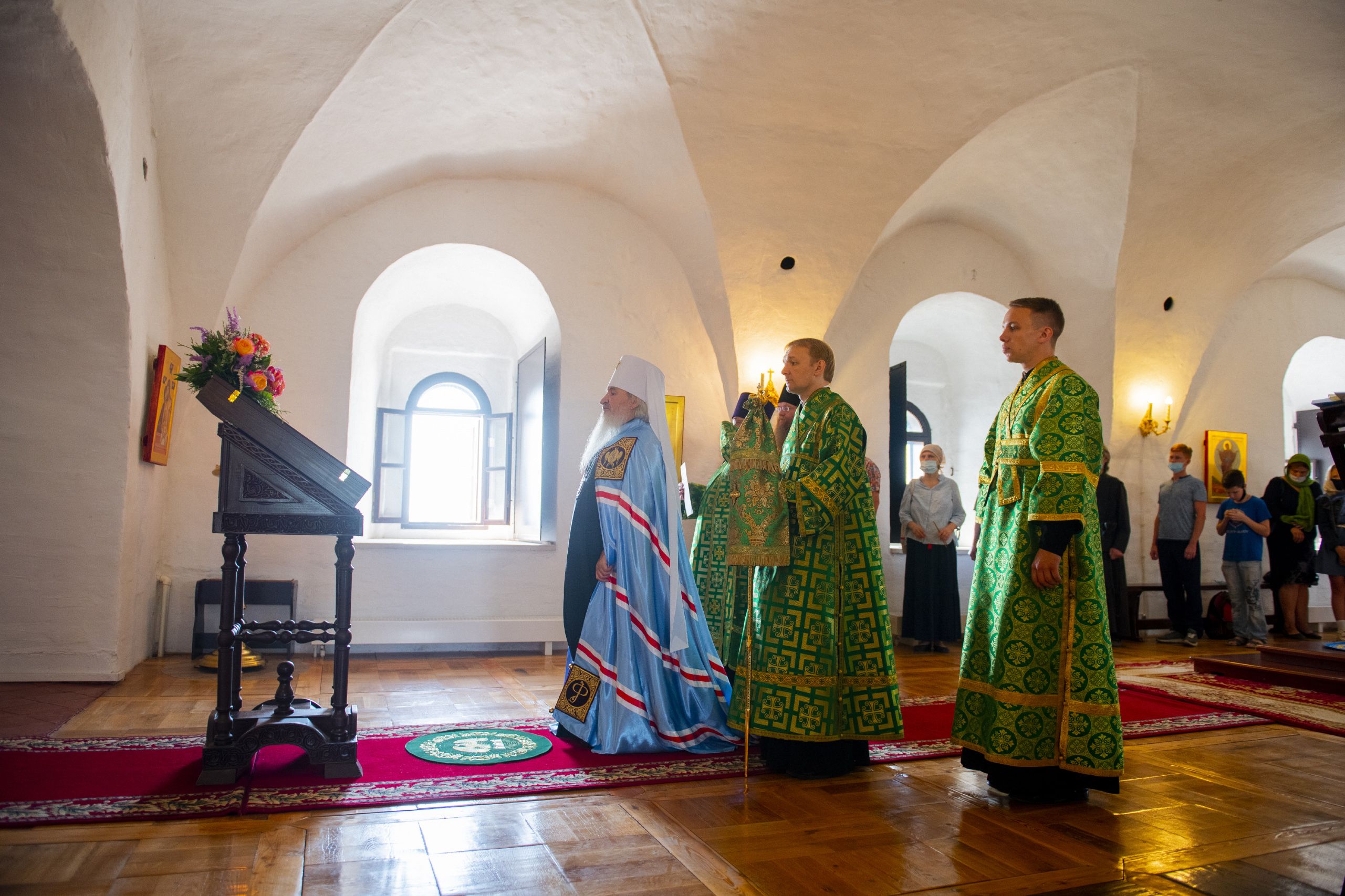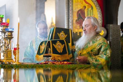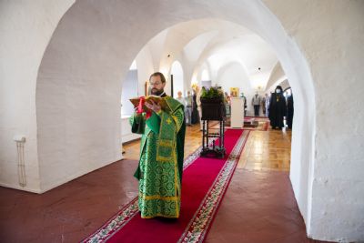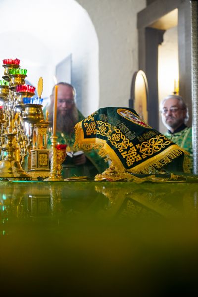Богослужебные песнопения исполнялись архиерейским хором под управлением Дениса Рогова.
