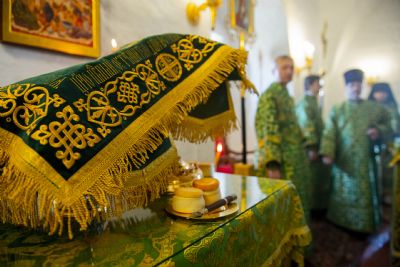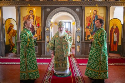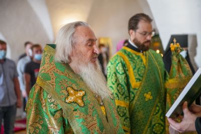 За Литургией главе Татарстанской митрополии сослужили наместник игумен Симеон (Кулагин) с братией обители в священном сане и настоятель свияжского храма в честь равноапостольных Константина и Елены иерей Сергий Коробцов.