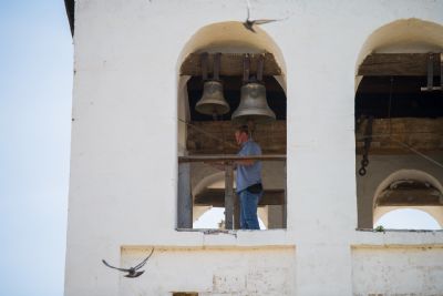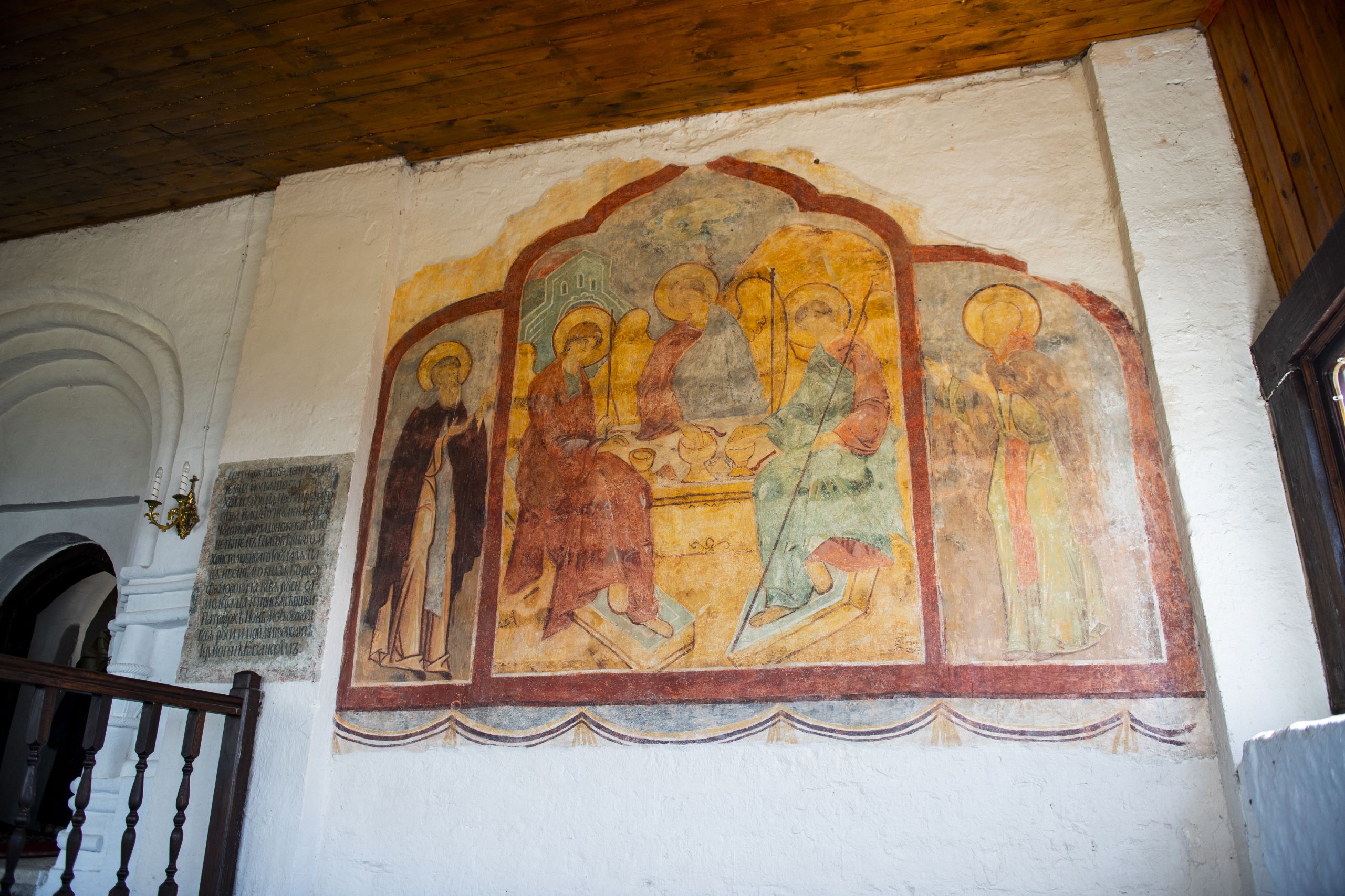 Вчера и сегодня я вспоминал видение преподобным Сергием множества птиц. Голос сказал преподобному, что как эти птицы небесные во множестве, так и иноки из обители Святой Троицы разлетятся по всей России и далеко за её пределы. Сегодня я вошёл в этот древний храм и увидел фреску XVII века — надпись об основании этого храма. Представьте себе далёкий XVII век и этот храм в честь преподобного Сергия. Где? По тем временам — вдали, на Казанской земле, только становившейся частью Российского государства.