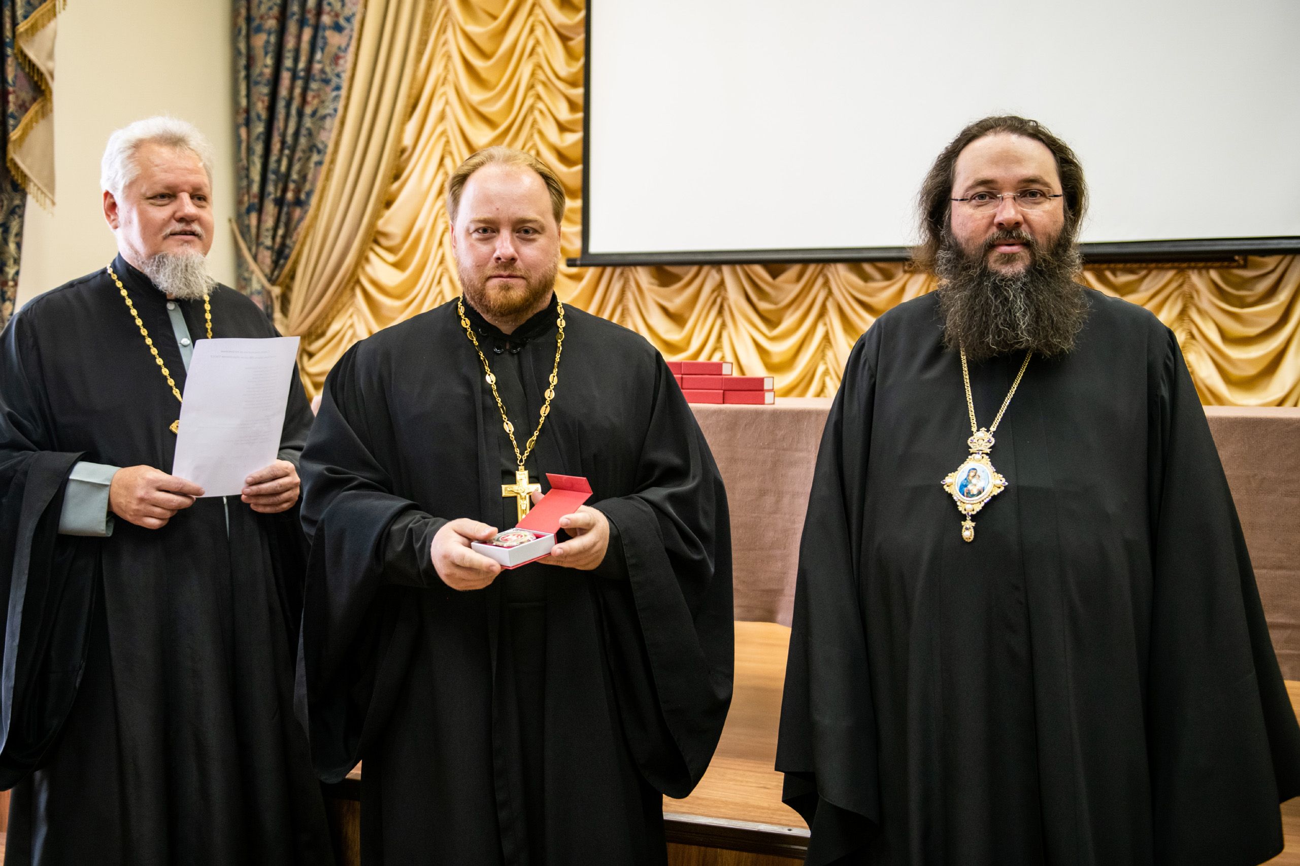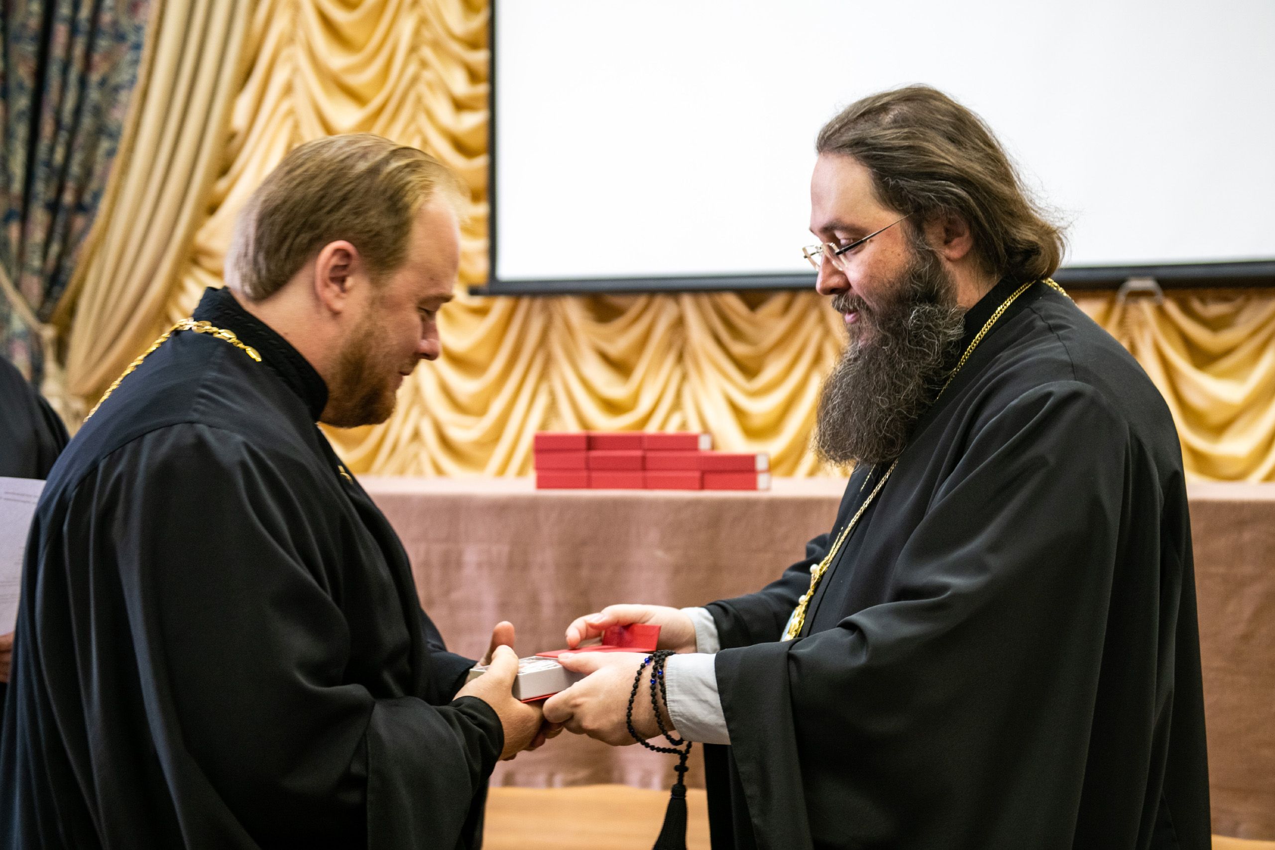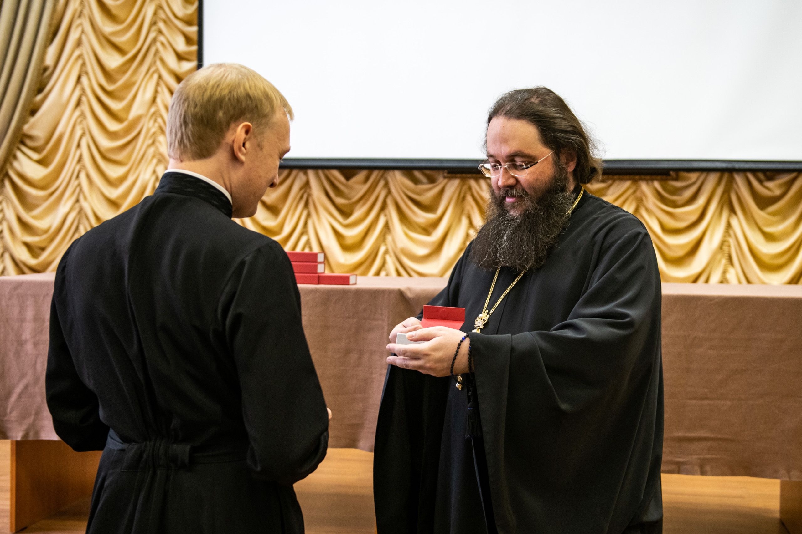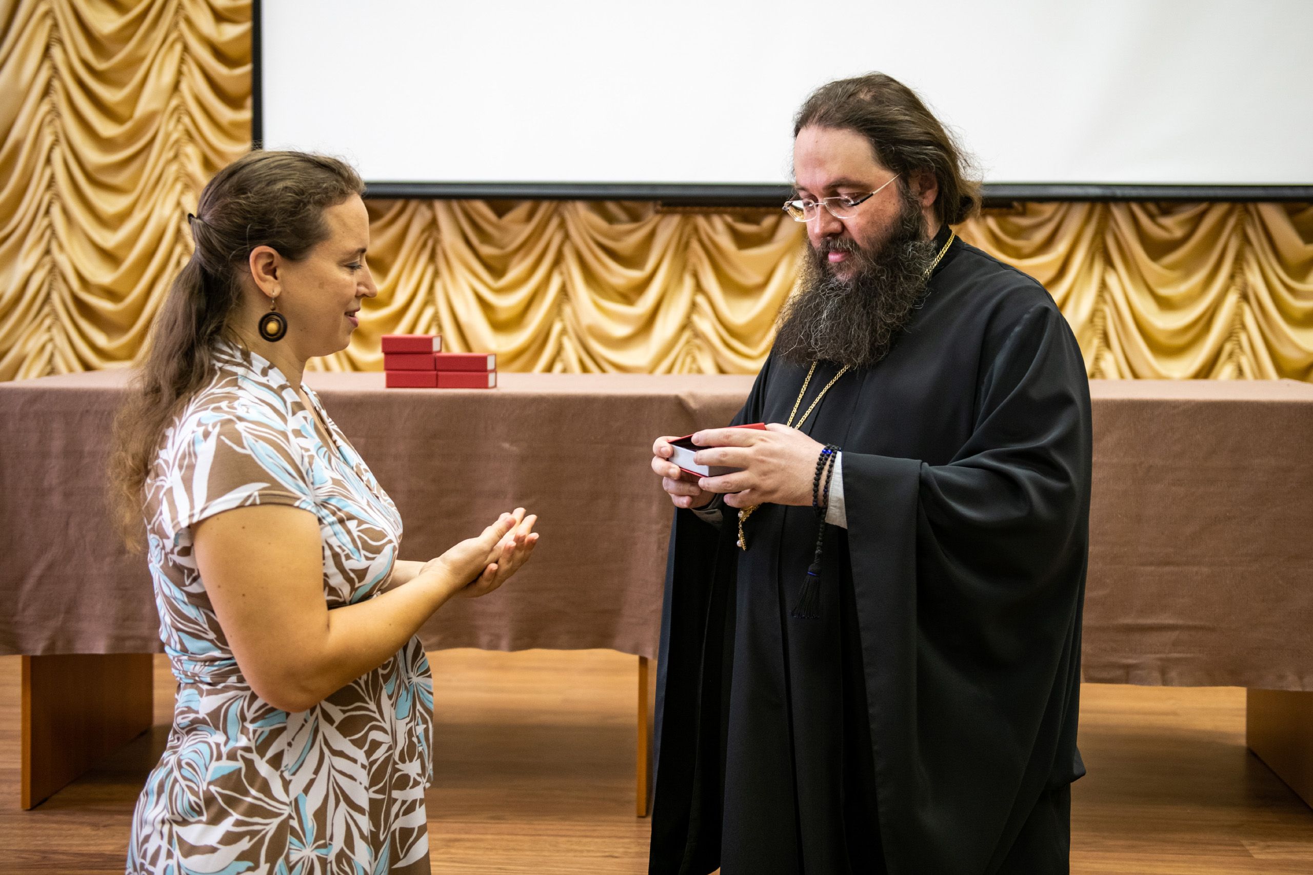 По благословению митрополита Казанского и Татарстанского Феофана знаки вручил епископ Елабужский Иннокентий.
