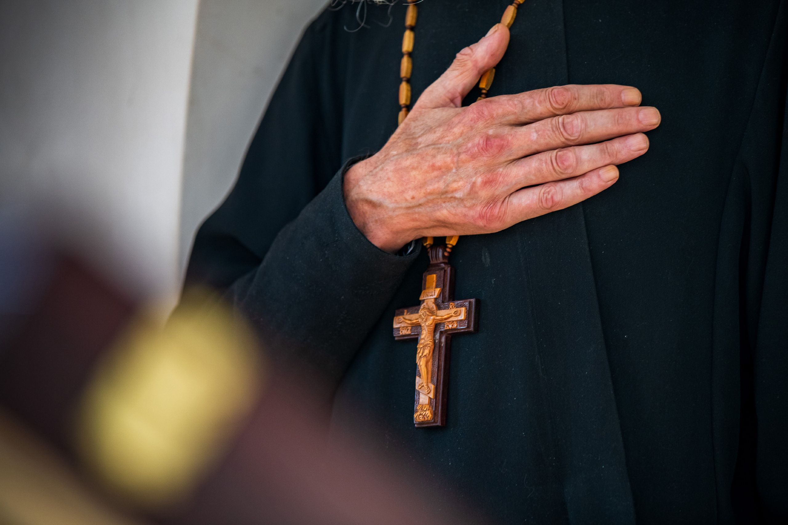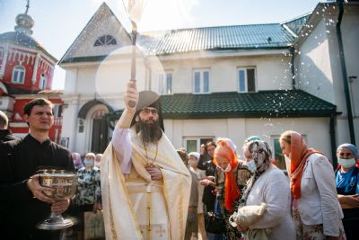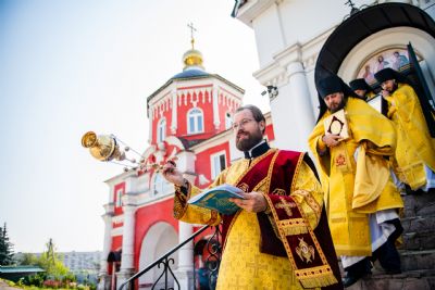 После Литургии священнослужители и миряне прошли крестным ходом до монастырской площади, где состоялся праздничный молебен великому князю Владимиру.