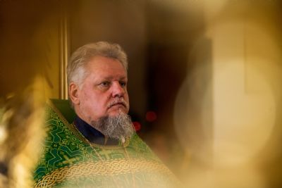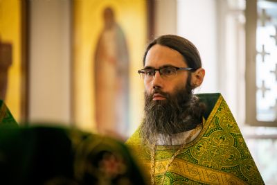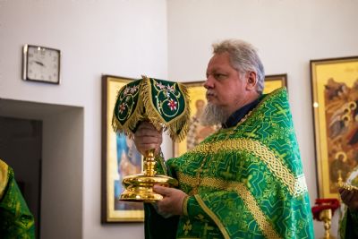 После запричастного стиха клирик храма протоиерей Сергий Шкуро произнёс проповедь.