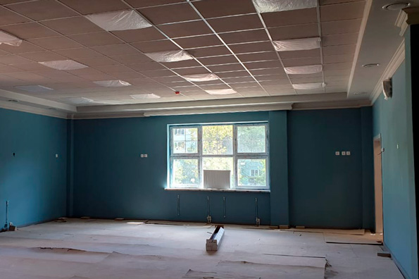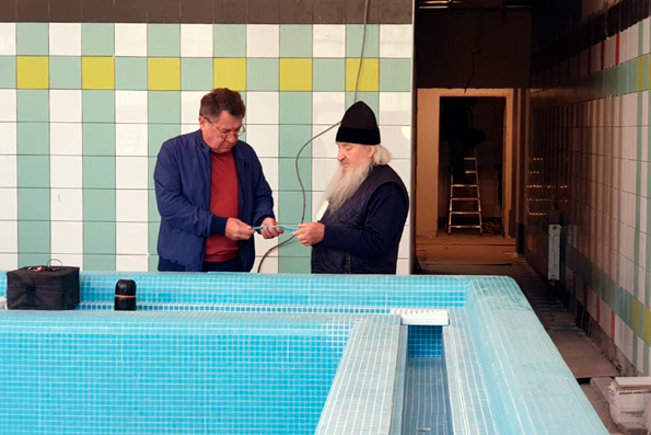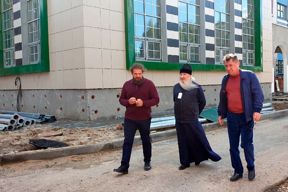 Митрополит Феофан в сопровождении директора компании-подрядчика Рустема Лихачёва и директора Свято-Гурьевской гимназии протоиерея Алексия Чубакова осмотрел помещения возводимого здания, познакомился с его конструктивными особенностями и системой контроля качества — к настоящему времени завершено порядка 90% строительных работ. Полным ходом идёт отделка внутренних помещений на всех этажах и в подвале здания. Ведётся облицовка мозаикой и керамической плиткой плавательного бассейна и примыкающих к нему помещений. Завершена укладка брусчатки вокруг входных групп и нижнего слоя асфальта на прилегающей территории.
