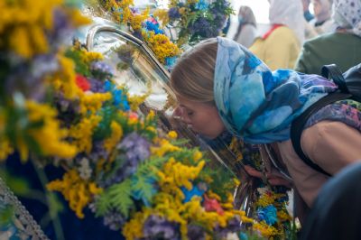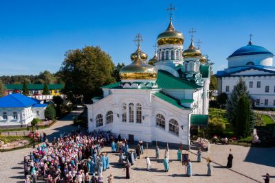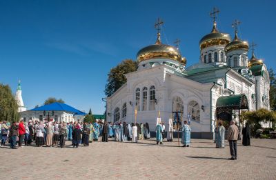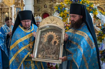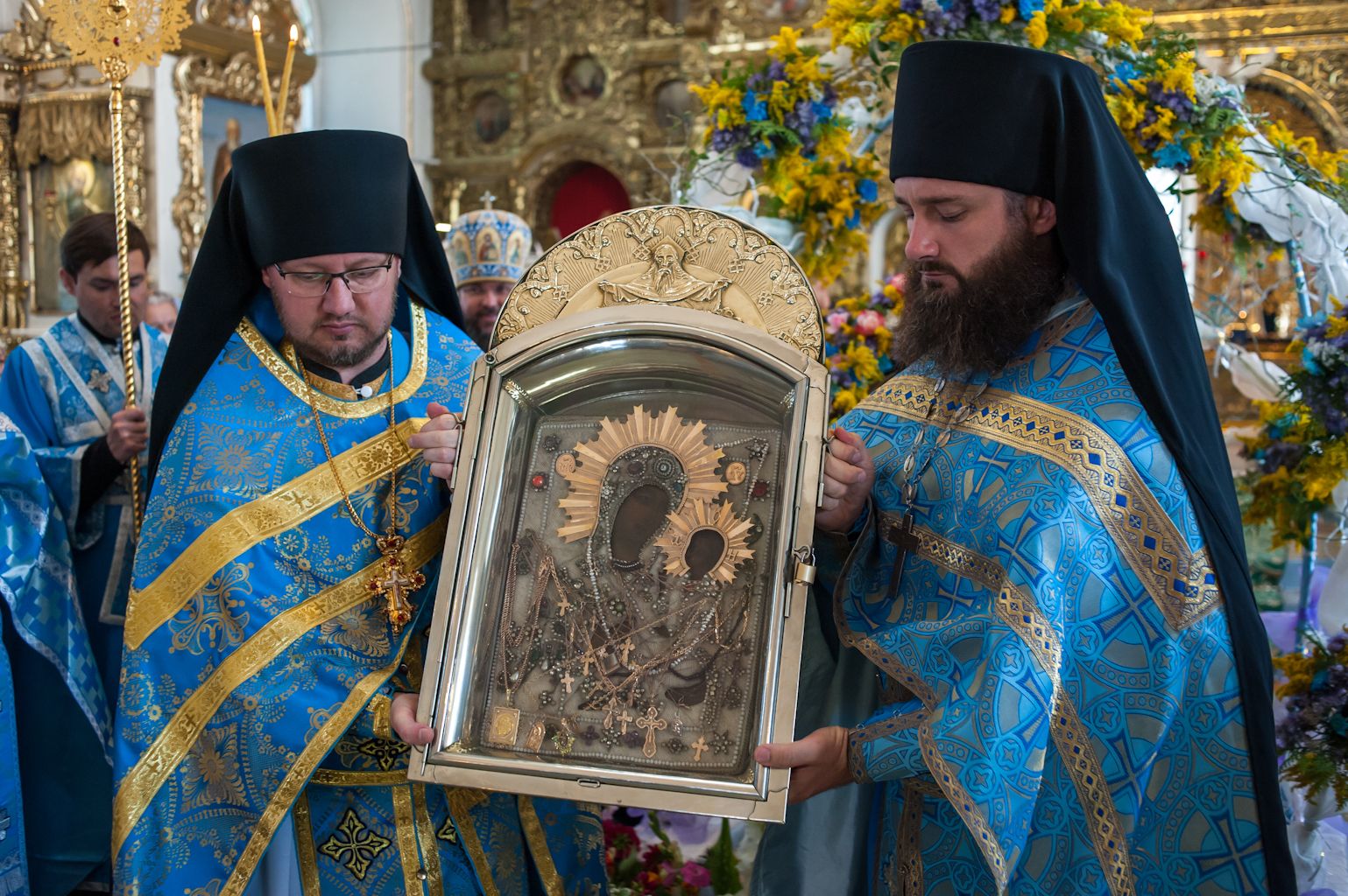 После Литургии состоялись праздничный молебен и крестный ход по территории монастыря с почитаемым образом Божией Матери. Молитвенное шествие завершилось славлением Царице Небесной — духовенство на середине храма пропело тропарь, кондак и величание Богородице.