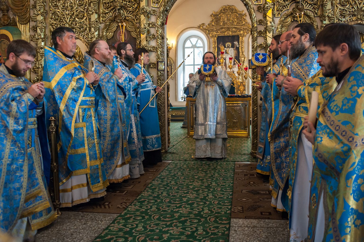 По благословению митрополита Казанского и Татарстанского Феофана Божественную литургию в обители в этот день возглавил епископ Елабужский Иннокентий. Викарию Казанской епархии сослужили наместник игумен Гавриил (Рожнов), настоятель Введенского Кизического мужского монастыря города Казани игумен Пимен (Ивентьев), проректор Казанской духовной семинарии иеромонах Кирилл (Забавнов), настоятель храма святителя Николая Чудотворца поселка Красная Горка иерей Валерий Карпухин, настоятель храма Введения во храм Пресвятой Богородицы села Введенская Слобода иерей Евгений Марданов, братия обители в священном сане.