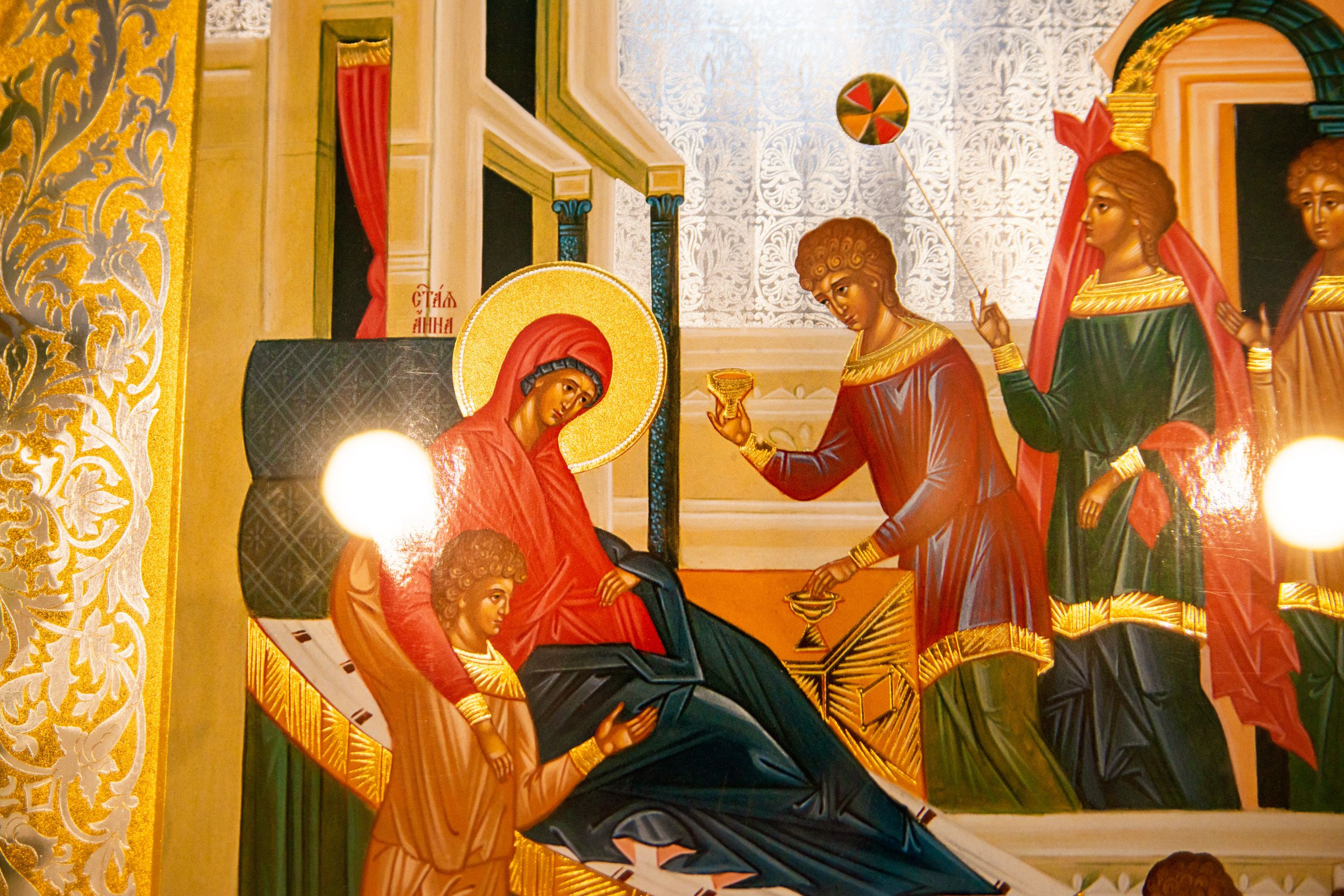 Однажды эта чета в печали увидела такую картину: весна, гнездятся птицы, вьют гнезда, готовятся выводить птенцов. И как бы из глубины их сердца раздался вопль: «Господи, ну что же мы сделали? Почему мы презренны Тобой? Вот они, бессловесные птицы, и Ты даёшь им птенцов. А как же мы?» Проходит время, и вдруг Анна, заматоревшая во днех мнозех, по физиологическим свойствам уже не могущая зачать и стать матерью, вдруг не верит самой себе — как женщина, она чувствует радость материнства. Долго таилась она, но всё же созналась, что ожидает чадо. Радость неимоверная. И когда настало время родить, на свет появилась Та, Которая станет Заступницей усердной рода христианского, Матерью Господа Вышнего.