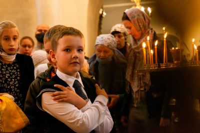 Богослужебные песнопения исполнил мужской хор под управлением Сергея Ливендеева.