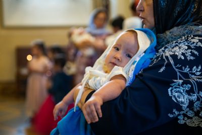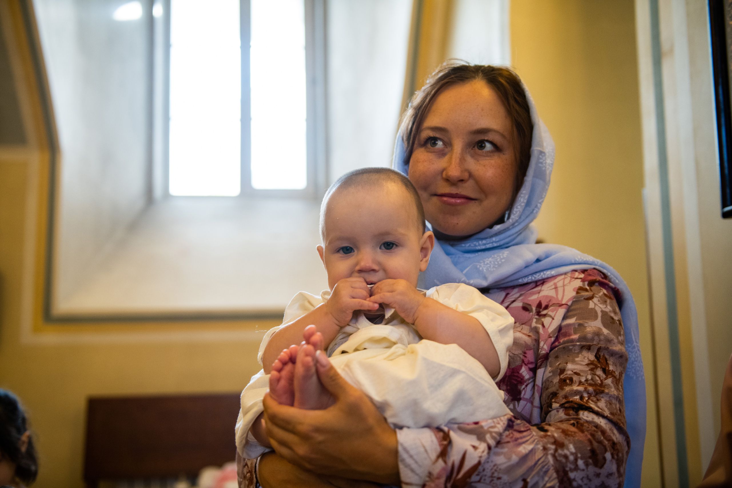 Мелания вместе с другими сотрудниками, добровольцами и подопечными приюта «Колыбель» молилась в храме во время совершения Таинства Крещения. Крестные родители малышам также были выбраны из числа работников, помощников и мам, проживающих в «Колыбели».