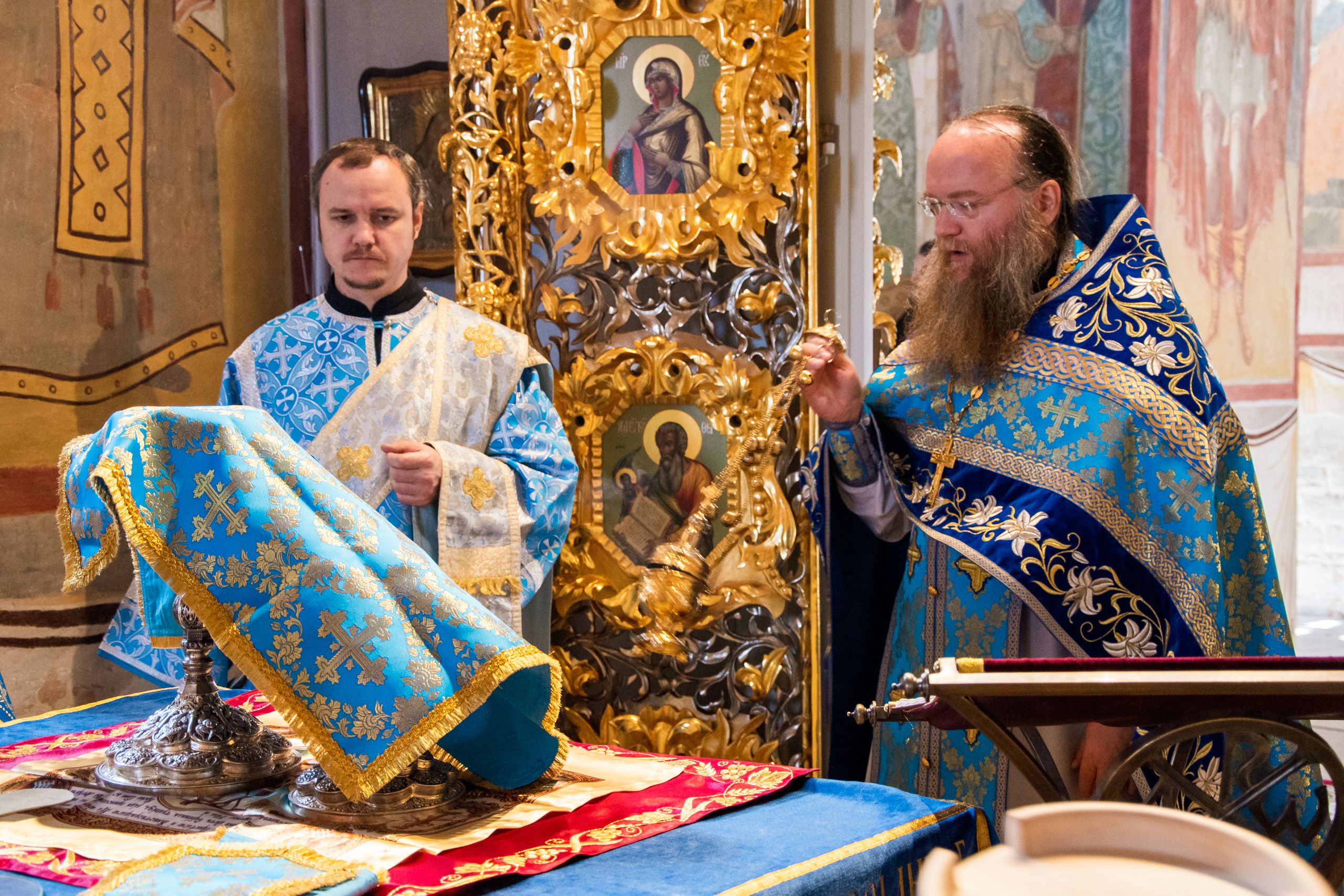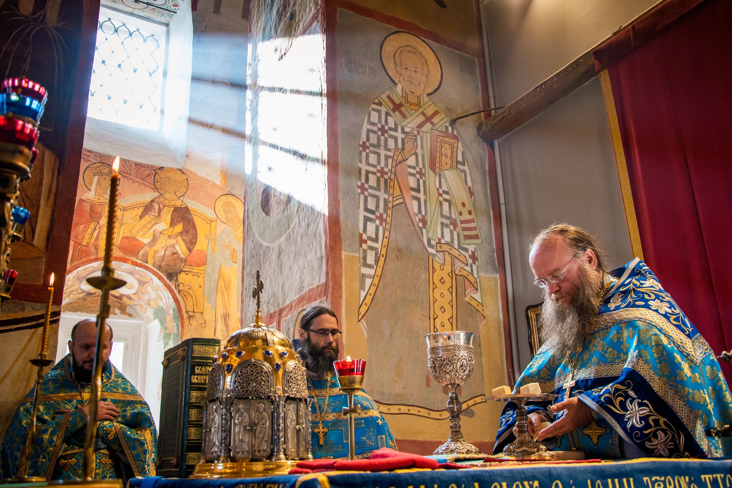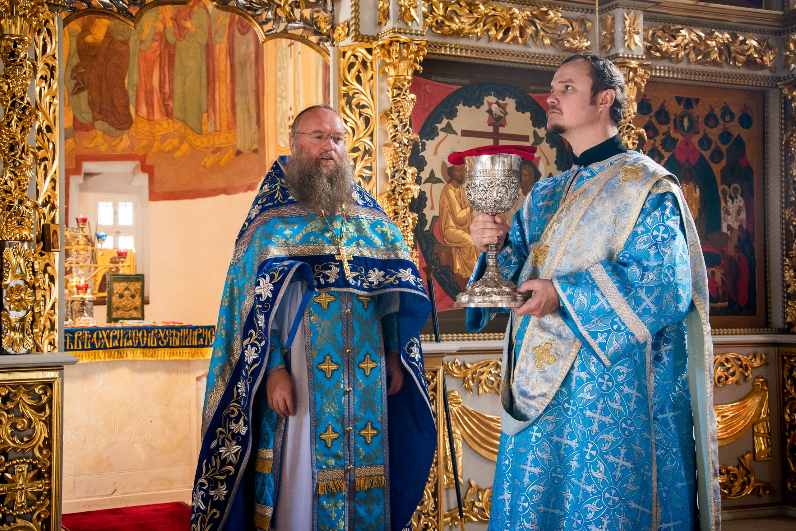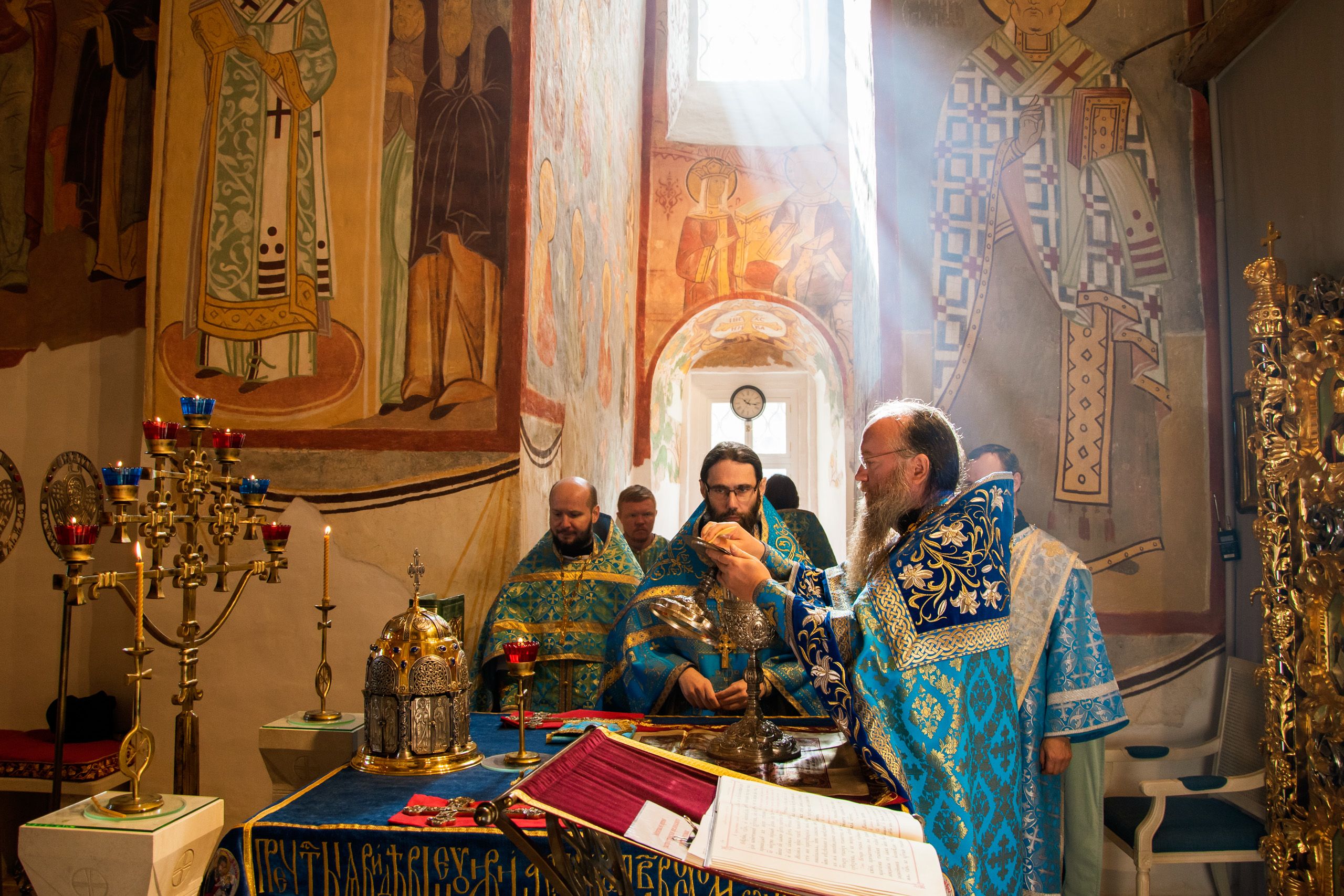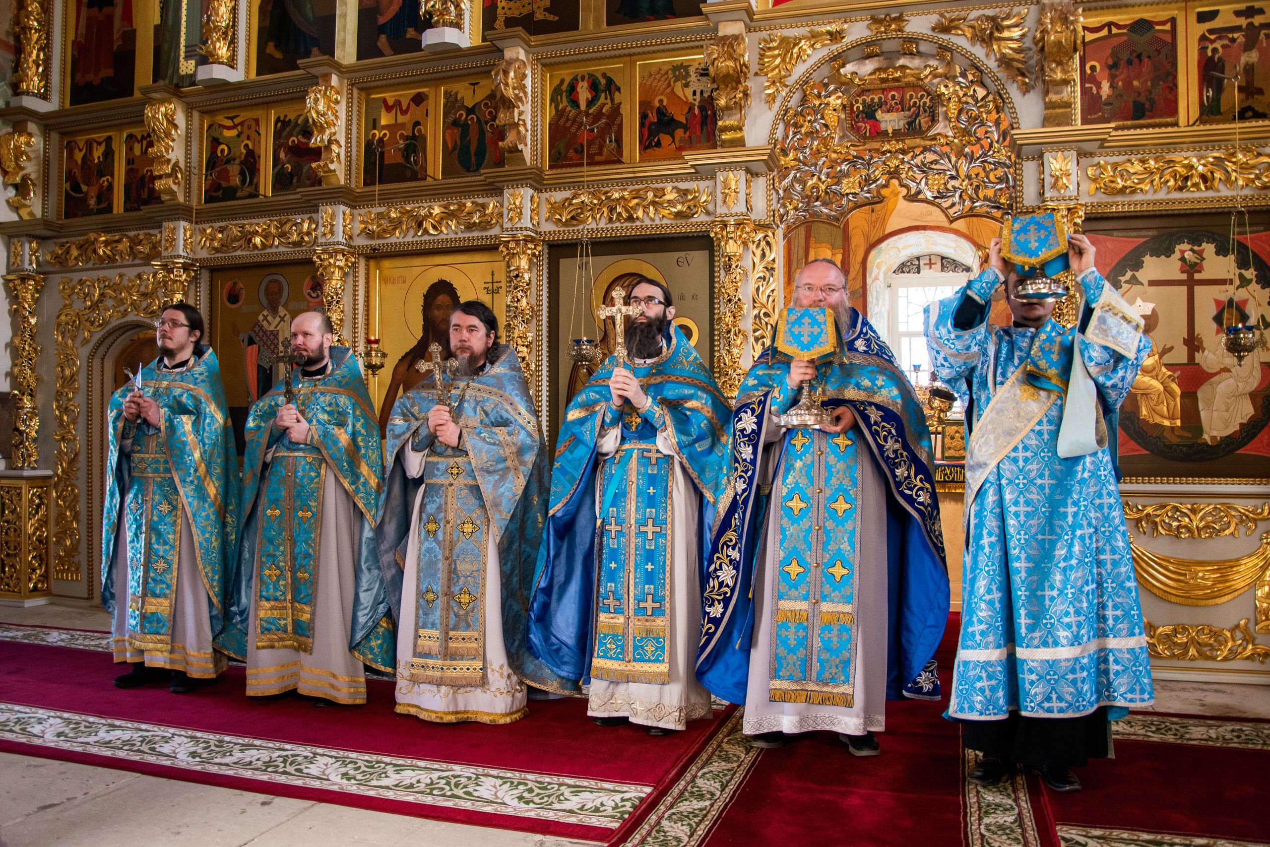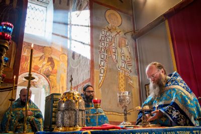 Божественную литургию возглавил наместник Свияжского Успенского монастыря игумен Симеон (Кулагин) в сослужении настоятеля Введенского Кизического мужского монастыря игумена Пимена (Ивентьева), настоятеля Иоанно-Предтеченского мужского монастыря иеромонаха Гурия (Ананьева) и братии Свияжской обители.