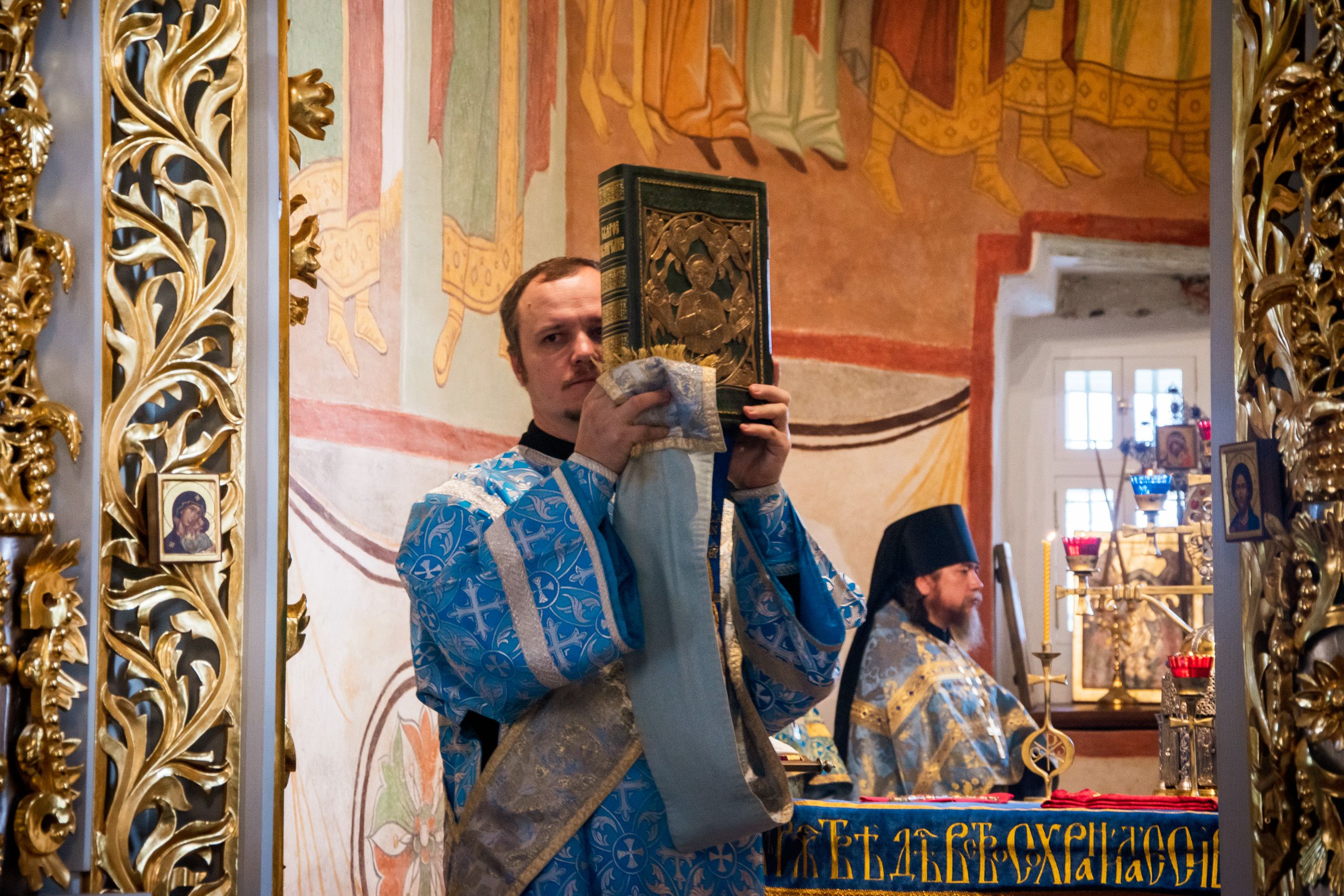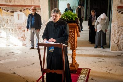 Богослужебные песнопения исполнялись мужским монастырским хором под управлением Андрея Азбукина.