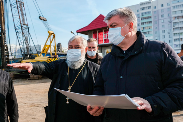Благочинный Закамского округа протоиерей Андрей Дубровин ознакомил главу города с ходом строительства гимназии.
