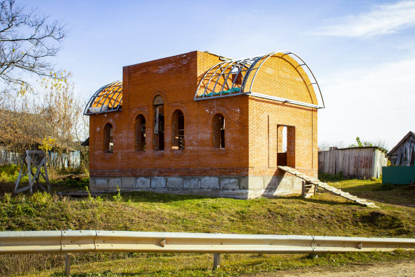 К настоящему времени возведены стены. В ближайшее время строители смонтируют кровлю и установят купол. После этого они займутся отделкой, смонтируют иконостас, установят престол и жертвенник.