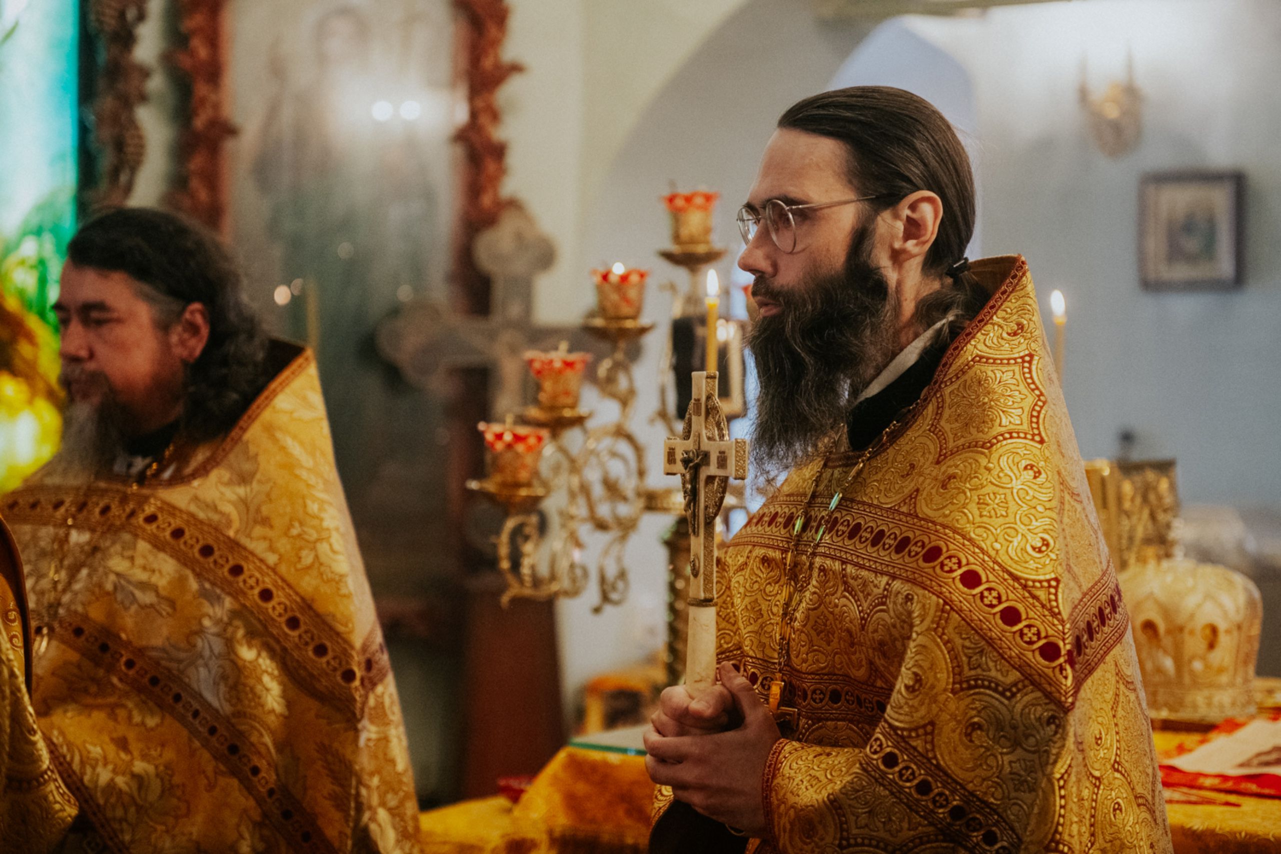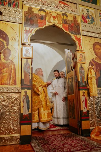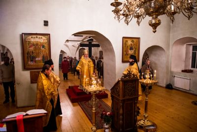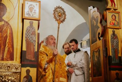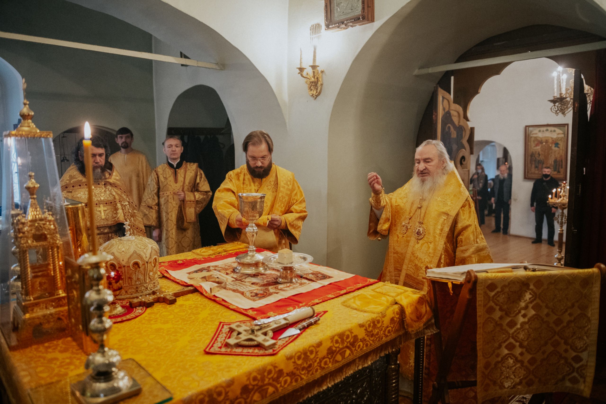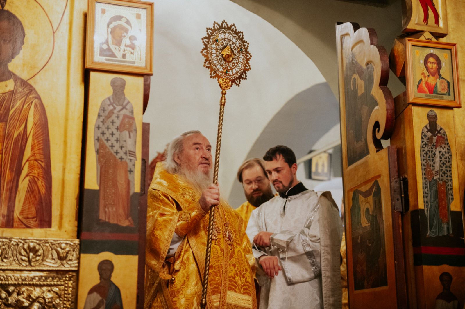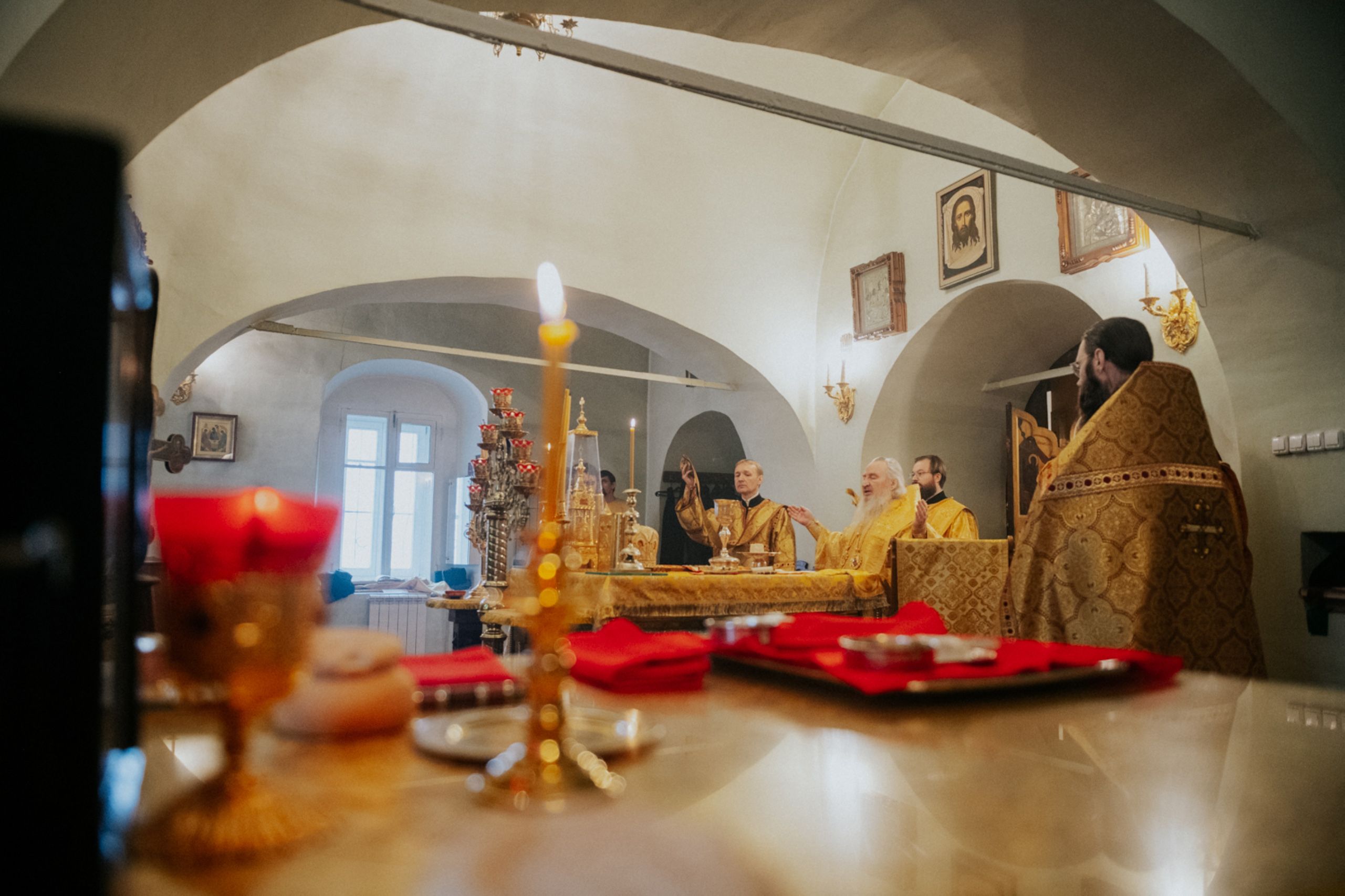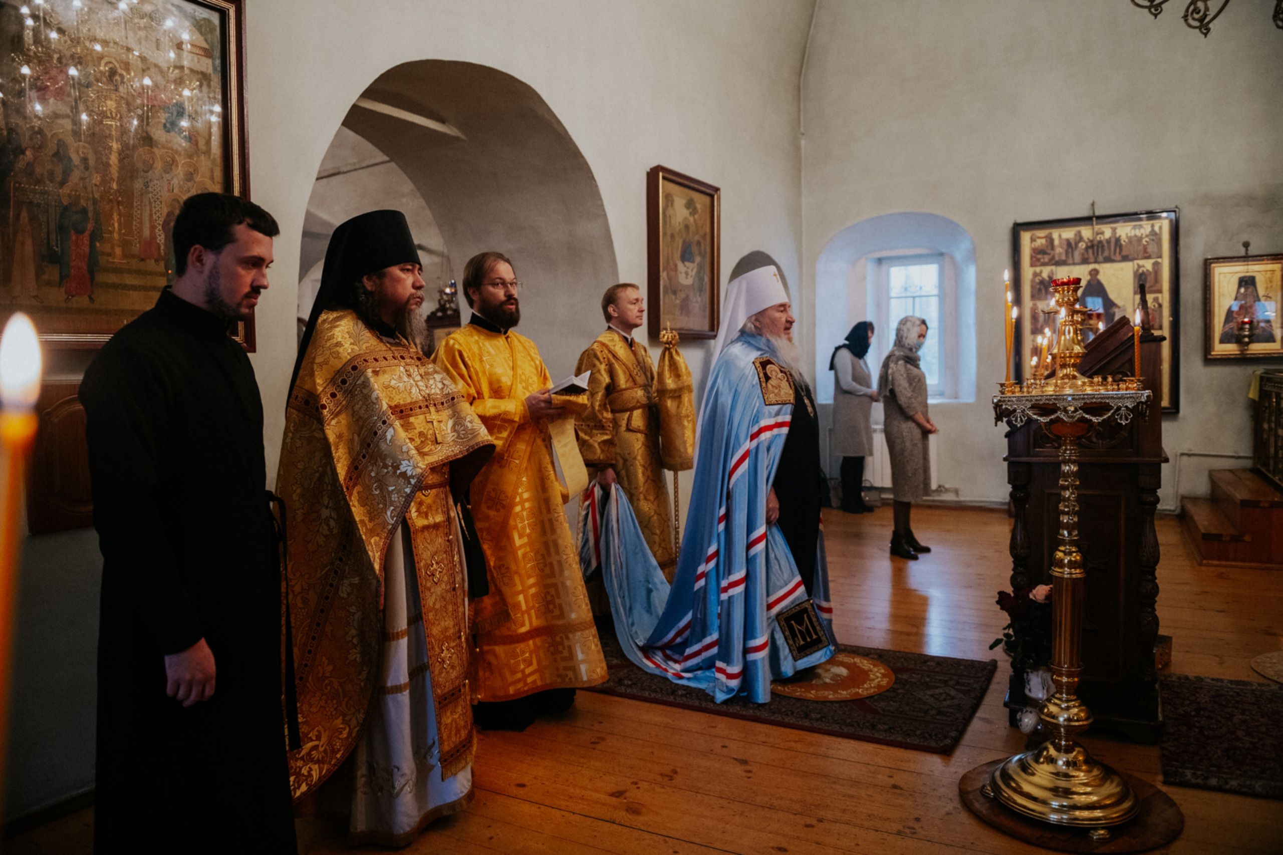 За вечерним и утренним богослужениями Его Высокопреосвященству сослужили настоятель Иоанно-Предтеченского монастыря иеромонах Гурий (Ананьев) и настоятель Введенского Кизического мужского монастыря игумен Пимен (Ивентьв). Песнопения исполнил смешанный монастырский хор под управлением Ольги Ефимовой.