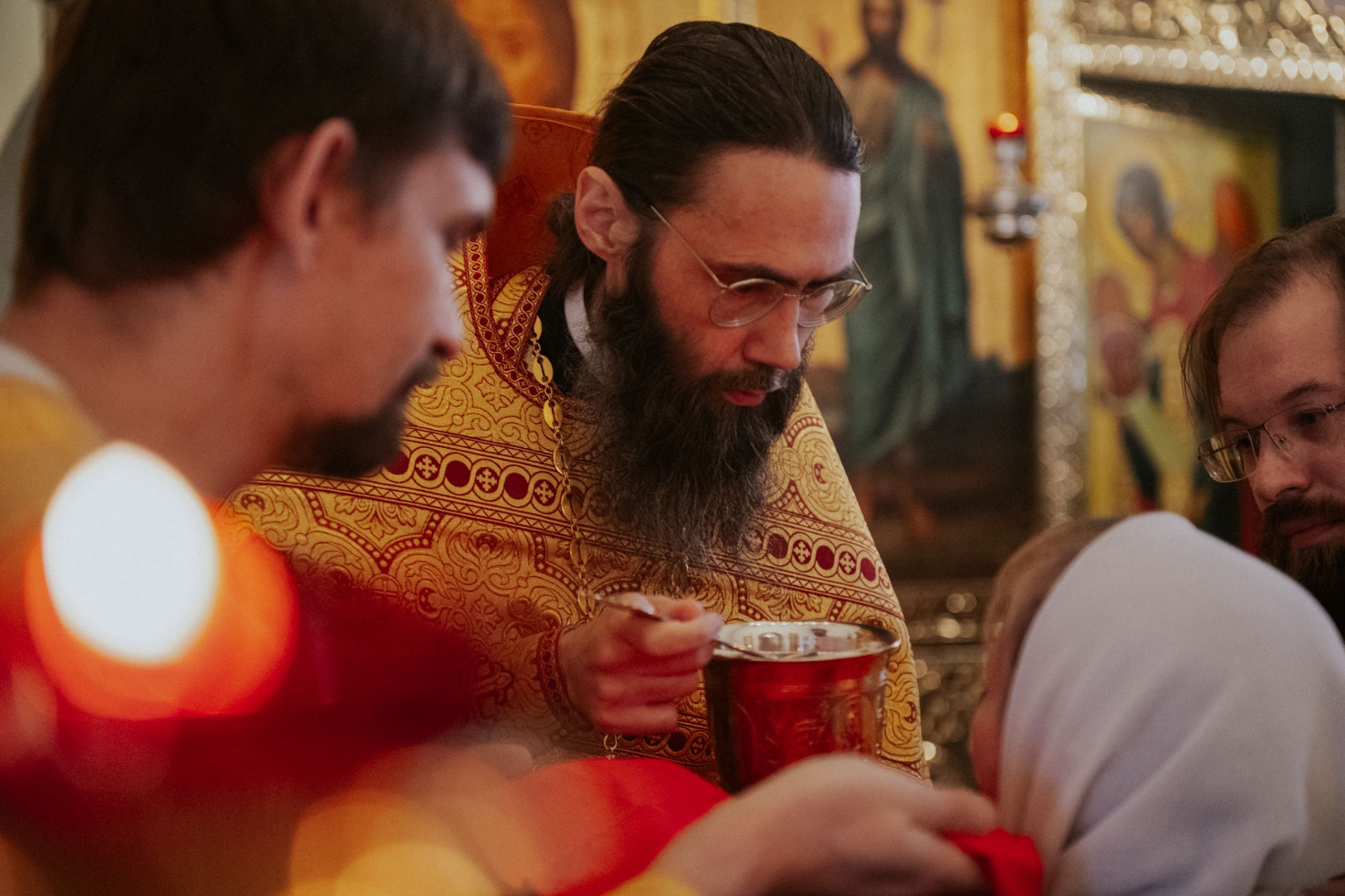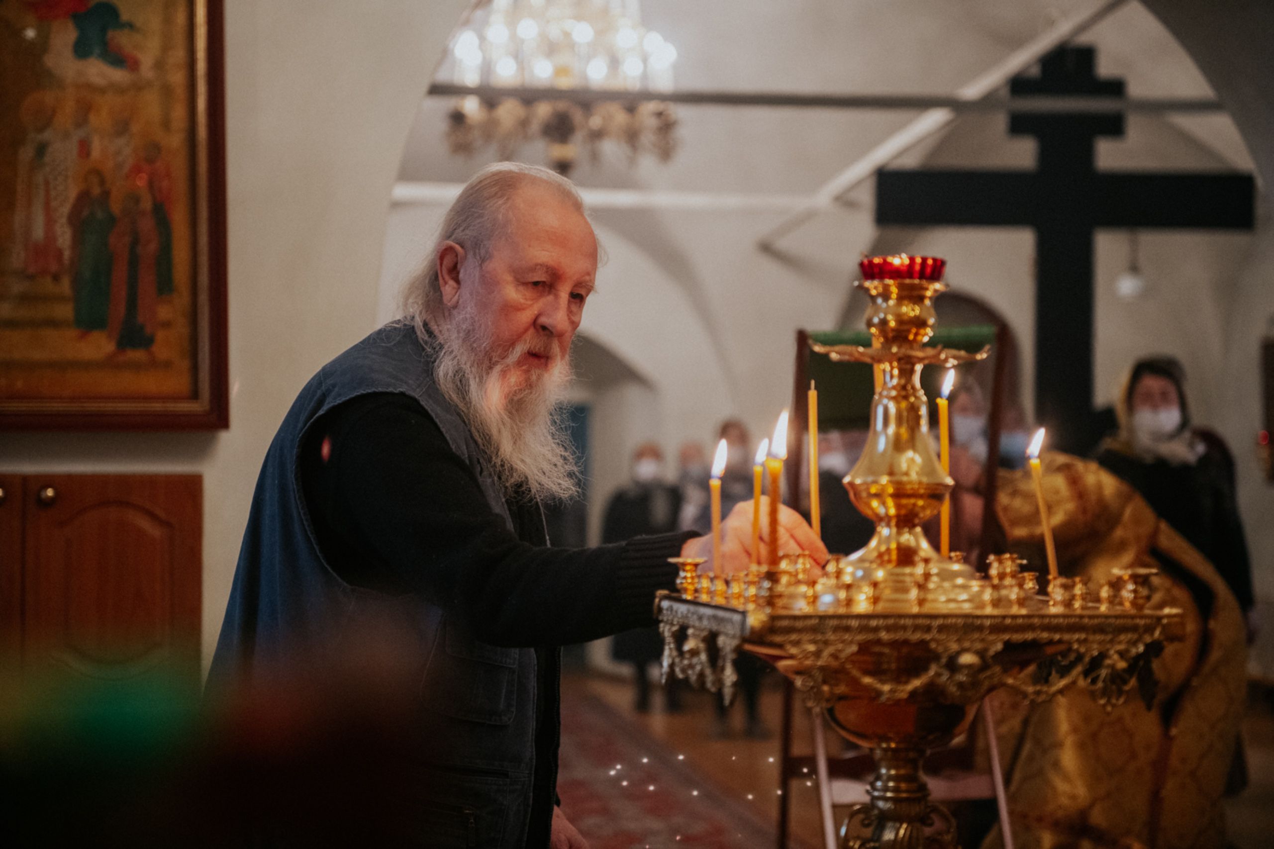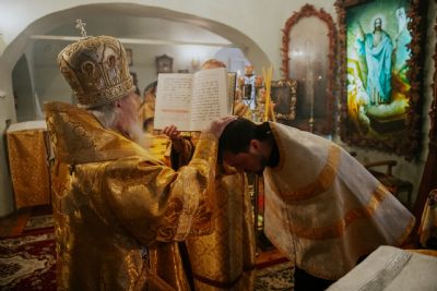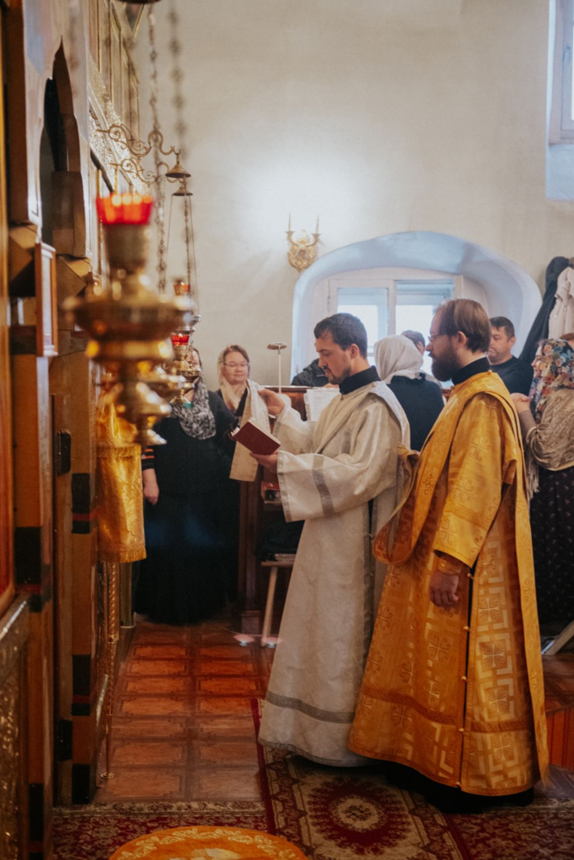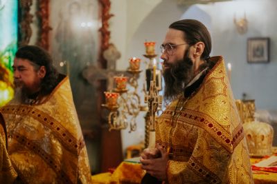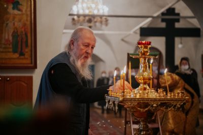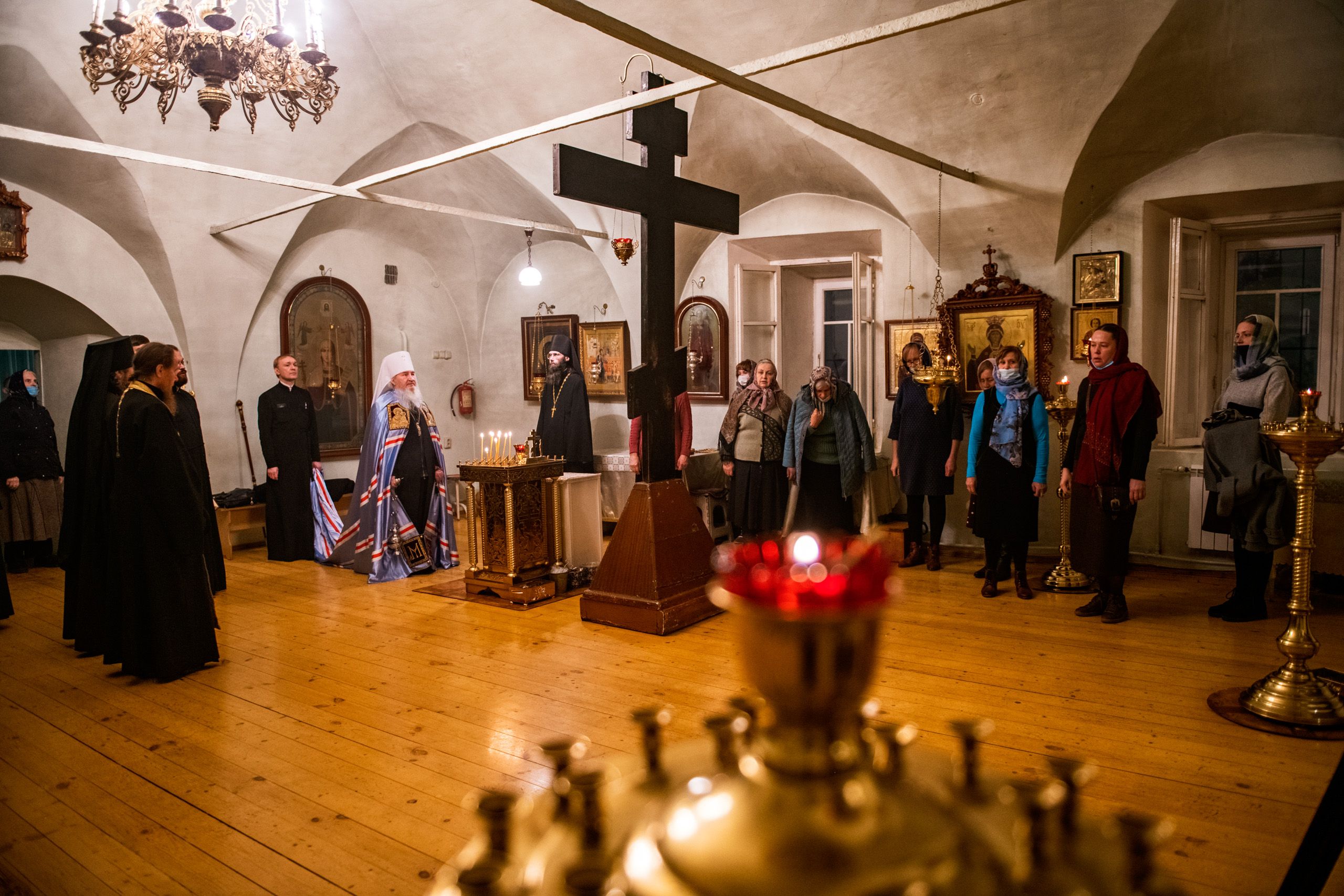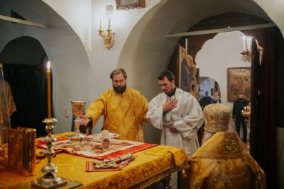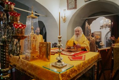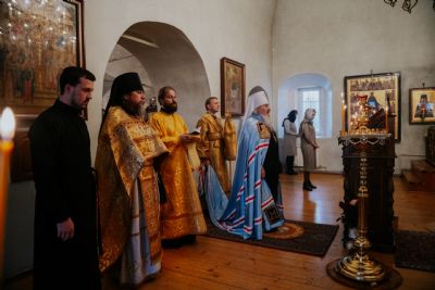 За вечерним и утренним богослужениями Его Высокопреосвященству сослужили настоятель Иоанно-Предтеченского монастыря иеромонах Гурий (Ананьев) и настоятель Введенского Кизического мужского монастыря игумен Пимен (Ивентьв). Песнопения исполнил смешанный монастырский хор под управлением Ольги Ефимовой.