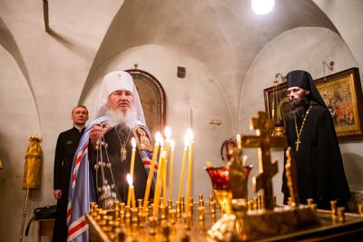 Накануне глава Татарстанской митрополии возглавил в обители всенощное бдение. После вечернего богослужения митрополит Феофан совершил заупокойную литию по почившей рабе Божией Галине, маме архиепископа Пятигорского и Черкесского Феофилакта.