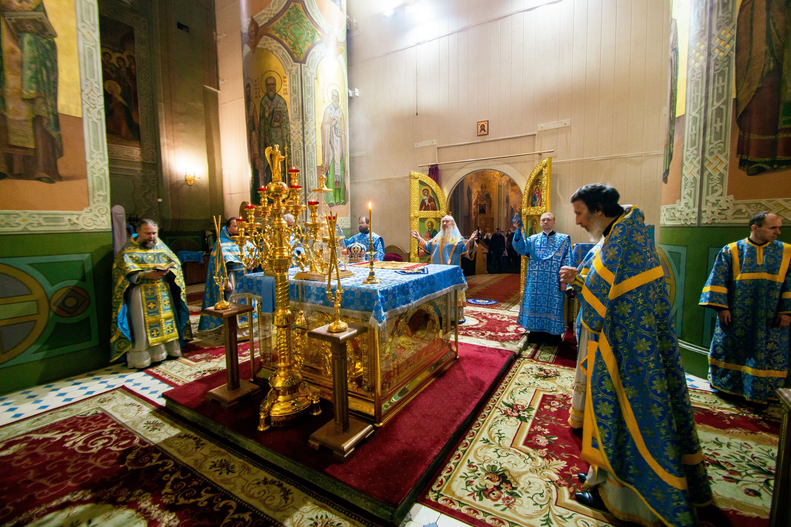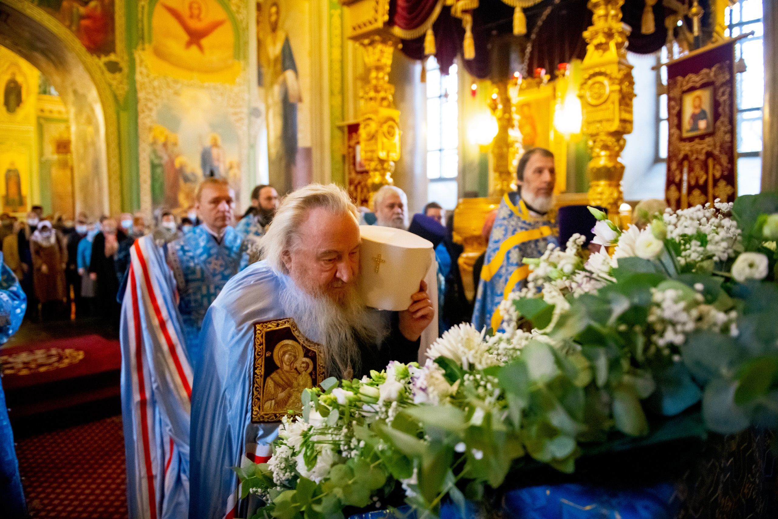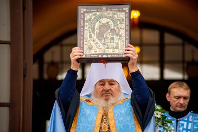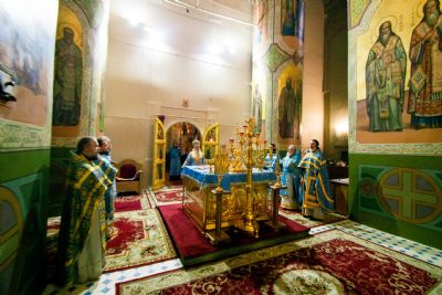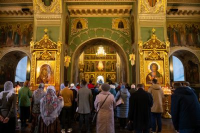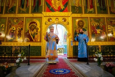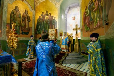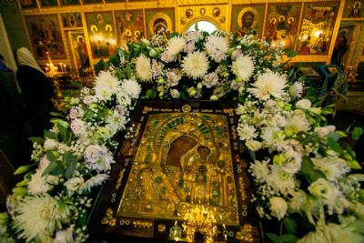 Далее архипастыри совершили праздничный молебен перед чествуемым образом Богородицы. Владыка Феофан осенил верующих святыней. Затем верующие смогли приложиться к почитаемой иконе Божией Матери.