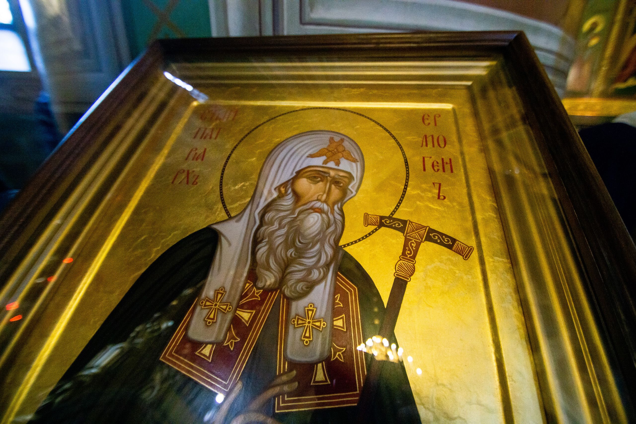 Но дивен Бог в Промысле Своём. Явился чудотворный образ, который будет называться «Казанским», как раз во время этой Смуты. С одной стороны — скорбь, великий пожар во граде Казани, всё сметено огнём. Но чудесным образом через отроковицу Матрону Сама Царица Небесная указала, что есть и благодать в это скорбное время. Была обретена икона, а здесь рядом — храм, в котором священник — тогда ещё малоизвестный Ермолай, принявший в свои руки чудотворный образ. А затем отец Ермолай станет митрополитом Казанским и Патриархом Всероссийским.